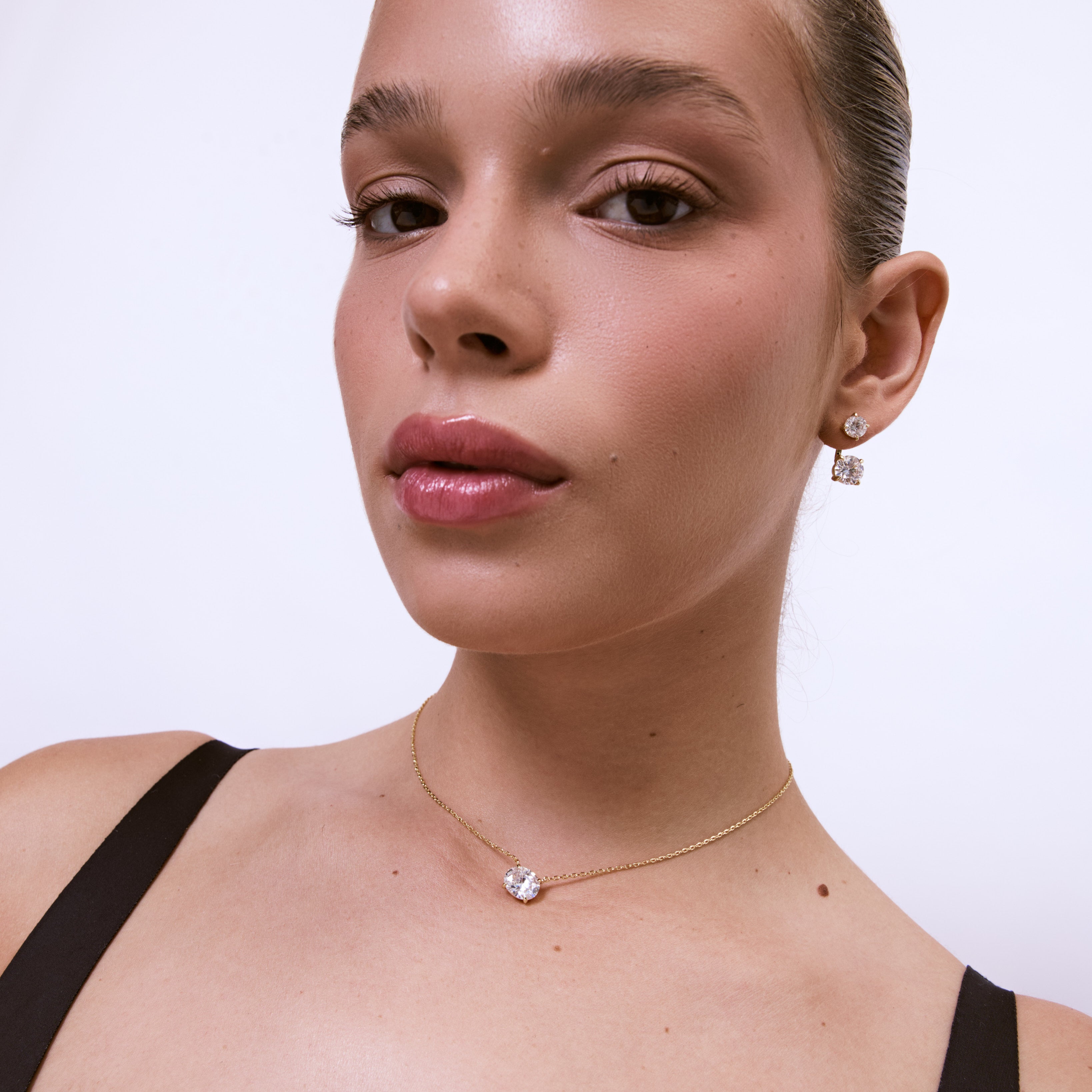 שרשרת משובצת בזירקון אובלי ומרשים, בעיצוב קלאסי, מדויק ויוקרתי. השרשרת עשויה בעבודת יד ומצופה בזהב 14K.