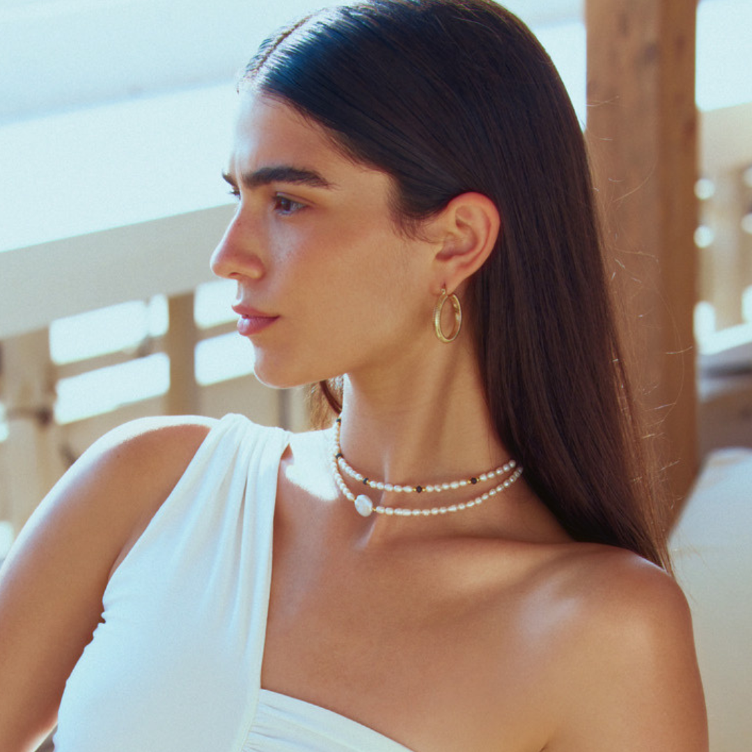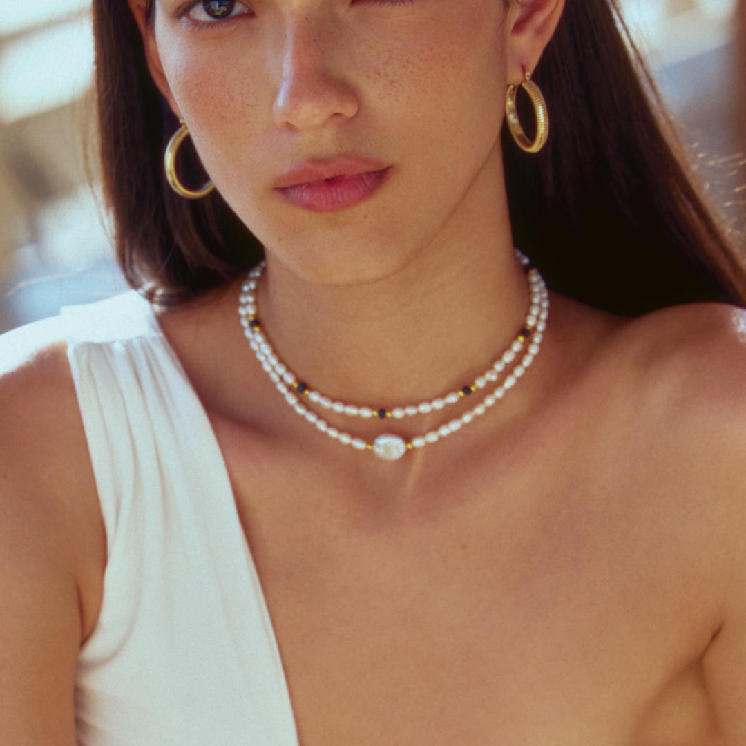 שרשרת קולר עשויה בעבודת יד, המורכבת מפניני מים מתוקים עדינות ומלאות סטייל מדויק. השרשרת היא חלק מקולקציית קיץ 2022 המציגה תכשיטים יומיומיים-אורבניים, עם קריצה טרנדית שמתרפקת על העבר העשיר של יצירות אייקוניות, קלאסיות ועל-זמניות. התכשיטים קרויים בשמות רחובות מרכזיים בערים הגדולות, כמו לונדון, ניו-יורק ופאריס