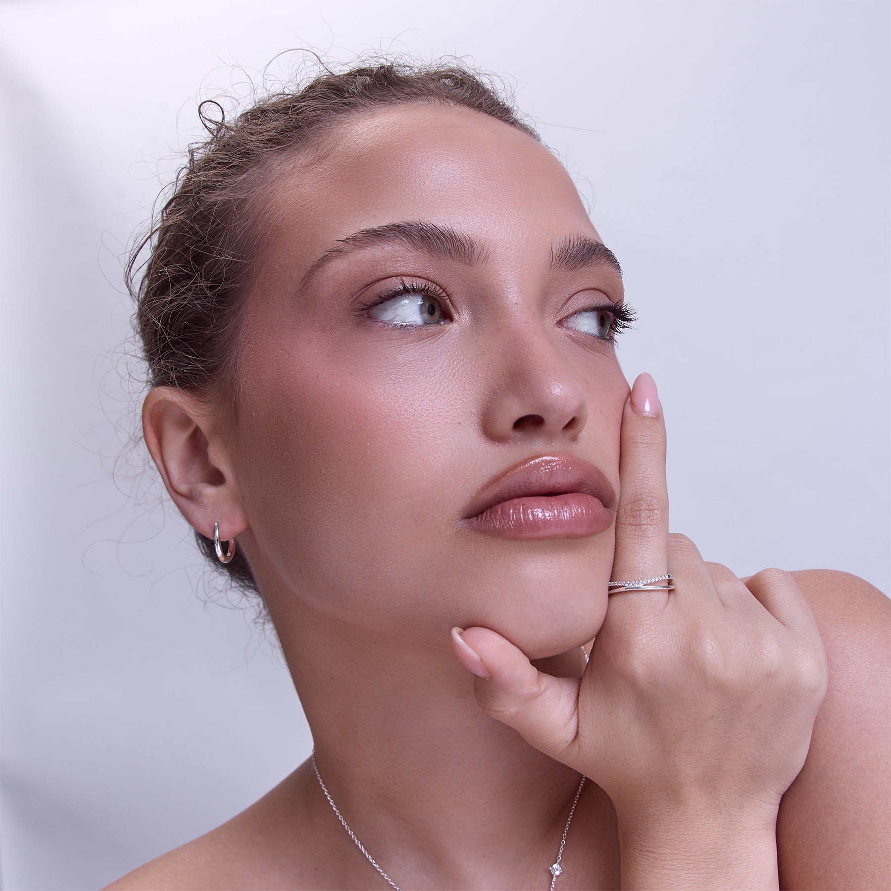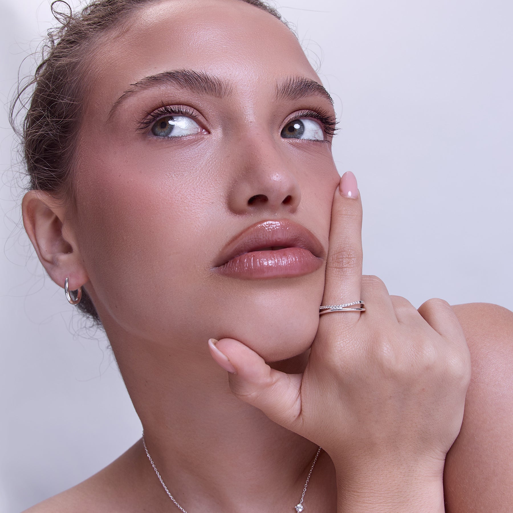 טבעת כפולה עם חלק משובץ בזירקונים נוצצים, בעיצוב גלי וזורם ללוק יוקרתי ומלא סטייל. הטבעת עשויה בעבודת יד מכסף סטרלינג 925 ומצופה בכסף טהור.