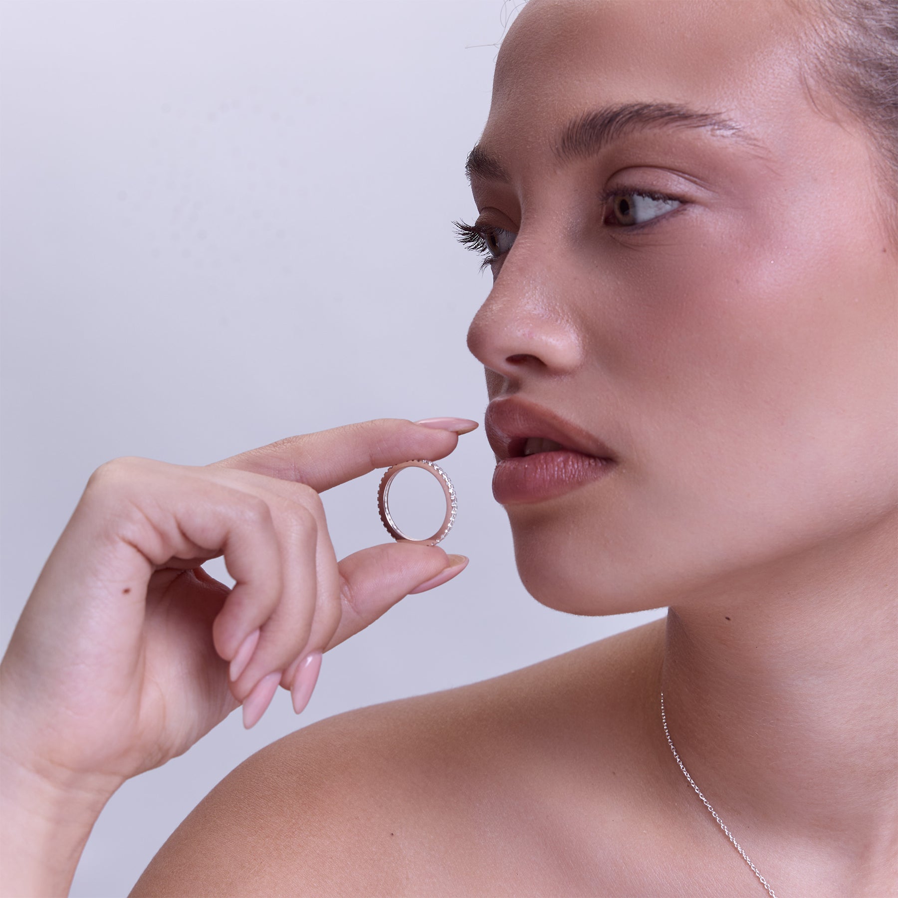 טבעת איטרניטי עדינה משובצת זירקונים נוצצים, בעיצוב קלאסי על-זמני שניתן לענוד כבודדת או כתוספת מושלמת לטבעות נוספות. הטבעת עשויה בעבודת יד מכסף סטרלינג 925 ומצופה בכסף טהור.