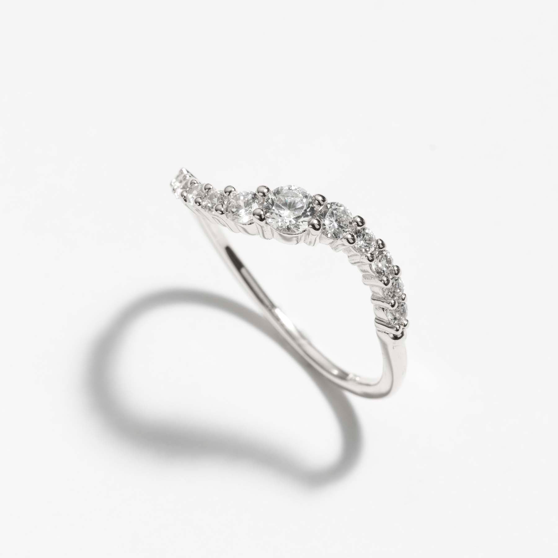טבעת מפותלת משובצת בזירקונים מרהיבים, בעיצוב על-זמני, יוקרתי ומדויק ללוק אלגנטי ונוצץ. הטבעת עשויה בעבודת יד ומצופה בכסף טהור.