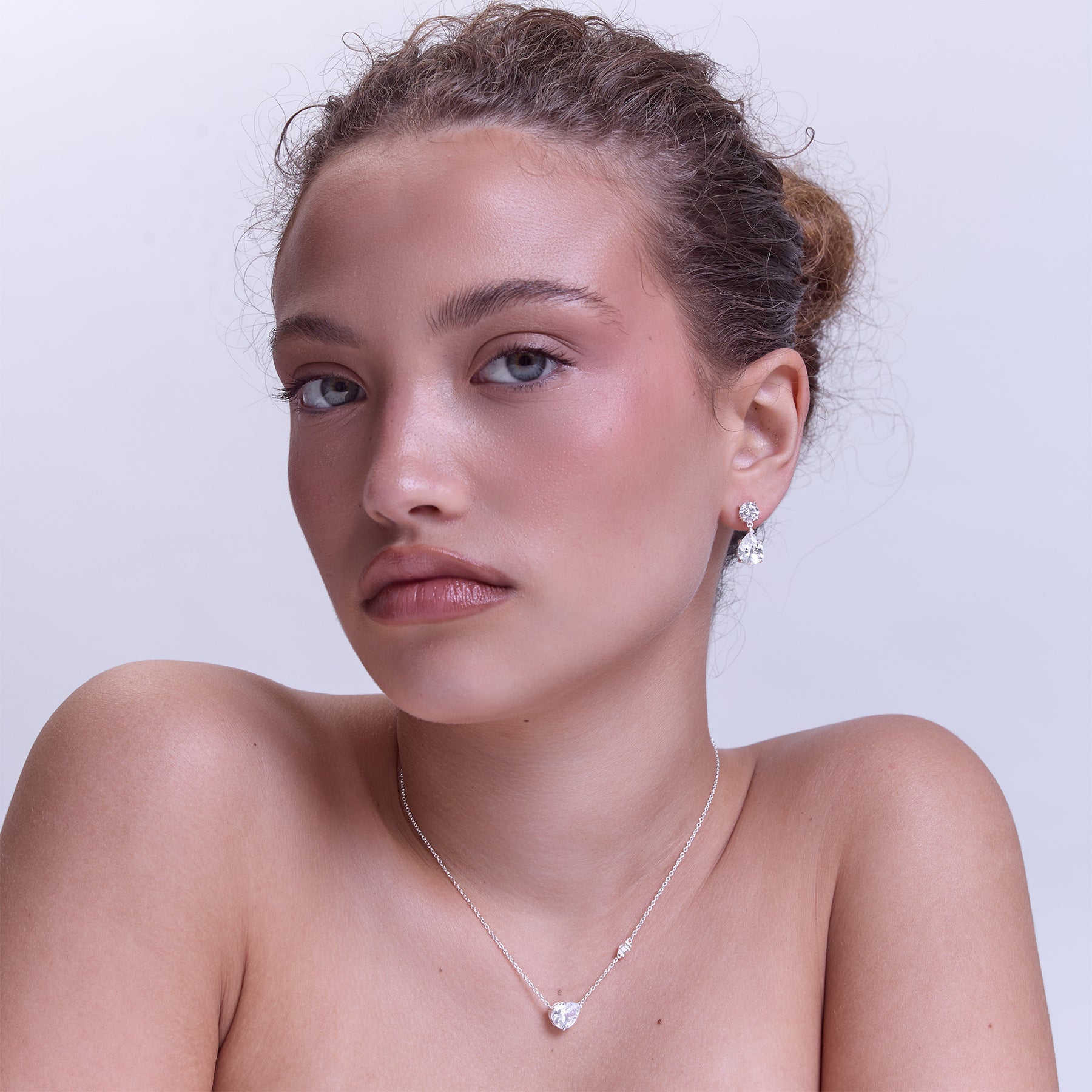 עגילים משובצים בזירקונים, בעיצוב יוקרתי, קלאסי ומחמיא, ללוק טיימלס אלגנטי. העגילים עשויים בעבודת יד מכסף סטרלינג 925 ומצופים בכסף טהור.