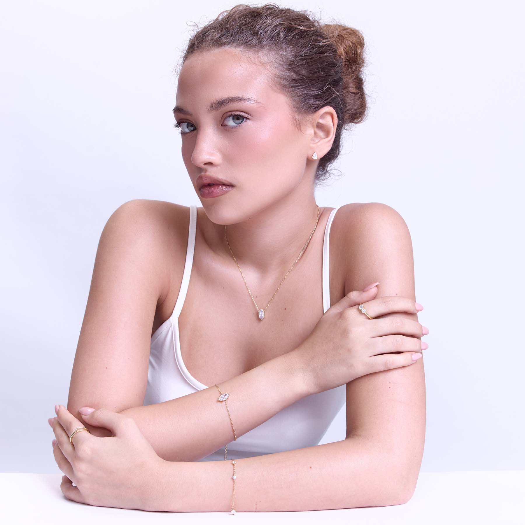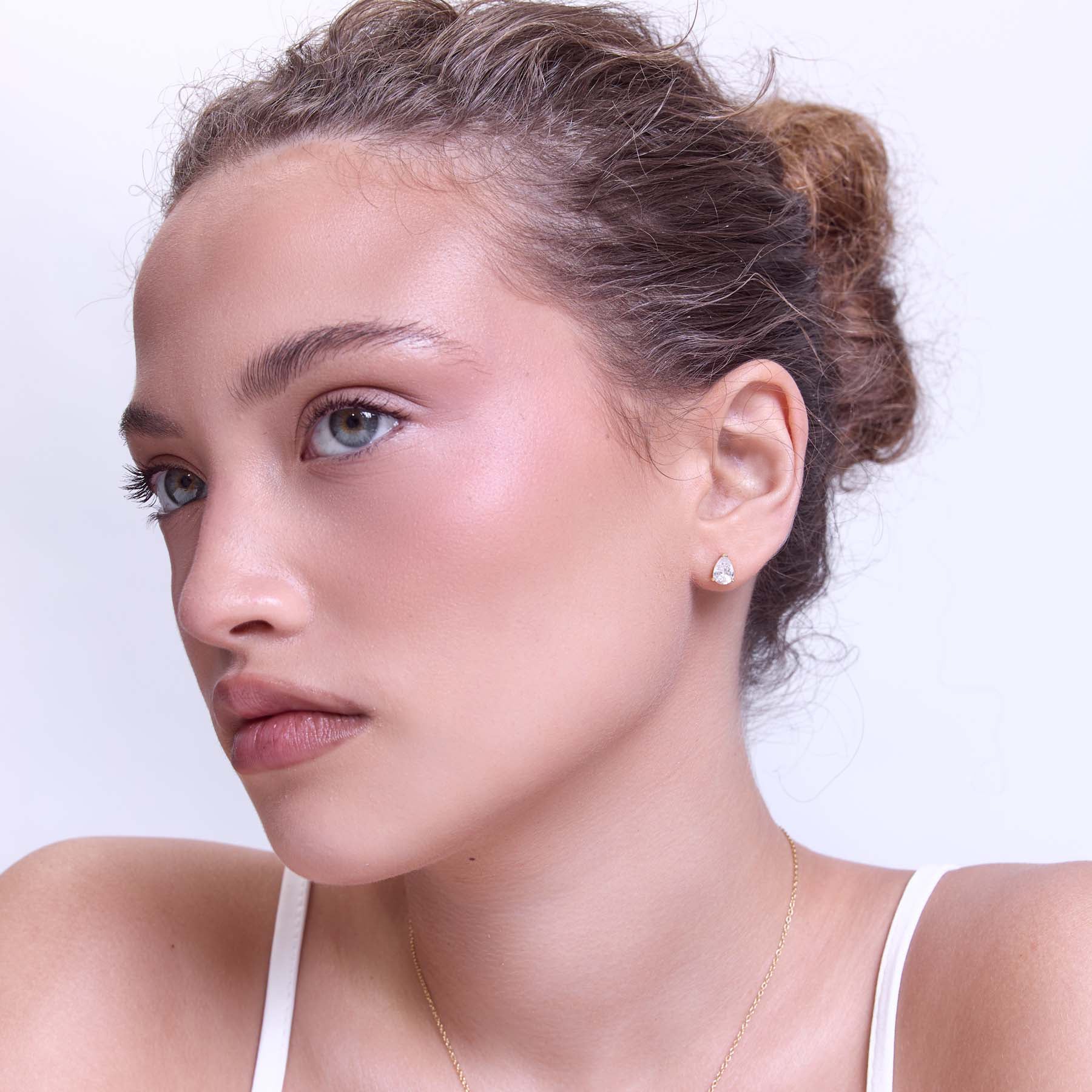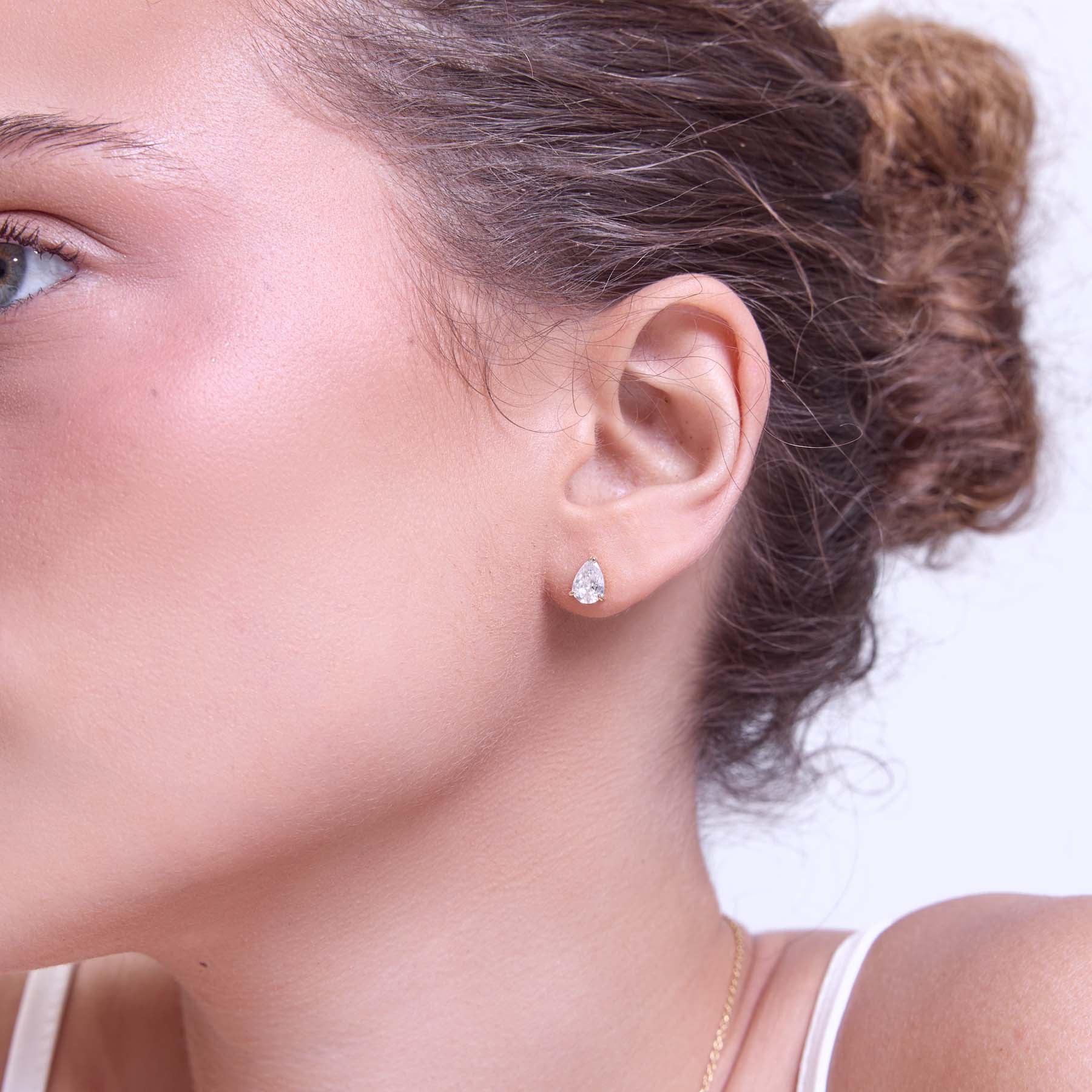 עגילים צמודים משובצים בזירקון בצורת טיפה, בעיצוב נקי ואלגנטי. העגילים עשויים בעבודת יד מכסף סטרלינג 925 ומצופים בזהב 14K.