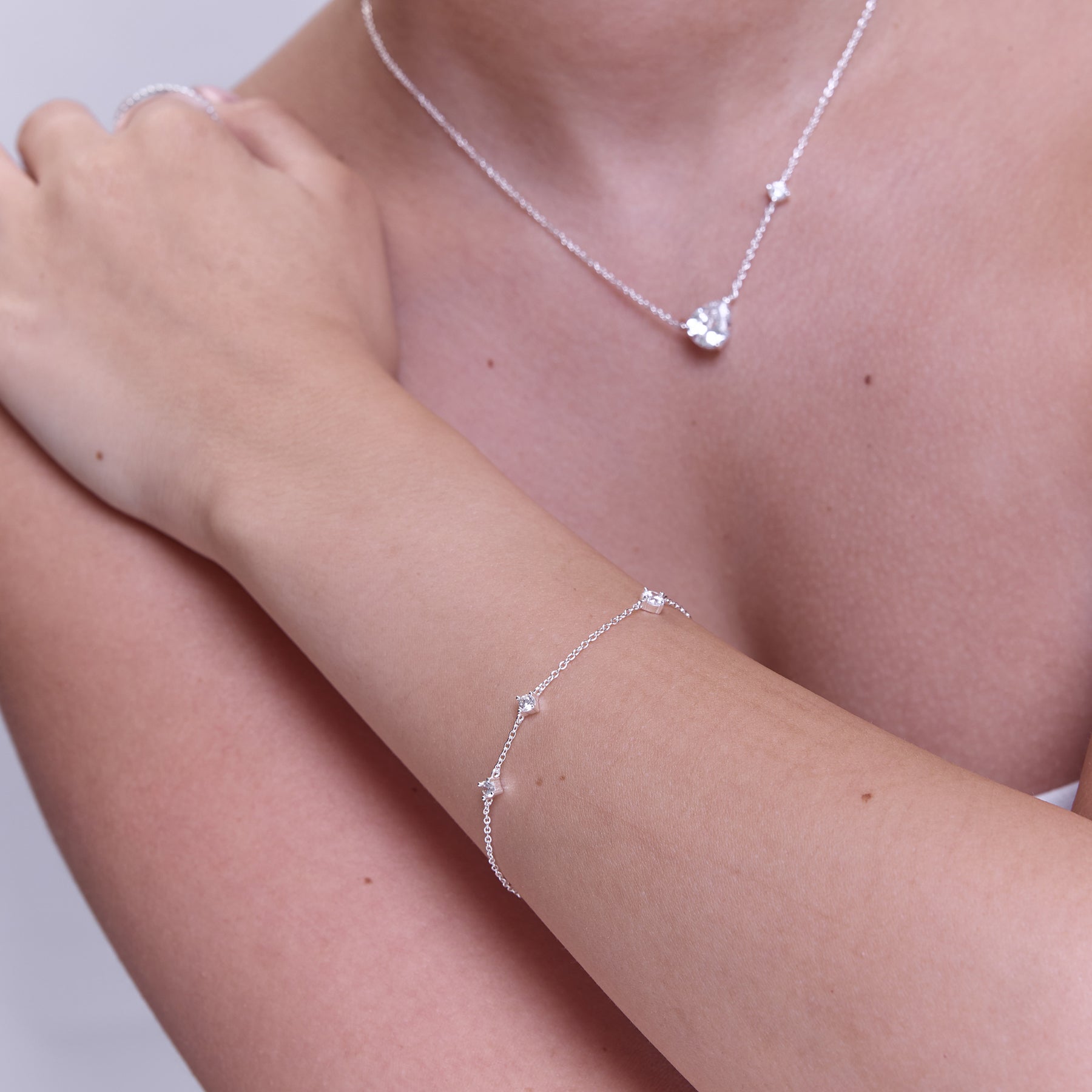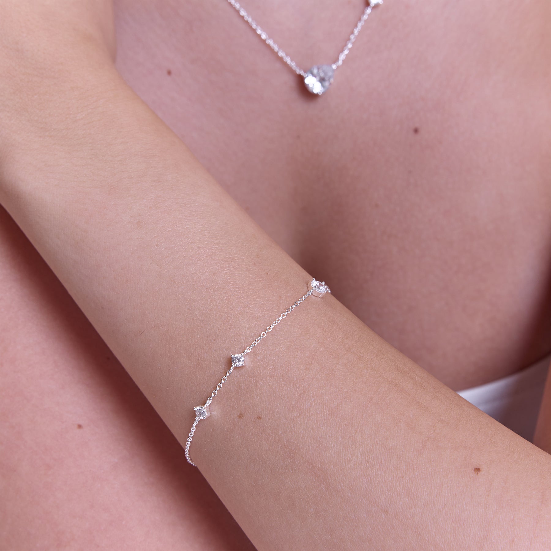 צמיד עדין משובץ זירקונים במרחקים שונים, בעיצוב נקי, מדויק ואלגנטי. הצמיד עשוי בעבודת יד מכסף סטרלינג 925 ומצופה בכסף טהור.