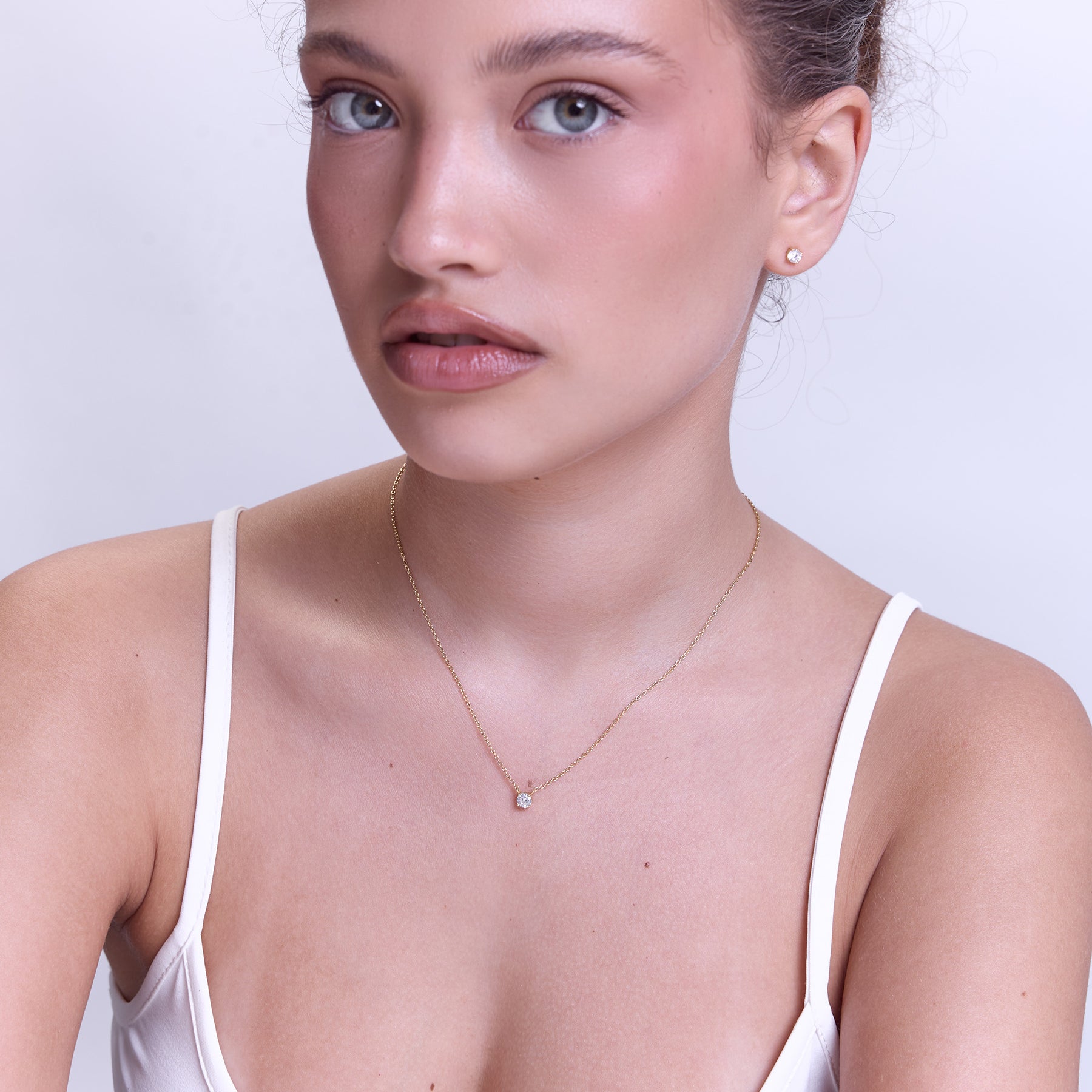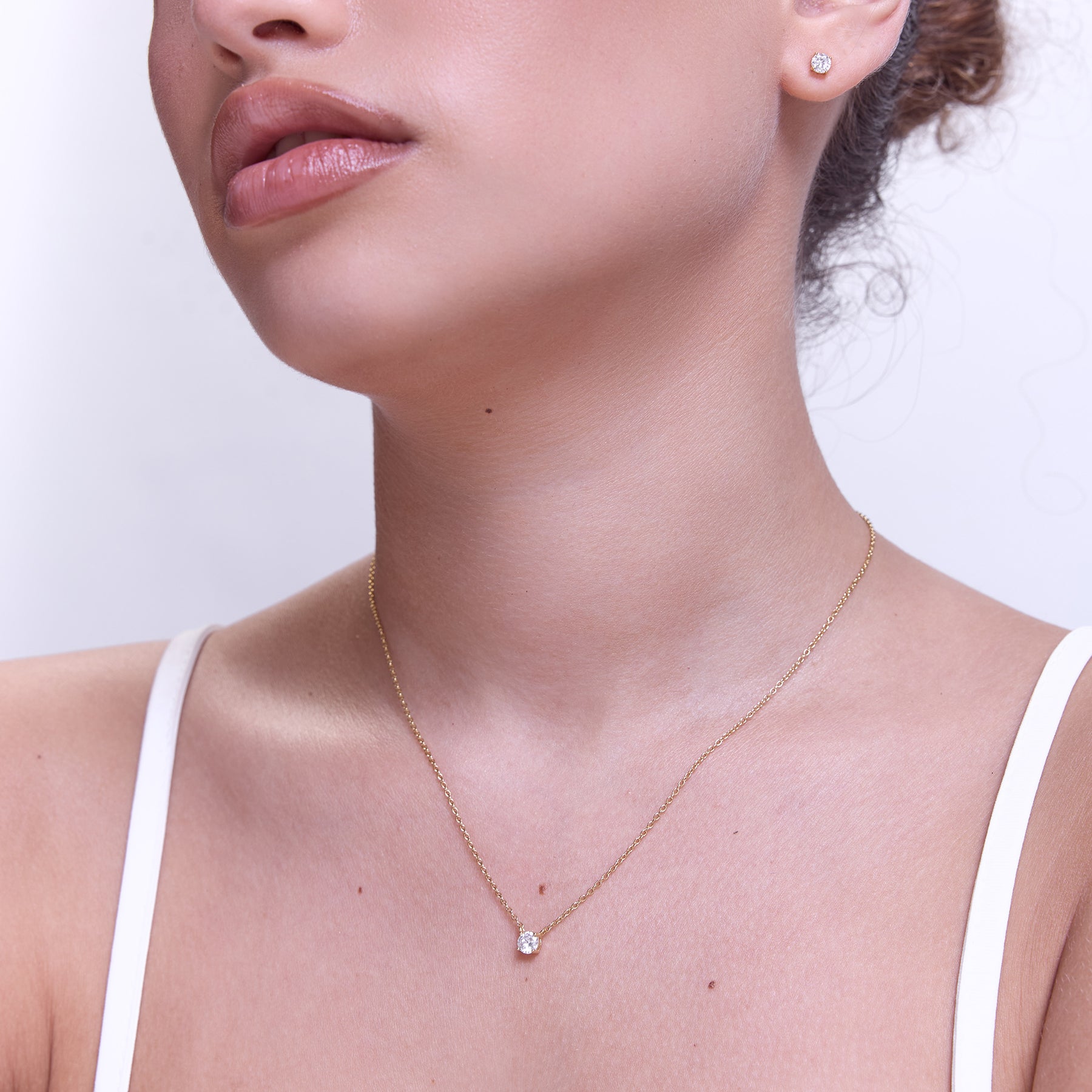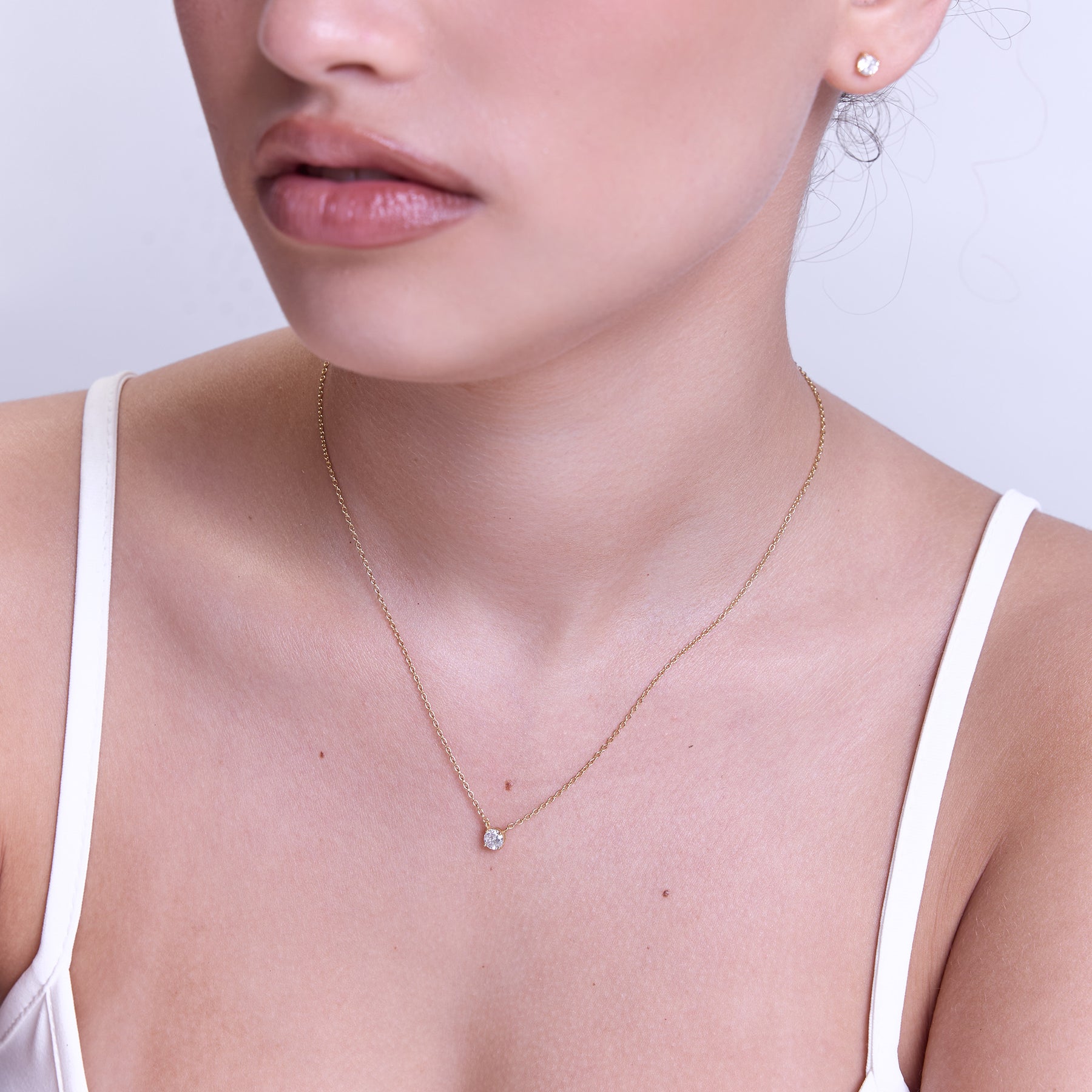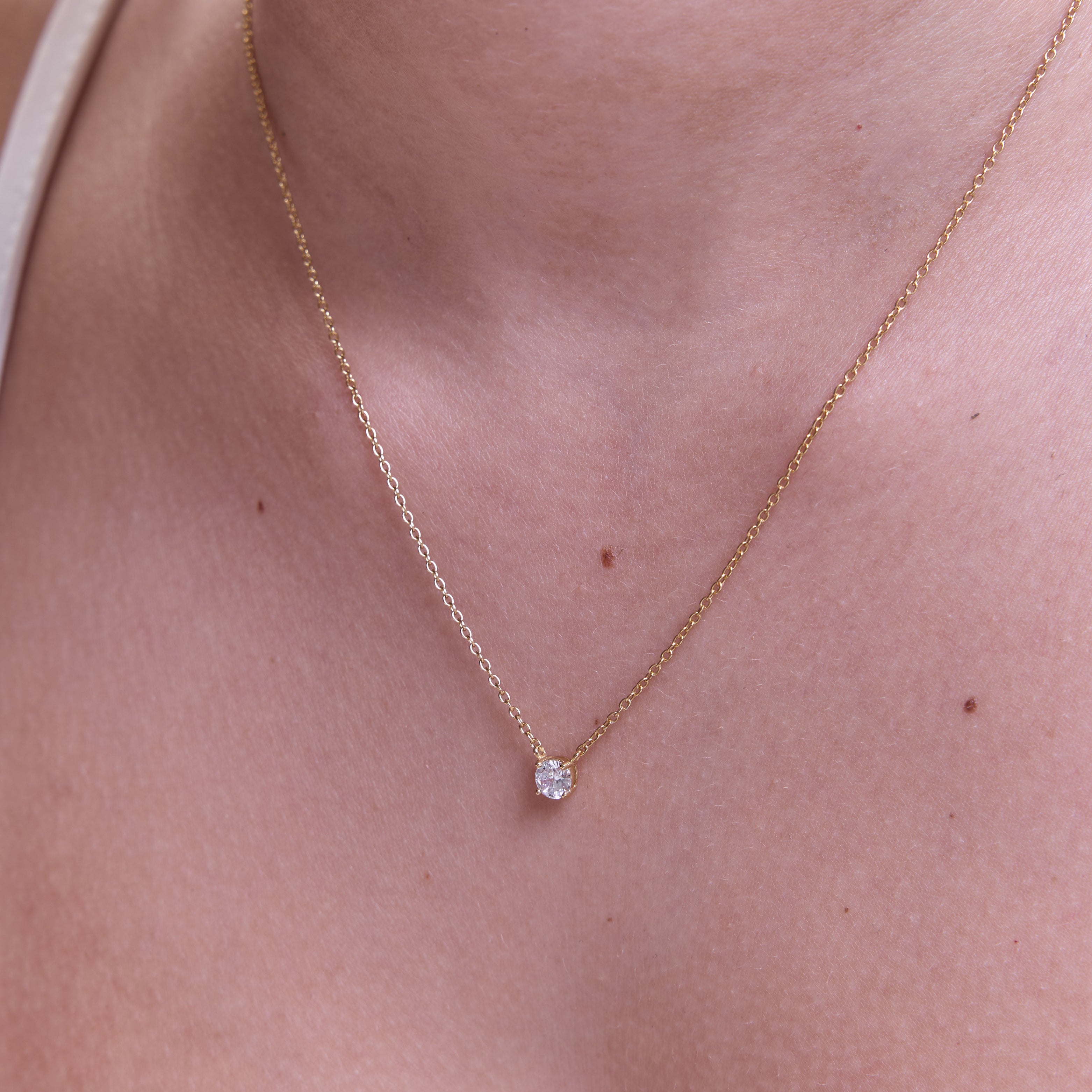 שרשרת קלאסית עדינה משובצת בזירקון בגודל 4.5ממ, בעיצוב נקי, מדויק ועל-זמני. השרשרת עשויה בעבודת יד מכסף סטרלינג 925 ומצופה בזהב 14K.