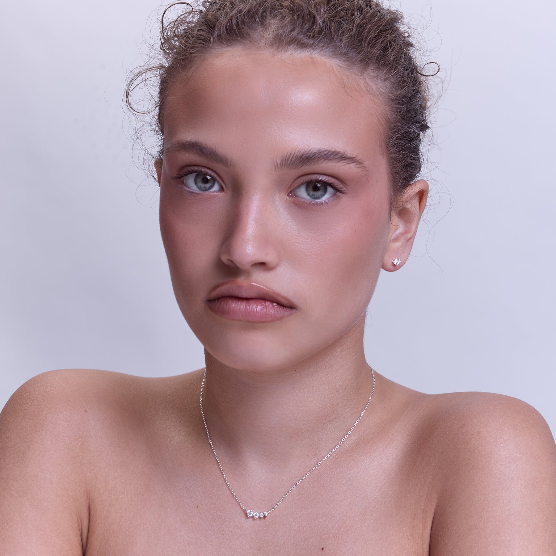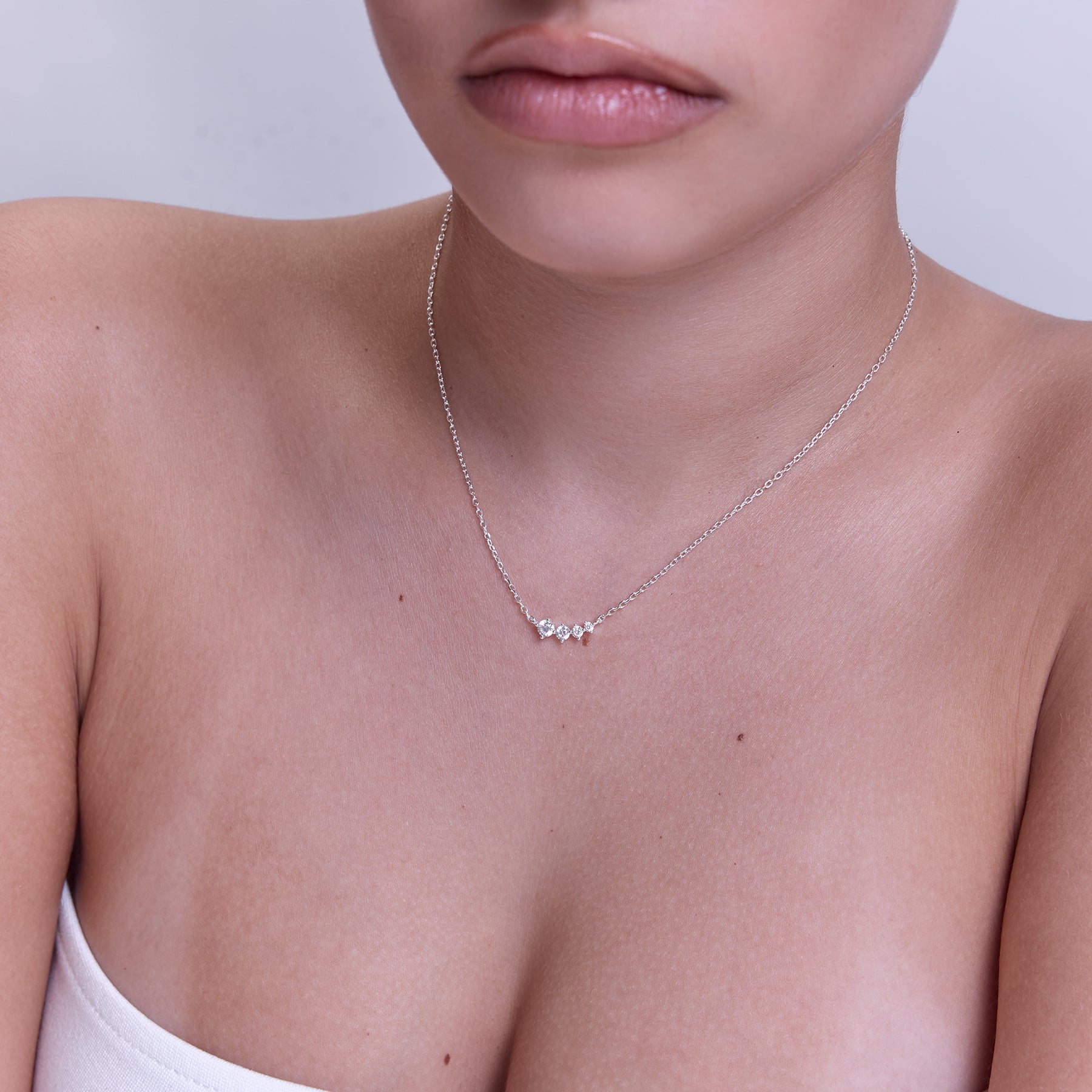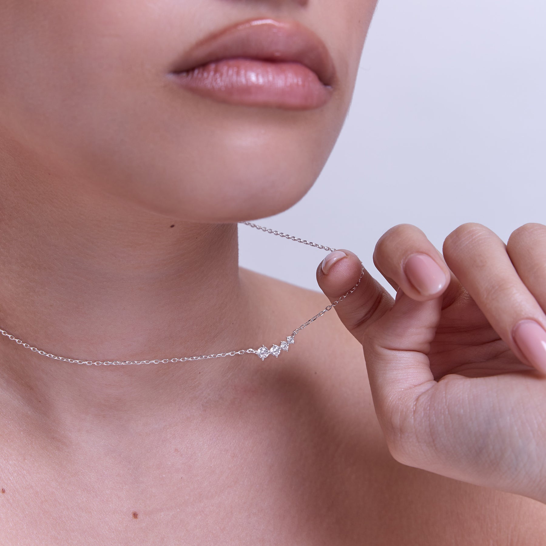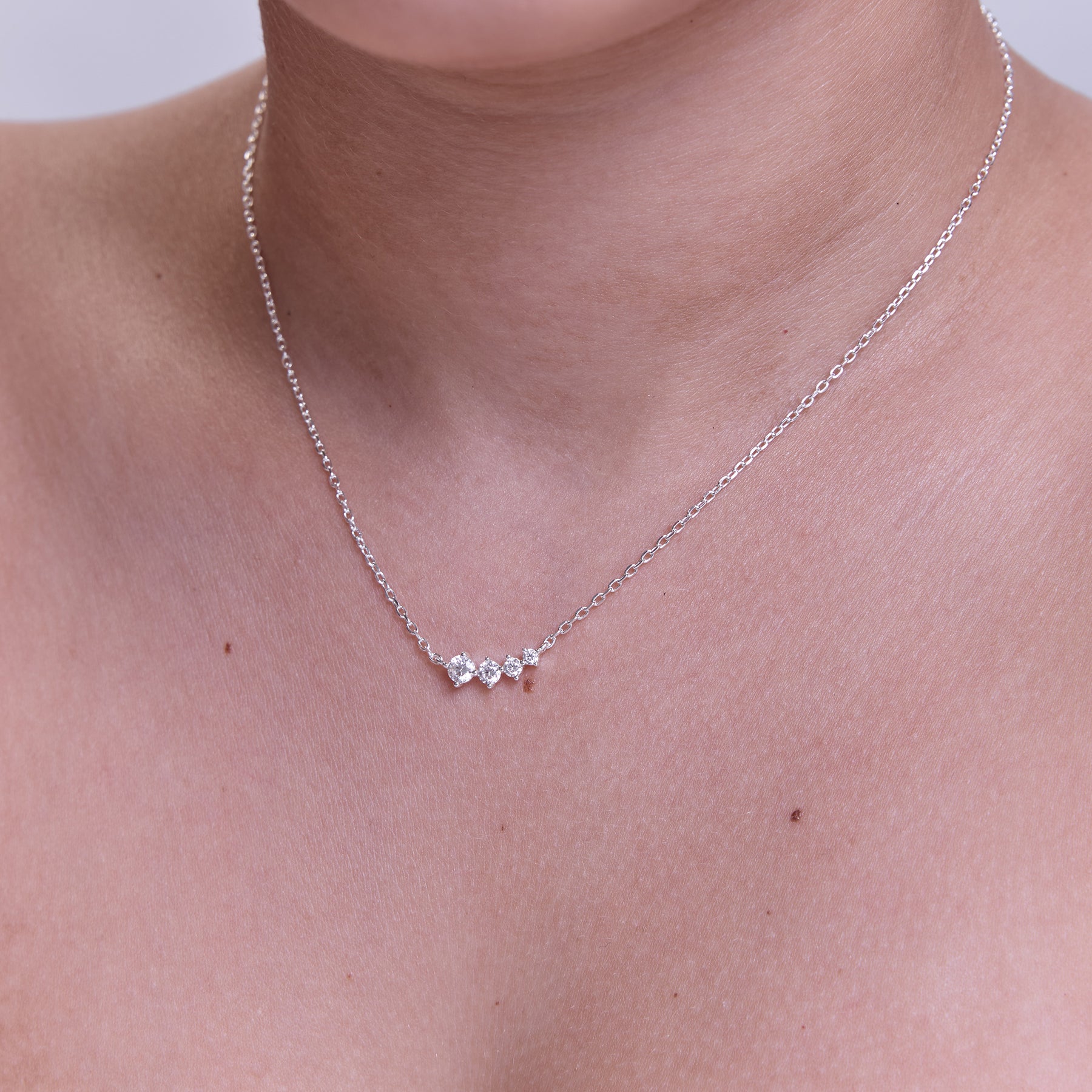 שרשרת עדינה משובצת ארבעה זירקונים נוצצים בגודל עולה, בעיצוב רענן ללוק יוקרתי ואלגנטי. השרשרת עשויה בעבודת יד מכסף סטרלינג 925 ומצופה בכסף טהור.