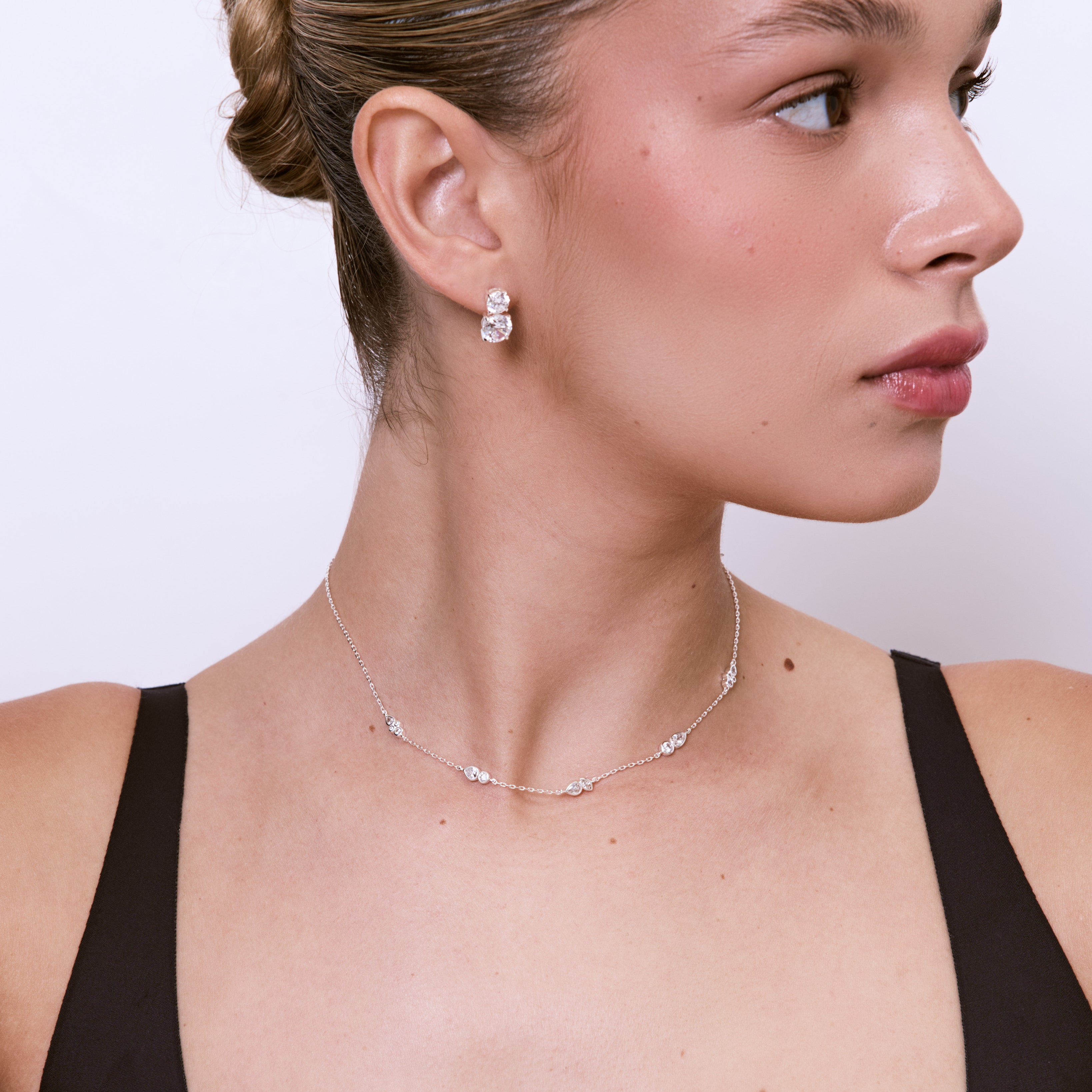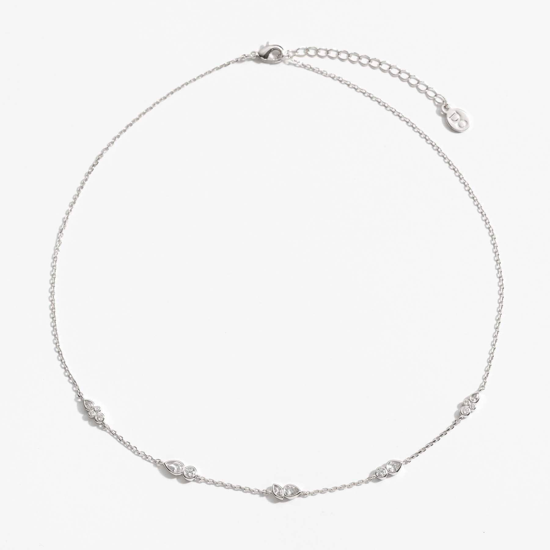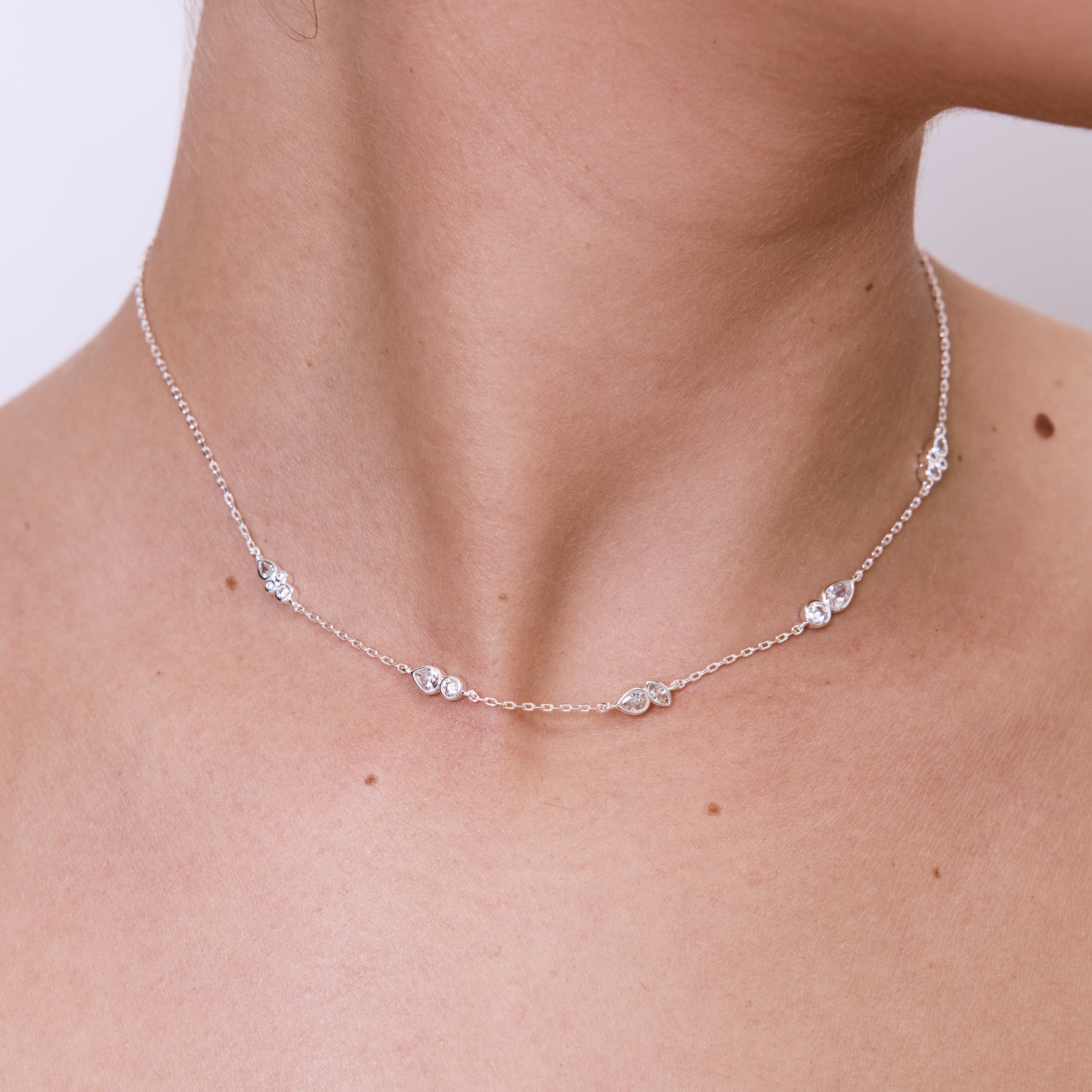 שרשרת עדינה משובצת בזירקונים במגוון צורות ושילובים, בעיצוב רענן, יוקרתי ומלא קסם. השרשרת עשויה בעבודת יד ומצופה בכסף טהור.