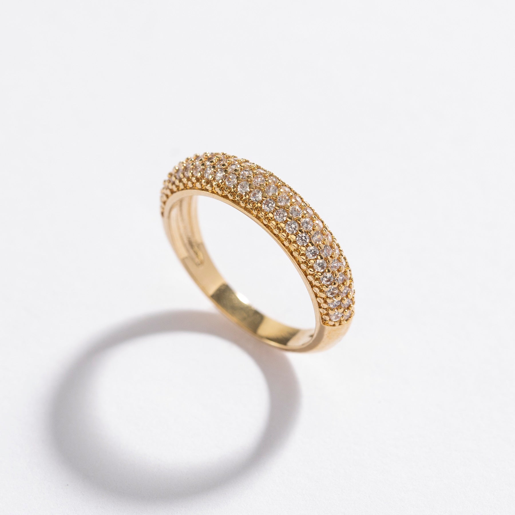 טבעת אופנתית ומלאת שיק, משובצת קריסטלים ומצופה זהב 24K.