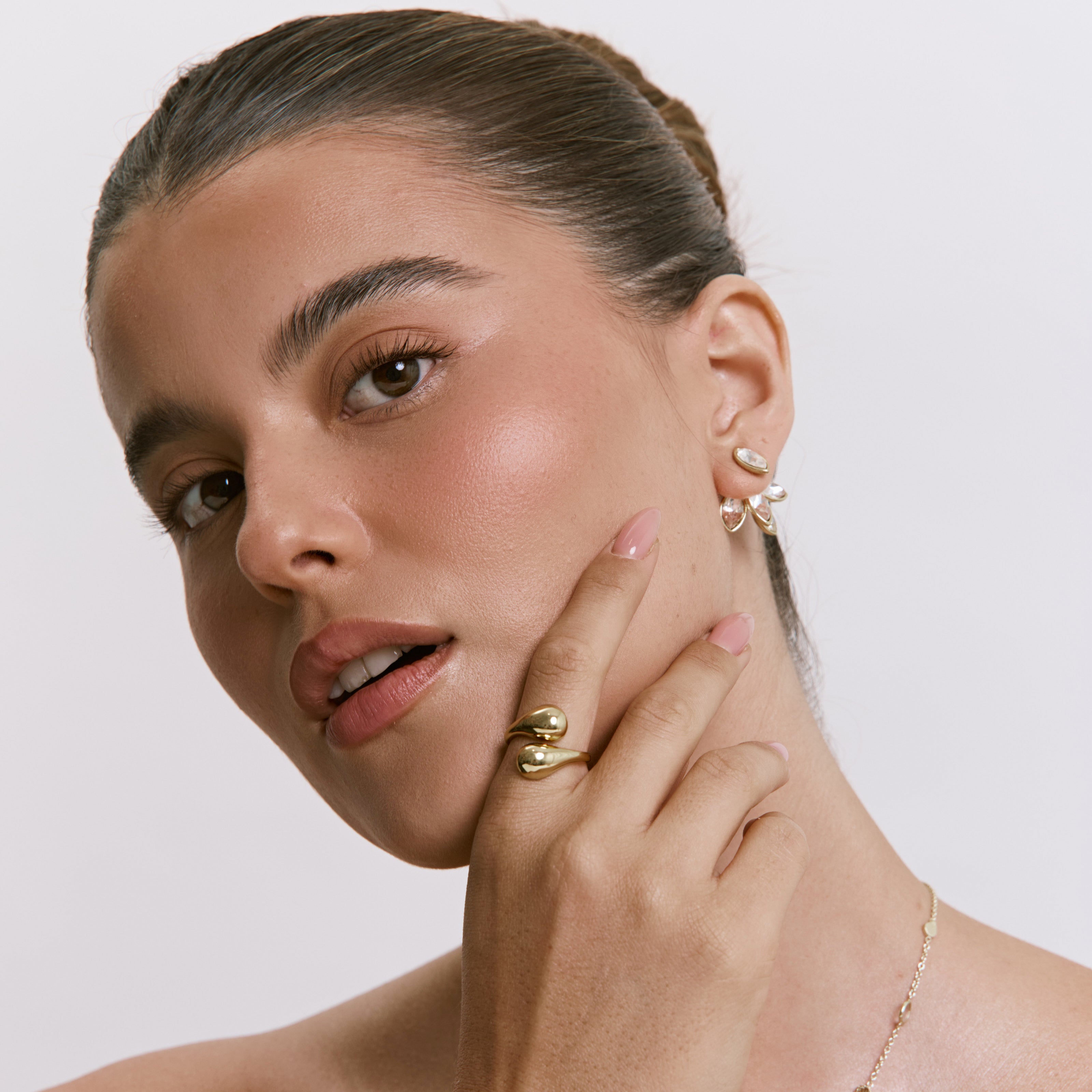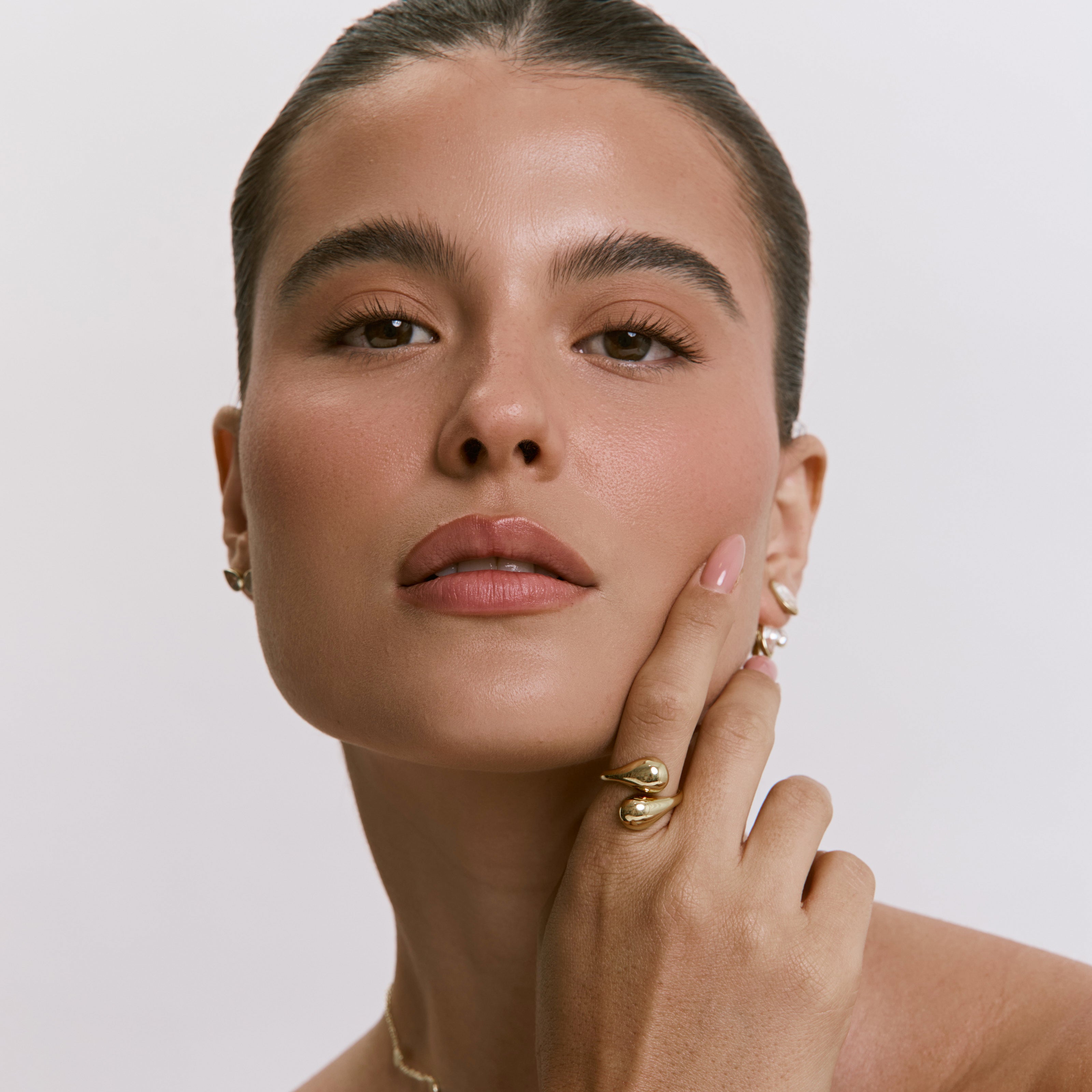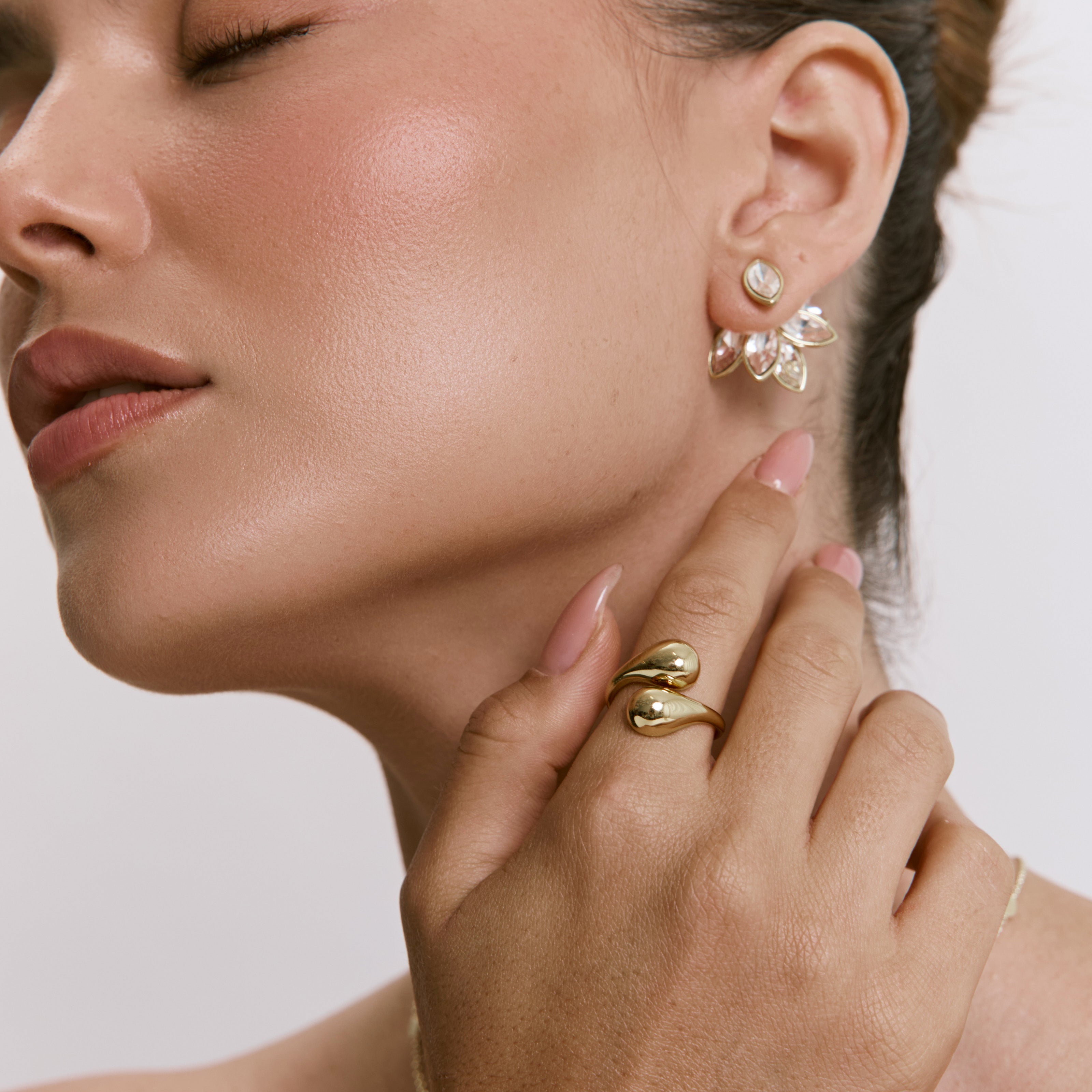 טבעת פתוחה מתכווננת בעיצוב נקי וזורם, ללוק טרנדי ומדויק שמחמיא להכל. הטבעת עשויה בעבודת יד ומצופה בזהב 14K.