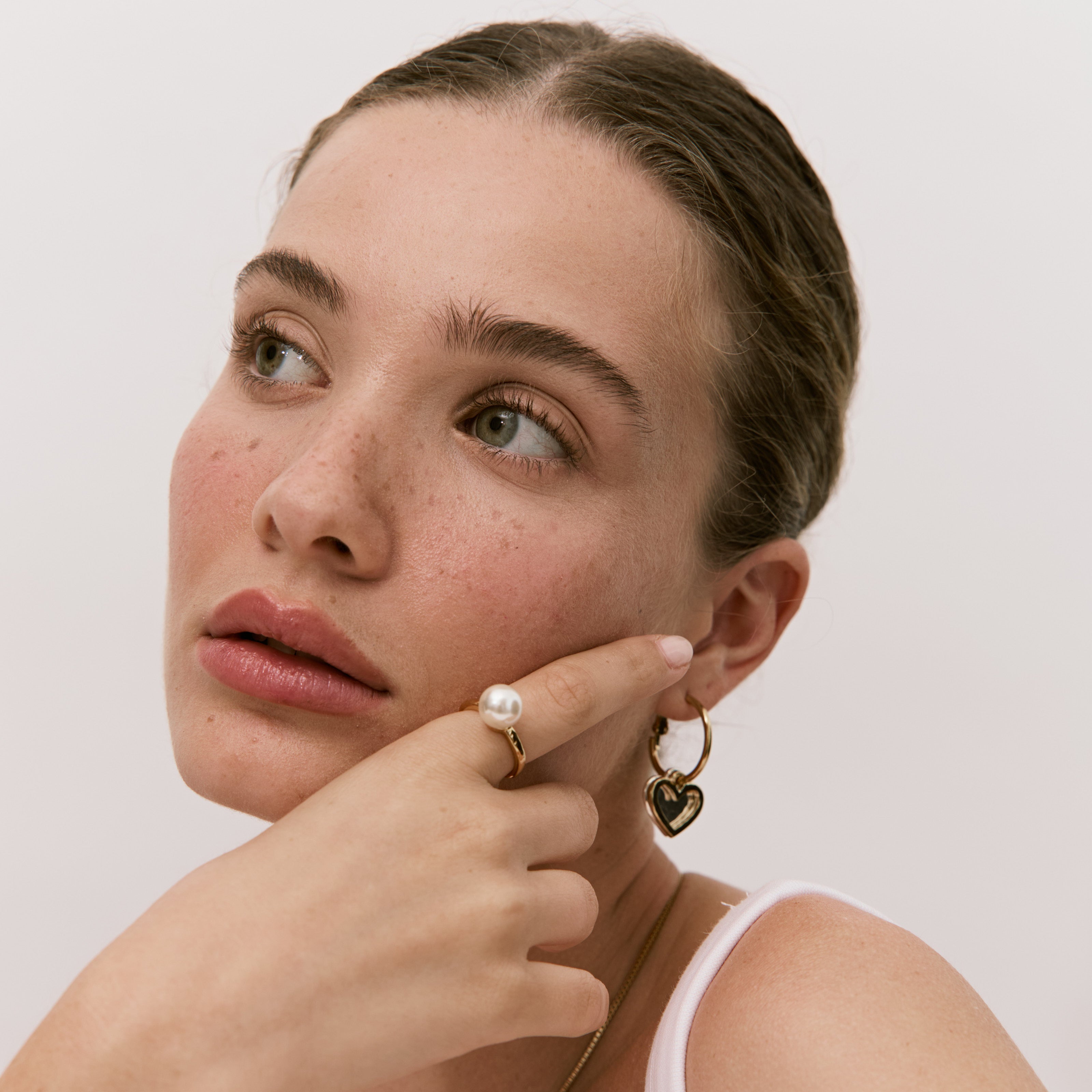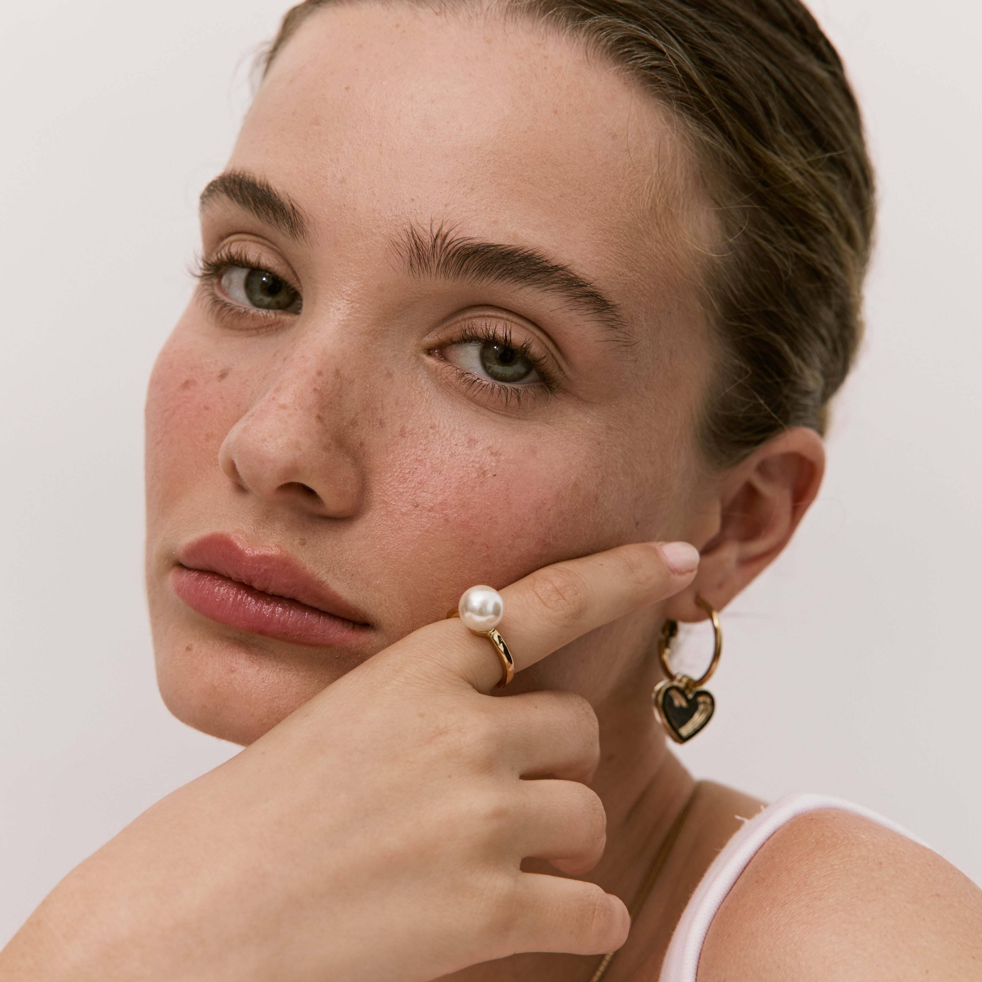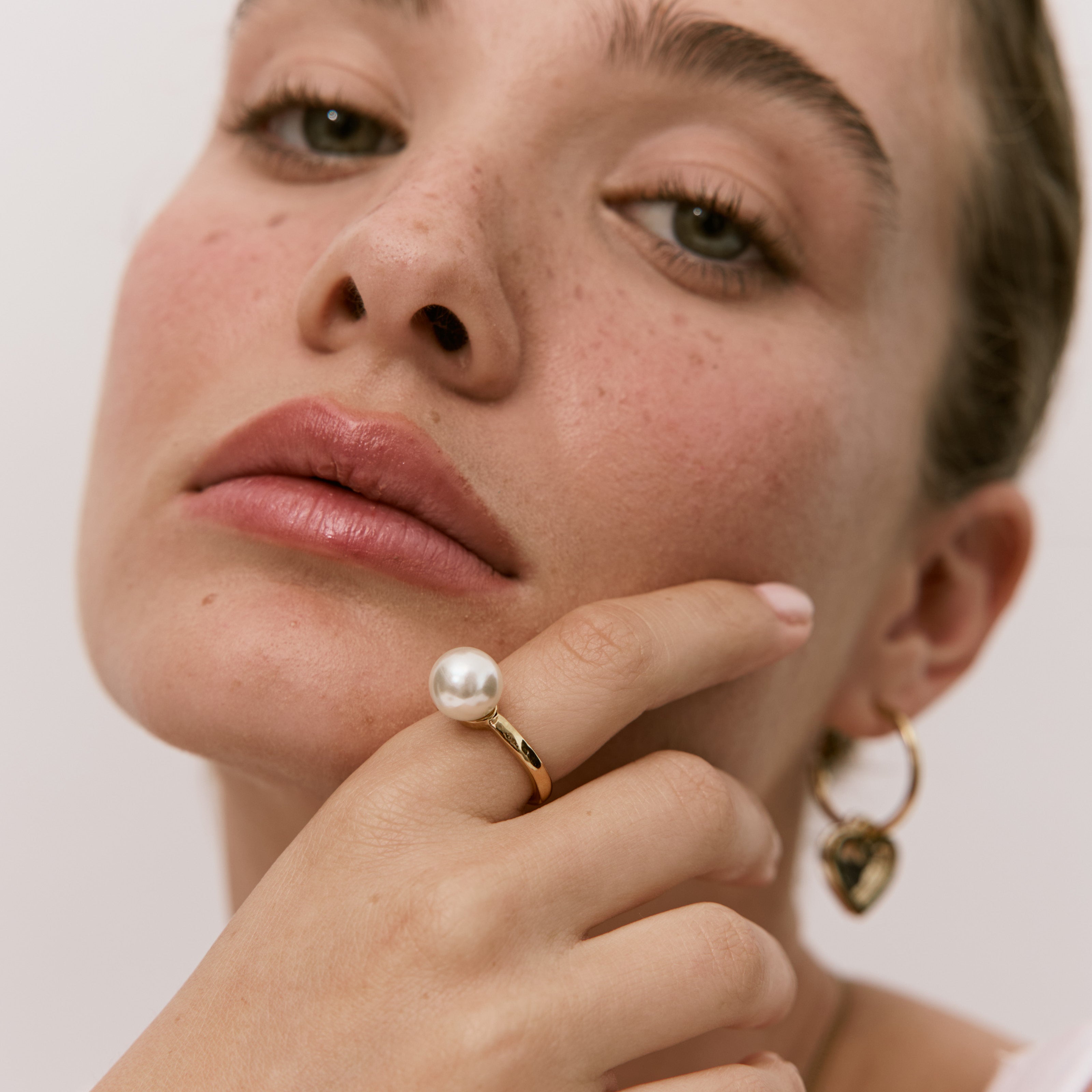 טבעת עדינה וקלאסית משובצת פנינה, מעוצבת בקווים נקיים ואלגנטיים. הטבעת עשויה בעבודת יד ישראלית ומצופה זהב 24 קראט.