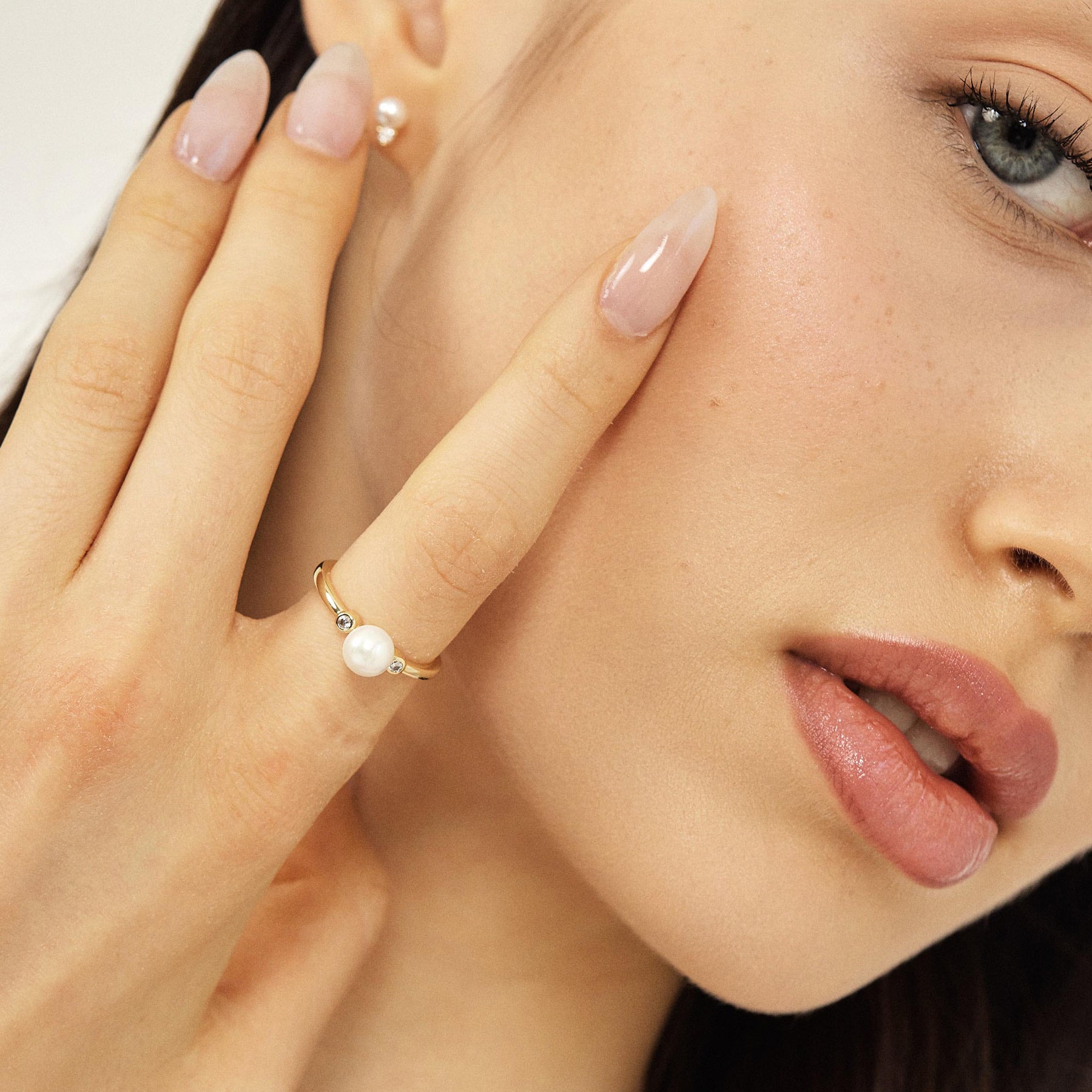 טבעת פנינה וזירקונים בעיצוב קלאסי ועל-זמני שתמיד תתאים ותשדרג את הלוק שלך. הטבעת עשויה בעבודת יד ומצופה בזהב 14K.