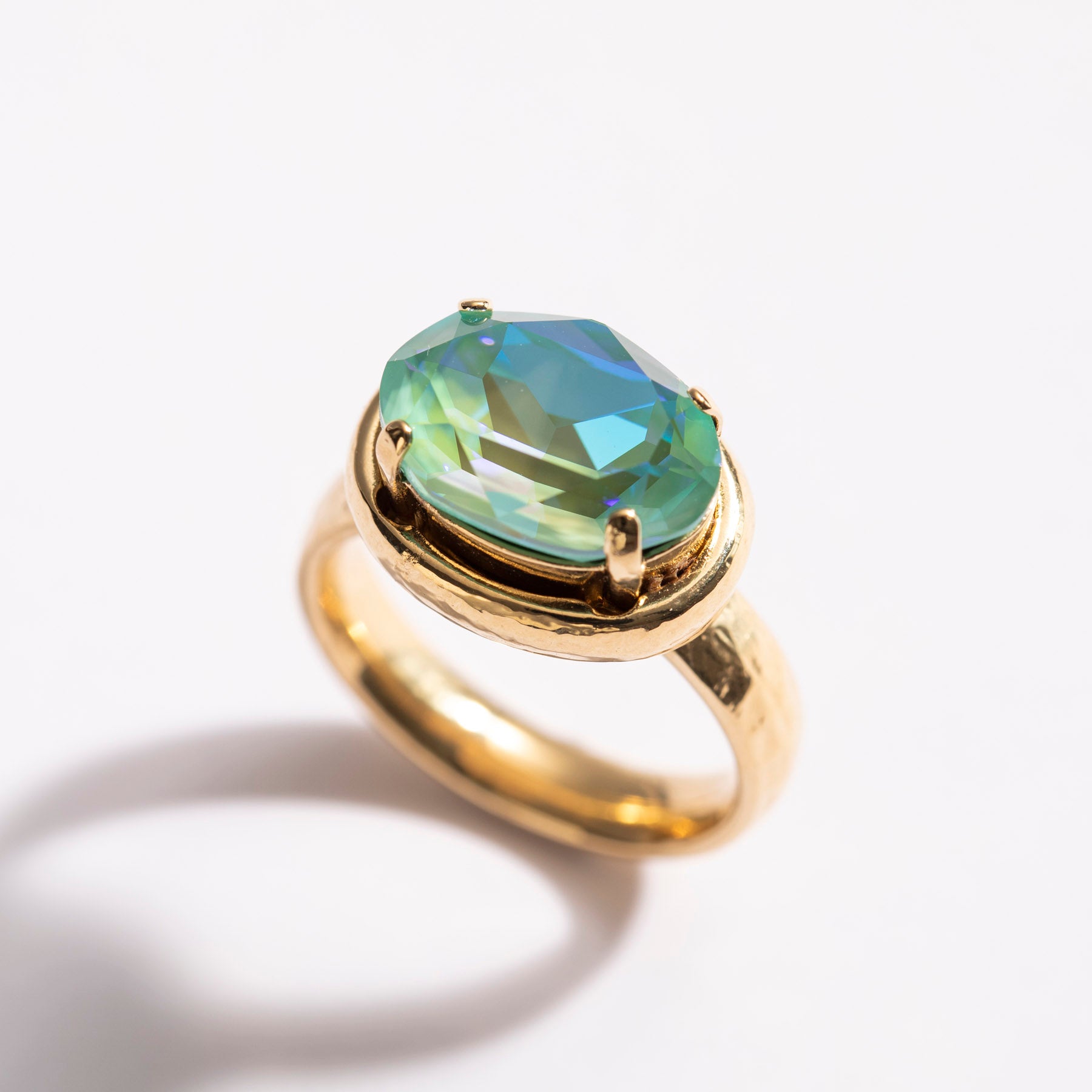 טבעת עדינה מצופה זהב 24 קראט ומשובצת קריסטל יוקרתי או פנינה בוהקת.