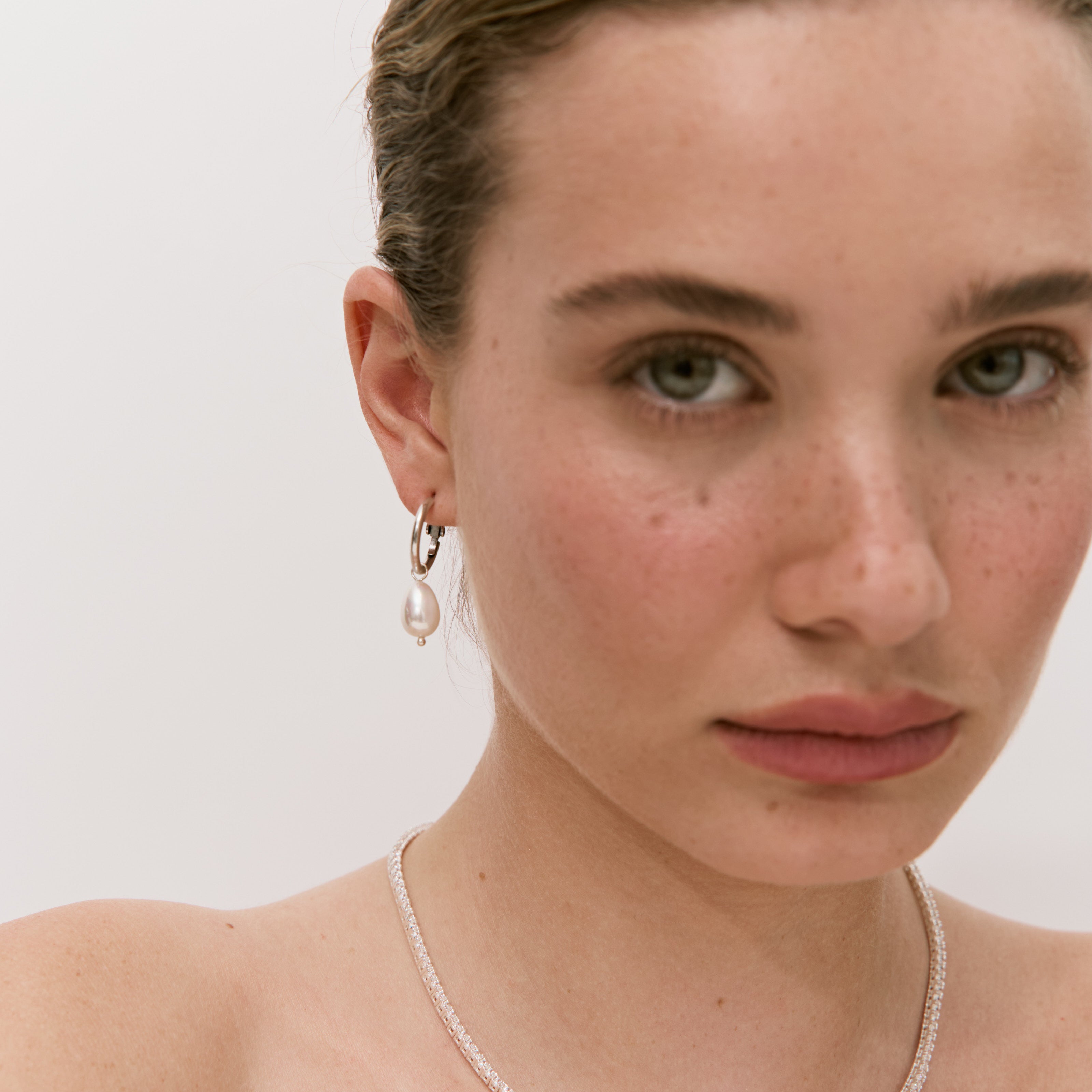 השילוב בין חישוק קטן לבין פנינת מים מתוקים בצורת טיפה, הופכים את העגילים הללו לפריט שהוא גם טרנדי וגם על-זמני. עגילי מאיה מהווים חלק מקולקציית Everything Pearls, שמציגה עולם של פנינים, עולם שכולו יופי אורגני, ייחודיות ונשיות רכה ועוטפת. כפי שהפנינה היא אבן החן היחידה, שגדלה בתוך גוף חי של צדפה, כך גם הקולקציה כולה מתחברת לכוח החיים, ליופי טבעי ולעוצמות נשיות.