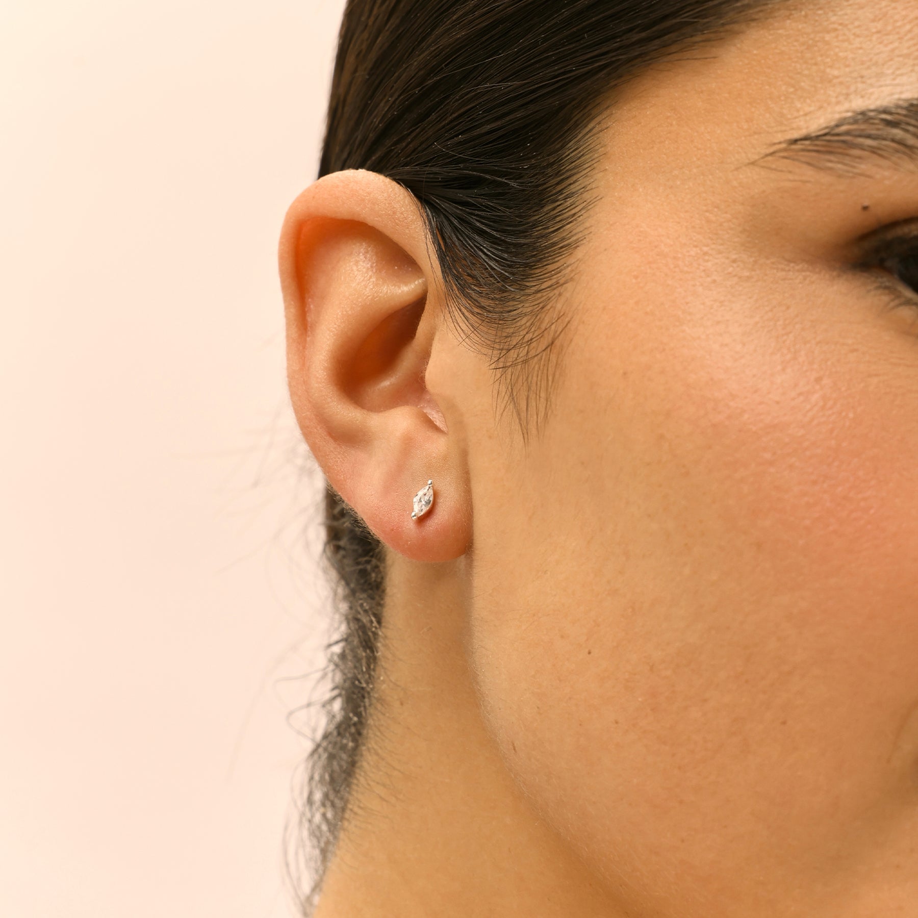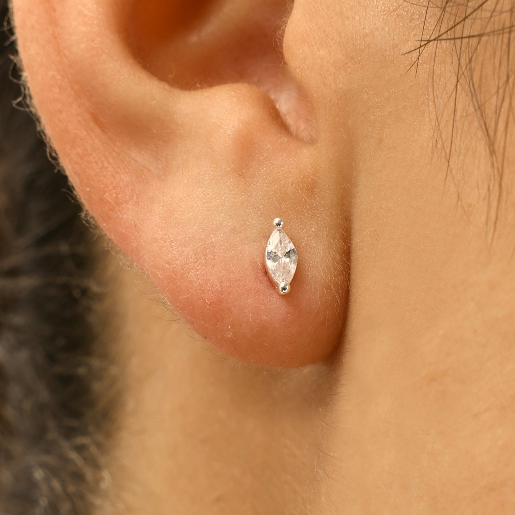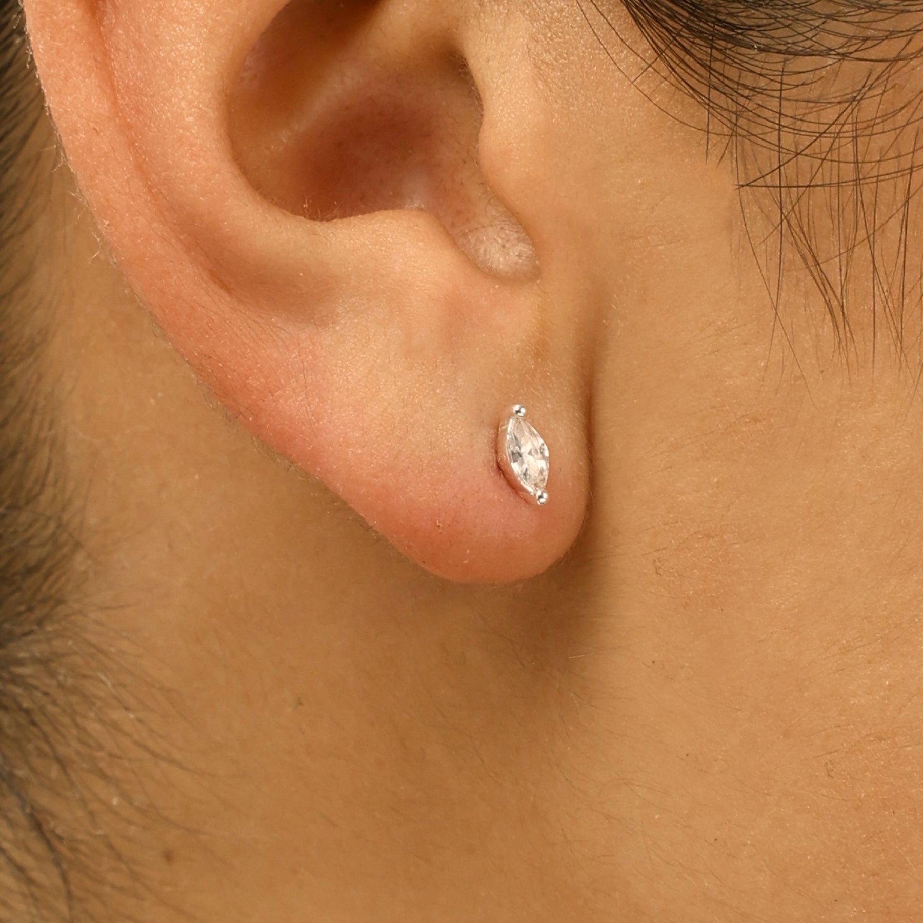עגילים צמודים קטנים משובצים זירקון יוקרתי בצורת מרקיזה. מתאימים במיוחד לעיצוב האוזן. העגילים עשויים בעבודת יד ומצופים כסף טהור.
