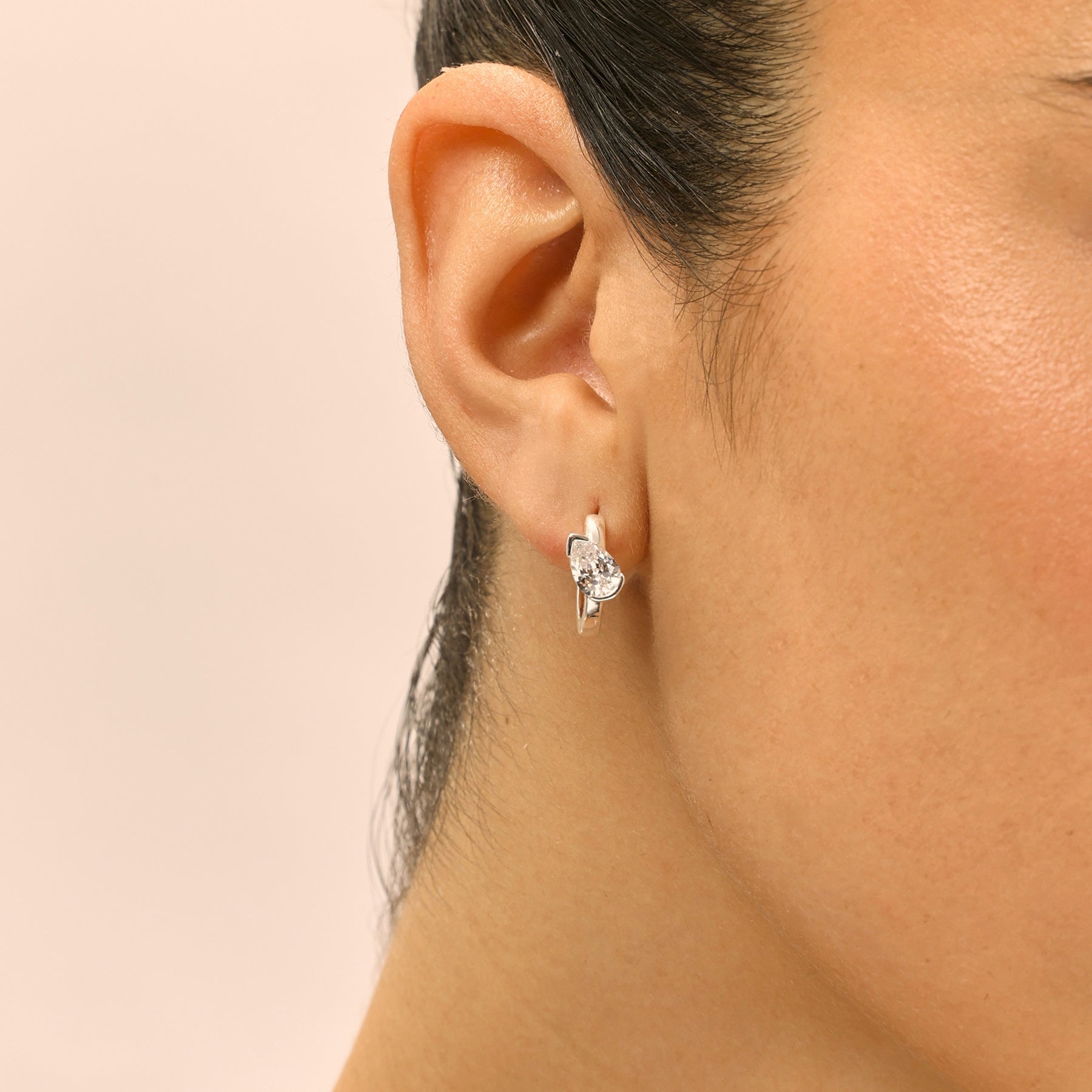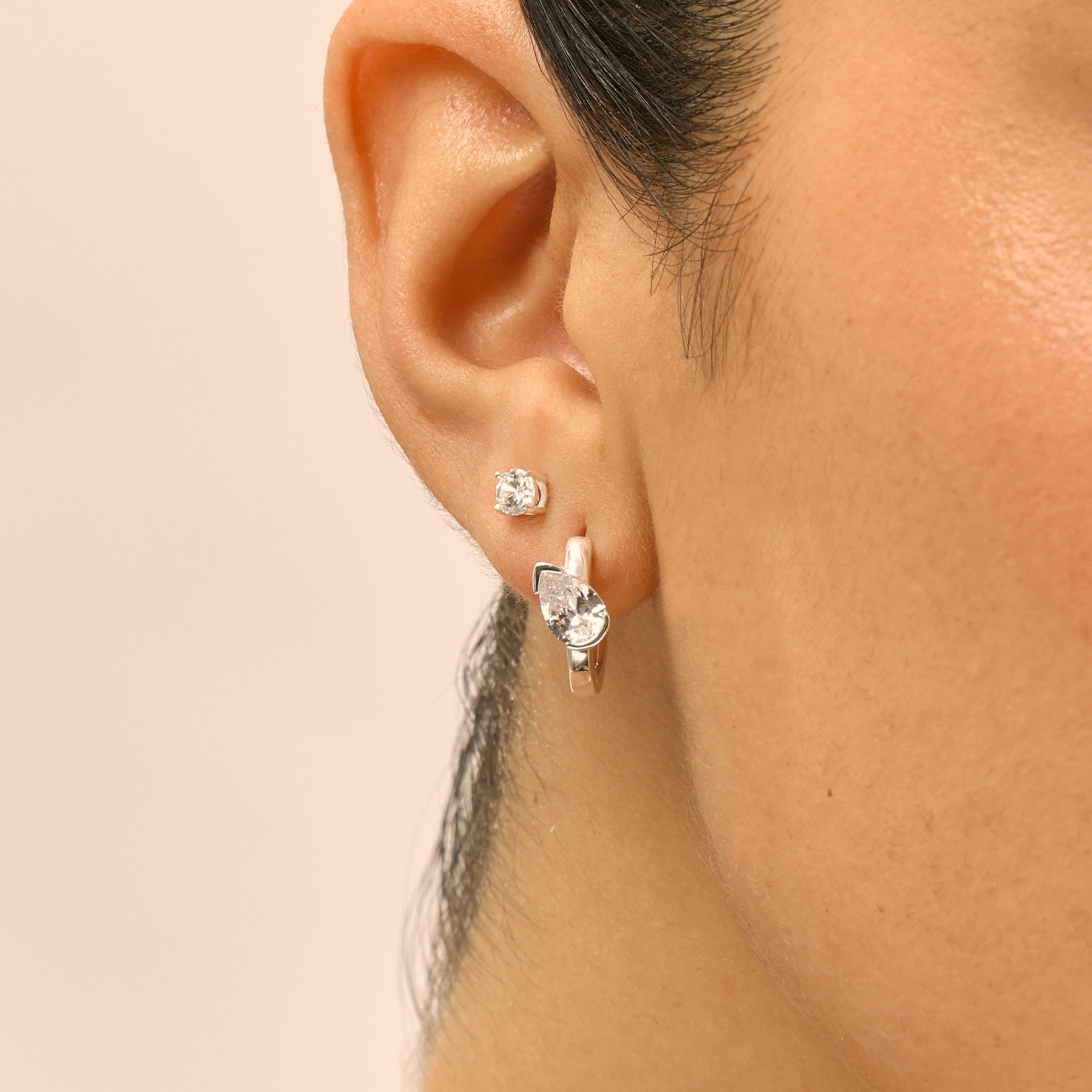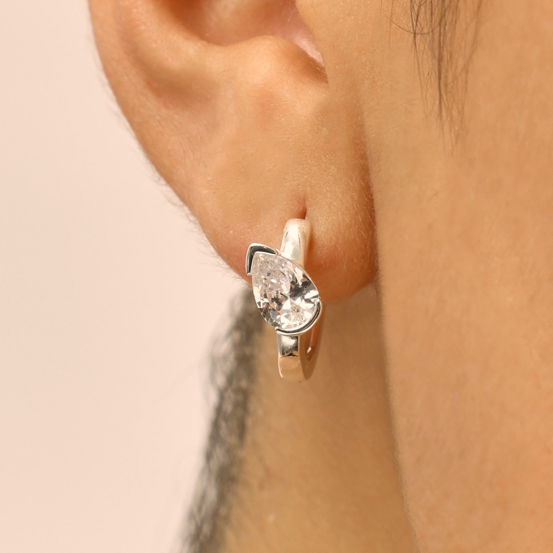 עגילי חישוק קטנים עם זירקון בצורת טיפה, שמוסיפים ברק עדין ונוכחות אלגנטית. מראה נקי ומעודכן, מושלם לעיצוב האוזן ולשילוב יומיומי. העגילים עשויים בעבודת יד ומצופים כסף טהור.