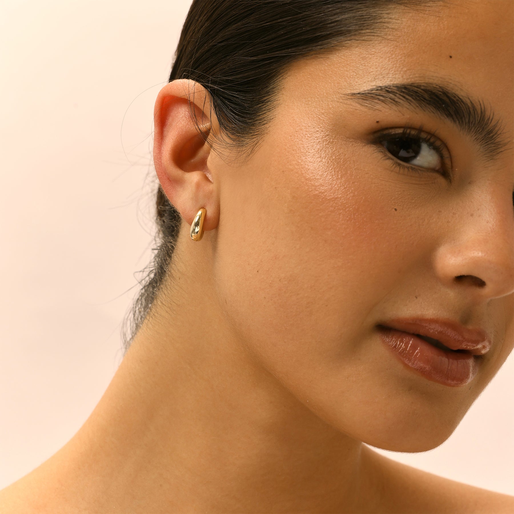 עגילי חישוק קטנים מעוגלים בקווים נקיים ללוק טרנדי ומלא סטייל. מתאימים בפני עצמם או בשילוב עם עגילים נוספים. העגילים עשויים בעבודת יד ומצופים זהב 14K.