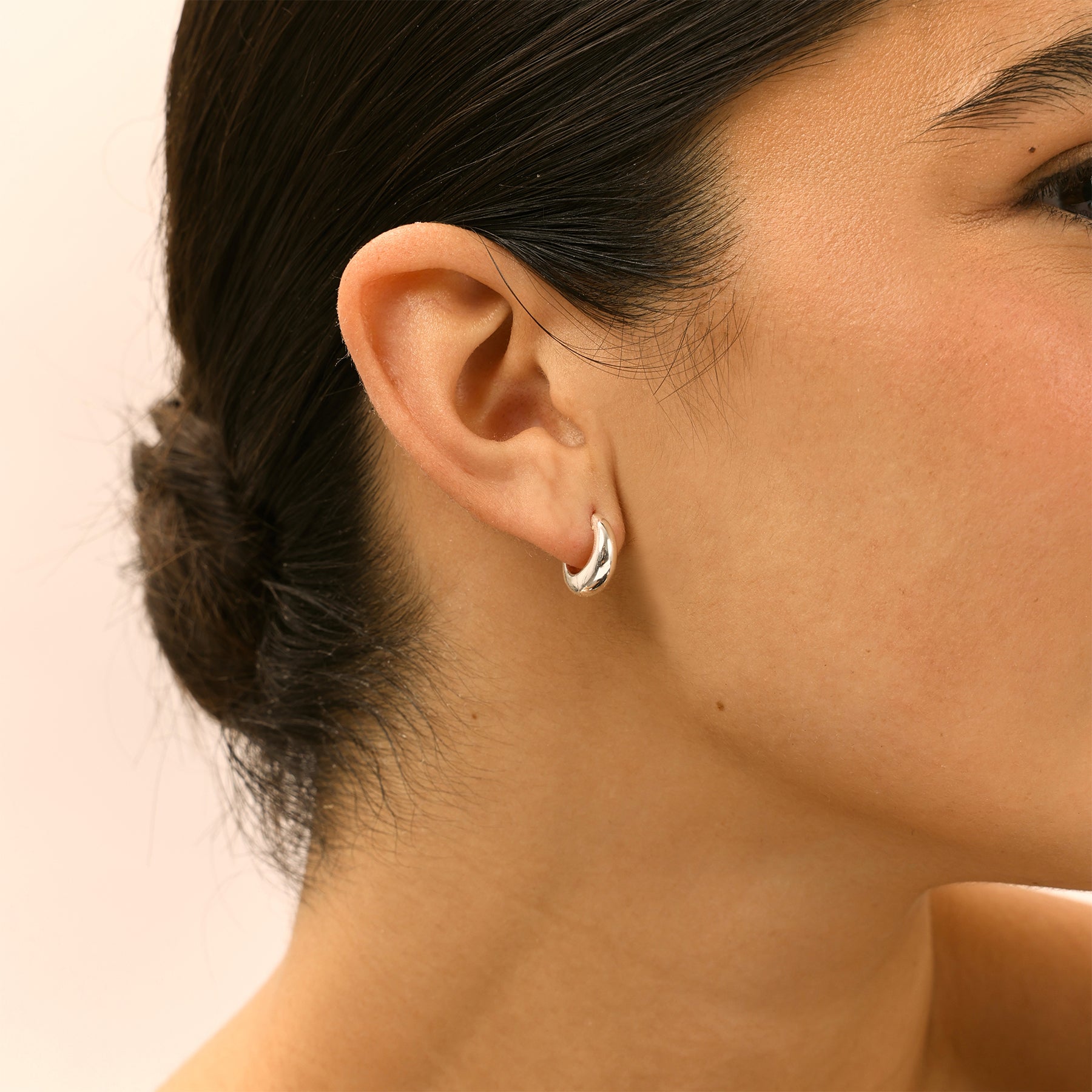 עגילי חישוק קטנים מעוגלים בקווים נקיים ללוק טרנדי ומלא סטייל. מתאימים בפני עצמם או בשילוב עם עגילים נוספים. העגילים עשויים בעבודת יד ומצופיםכסף טהור.