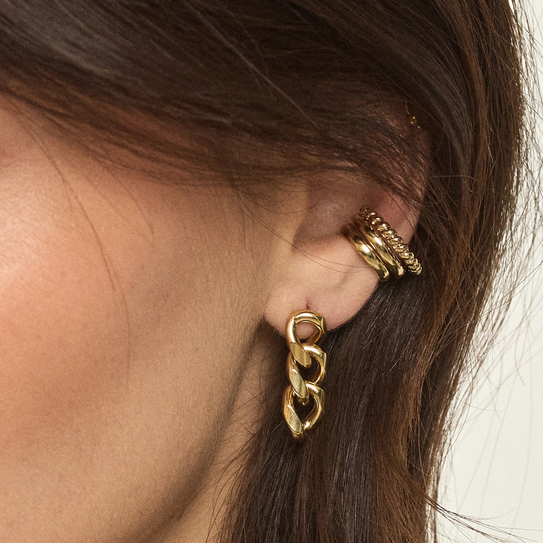 עגיל חוליות תלוי במראה עכשווי ושיקי, עשוי בעבודת יד ומצופה זהב 24K.