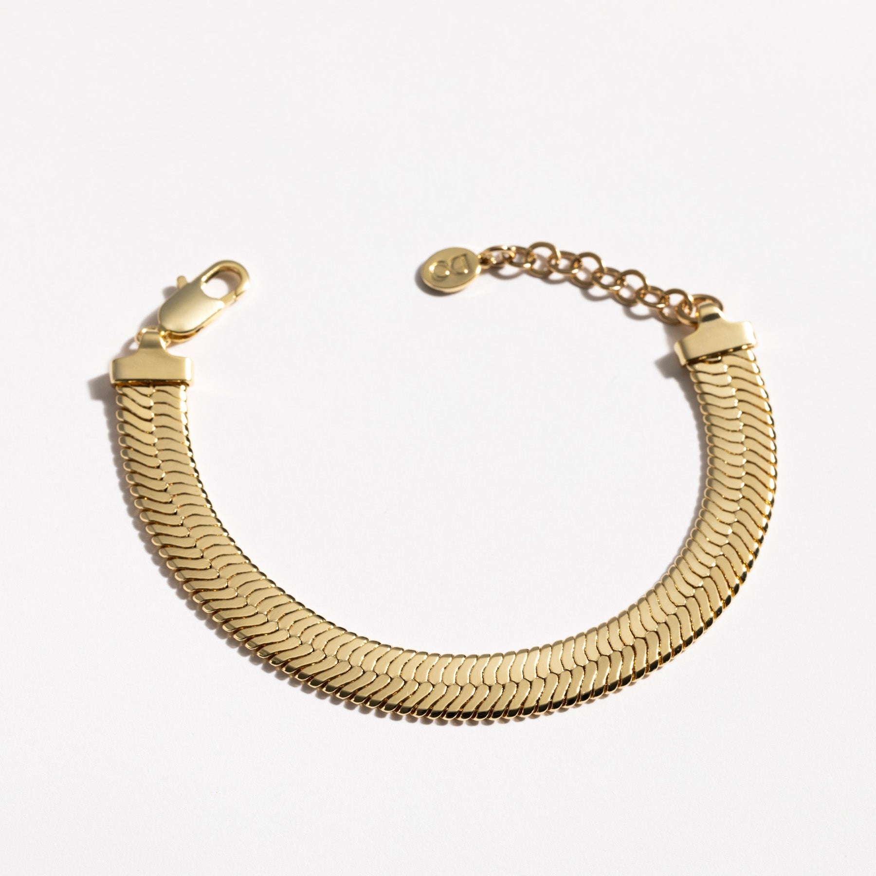צמיד שטוח ורחב בעיצוב אלגנטי, מרשים ועל-זמני, ללוק מלא נוכחות וסטייל. הצמיד עשוי בעבודת יד ומצופה בזהב 14K.