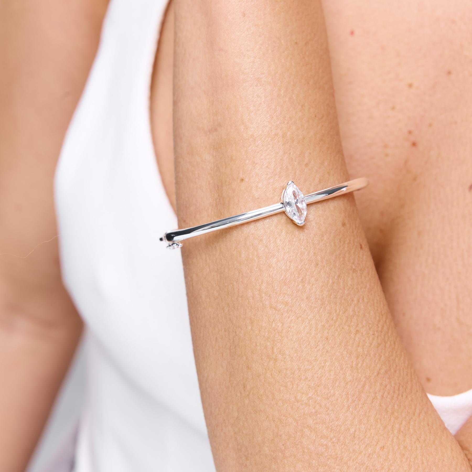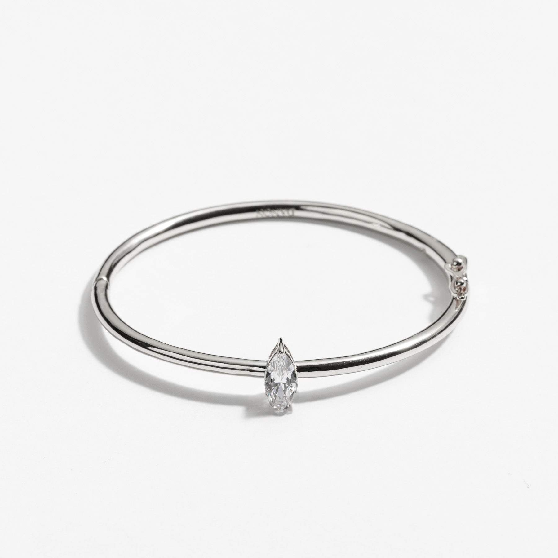 צמיד נפתח קשיח בעיצוב נקי, יוקרתי ואלגנטי, משובץ בזירקון בצורת מרקיזה. הצמיד עשוי בעבודת יד ומצופה בכסף טהור.