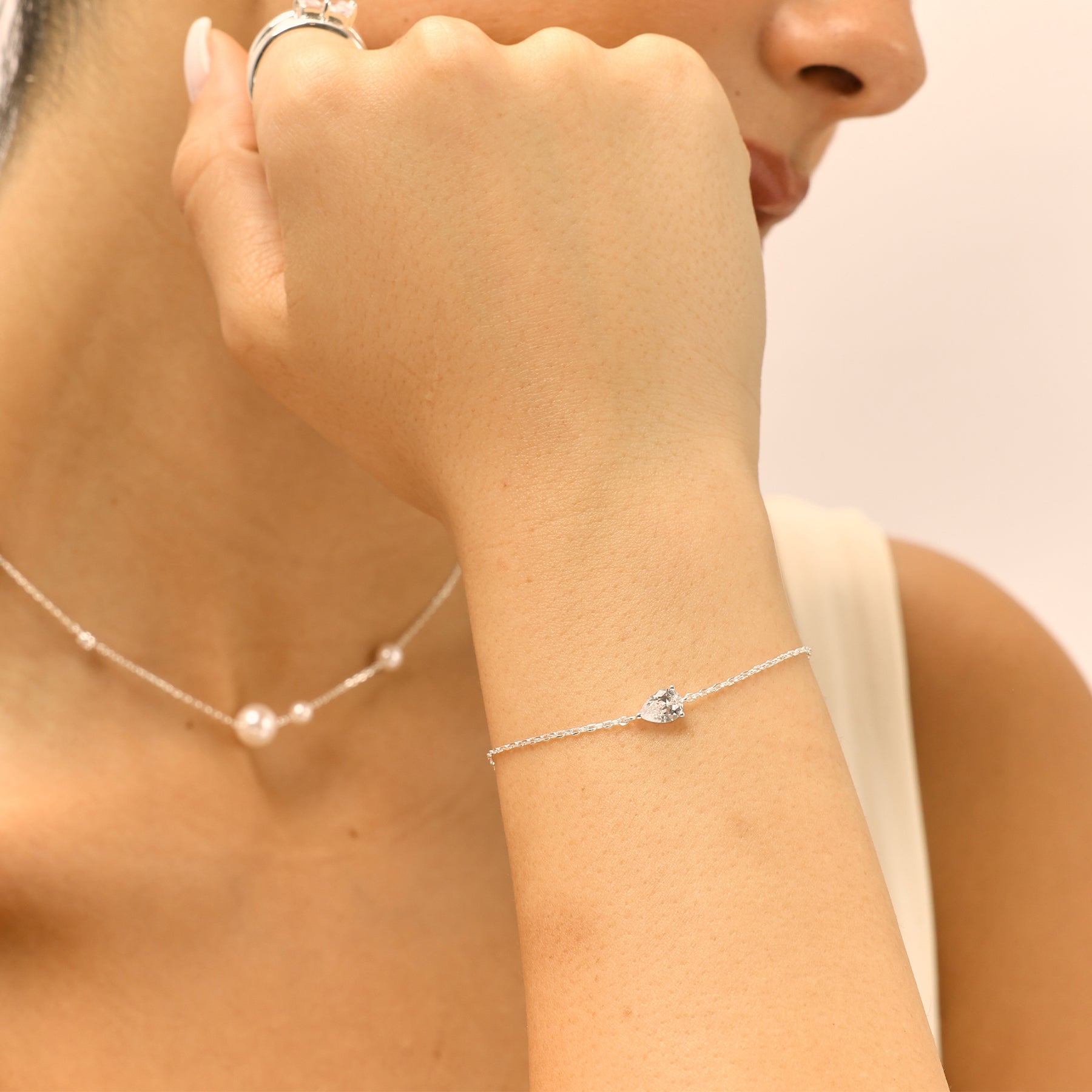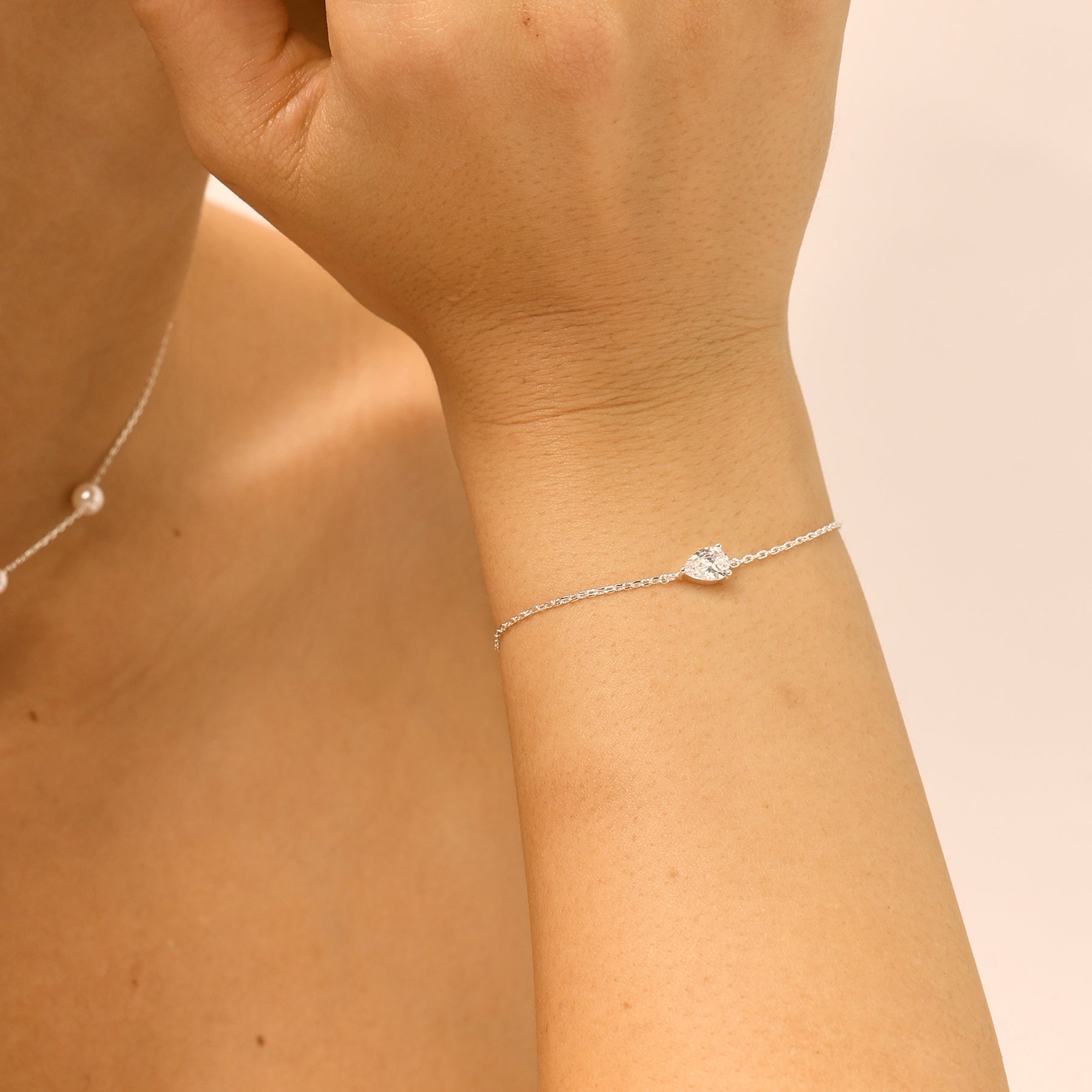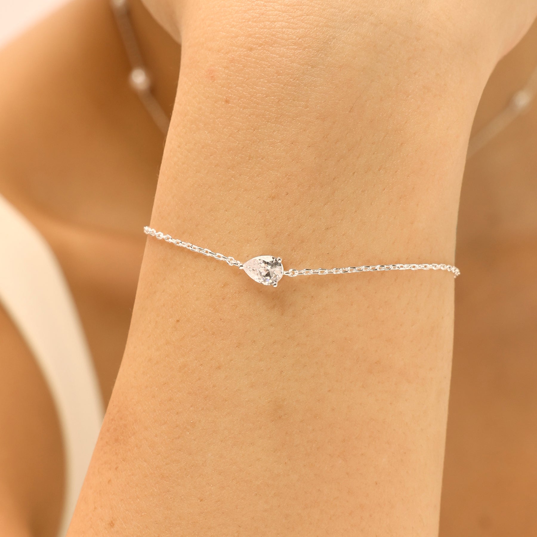 צמיד אלגנטי וקליל, משולב אבני זירקון בצורת טיפה, הפזורות בעדינות לאורך הצמיד. ברק רך ומינימליסטי שמוסיף נגיעה זוהרת ומתאים גם ללוק יומיומי וגם למראה ערב. הצמיד עשוי בעבודת יד ומצופה כסף טהור.