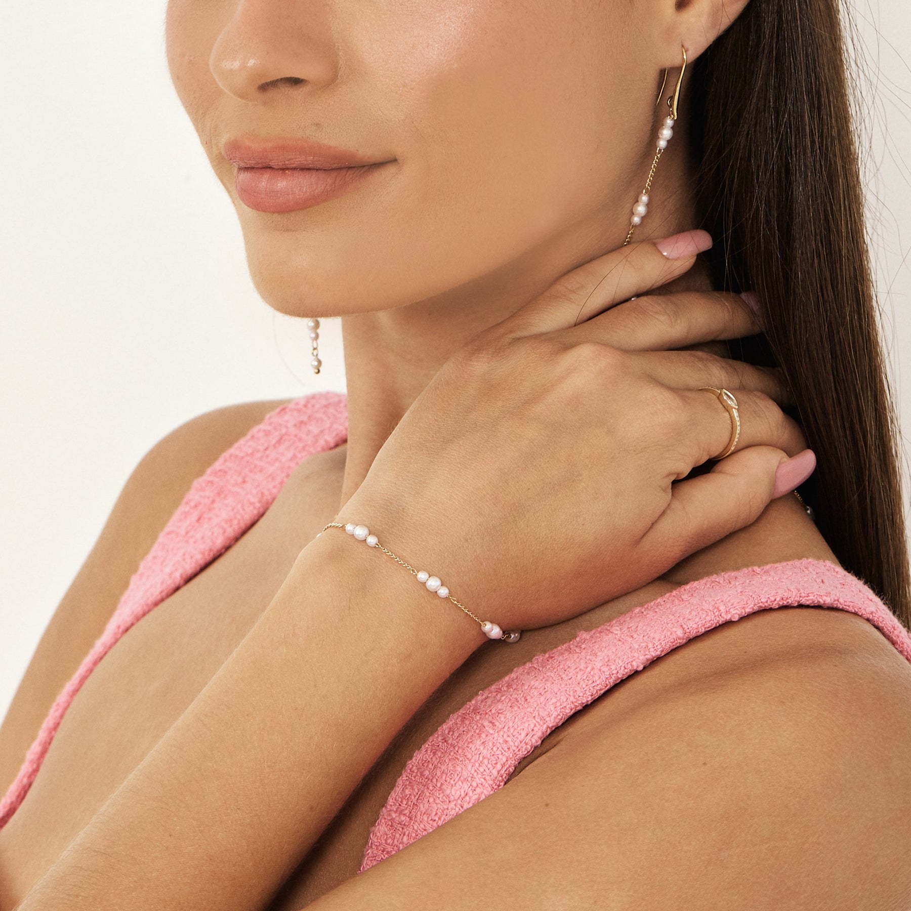 צמיד פנינים עדין ללוק טרנדי ומלא שיק. הצמיד עשוי בעבודת יד ישראלית והוא מצופה זהב 24K או כסף טהור. הצמיד מהווה חלק מקולקציית Summer Candie,