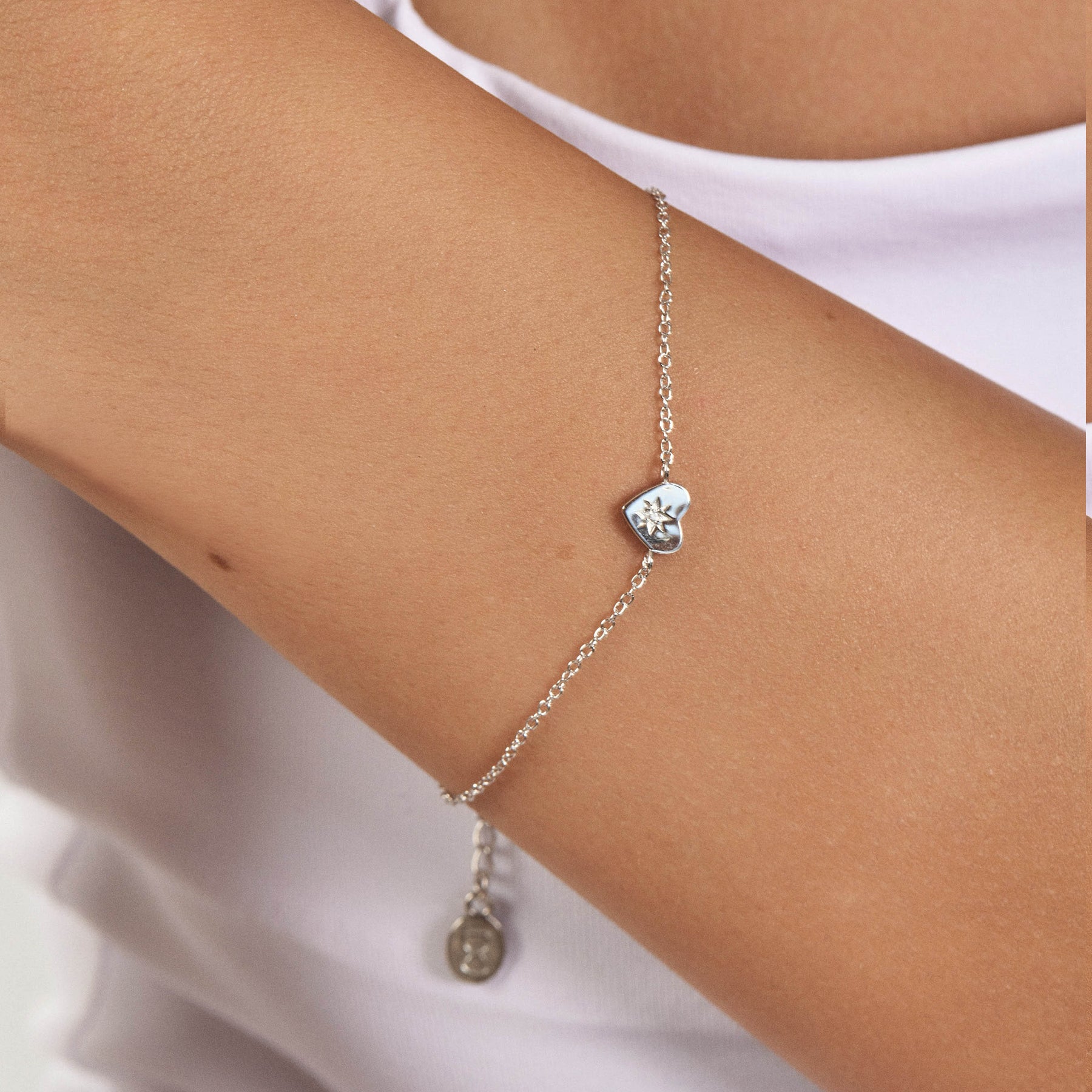 צמיד לב עדין משובץ בזירקון, בעיצוב טרנדי שישתלב נפלא עם צמידים נוספים או כצמיד בודד. הצמיד עשוי בעבודת יד מכסף 925 ומצופה ברודיום.
