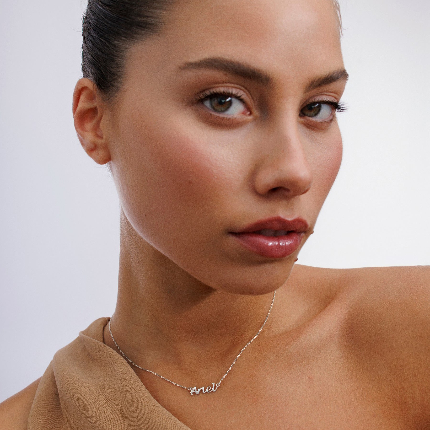 שרשרת שם עדינה ומלאת שיק, עשויה כסף 925. השרשרת מיוצרת בעבודת יד ישראלית אותנטית והיא מגיעה בכסף 925 או בציפוי זהב 14K, לבחירתך. הביאי את הסטייל שלך לידי ביטוי באמצעות תכשיט אישי ומושלם, או העניקי אותו כמתנה מיוחדת במינה למי שאת אוהבת. שימי לב, השרשרת אינה נתנת להחלפה או להחזרה. שימי לב, מאחר וכל שרשרת מיוצרת בהזמנה אישית, הרי שזמן המשלוח לתכשיט זה הנו ארוך מהרגיל והוא עומד על 7 ימי עסקים.