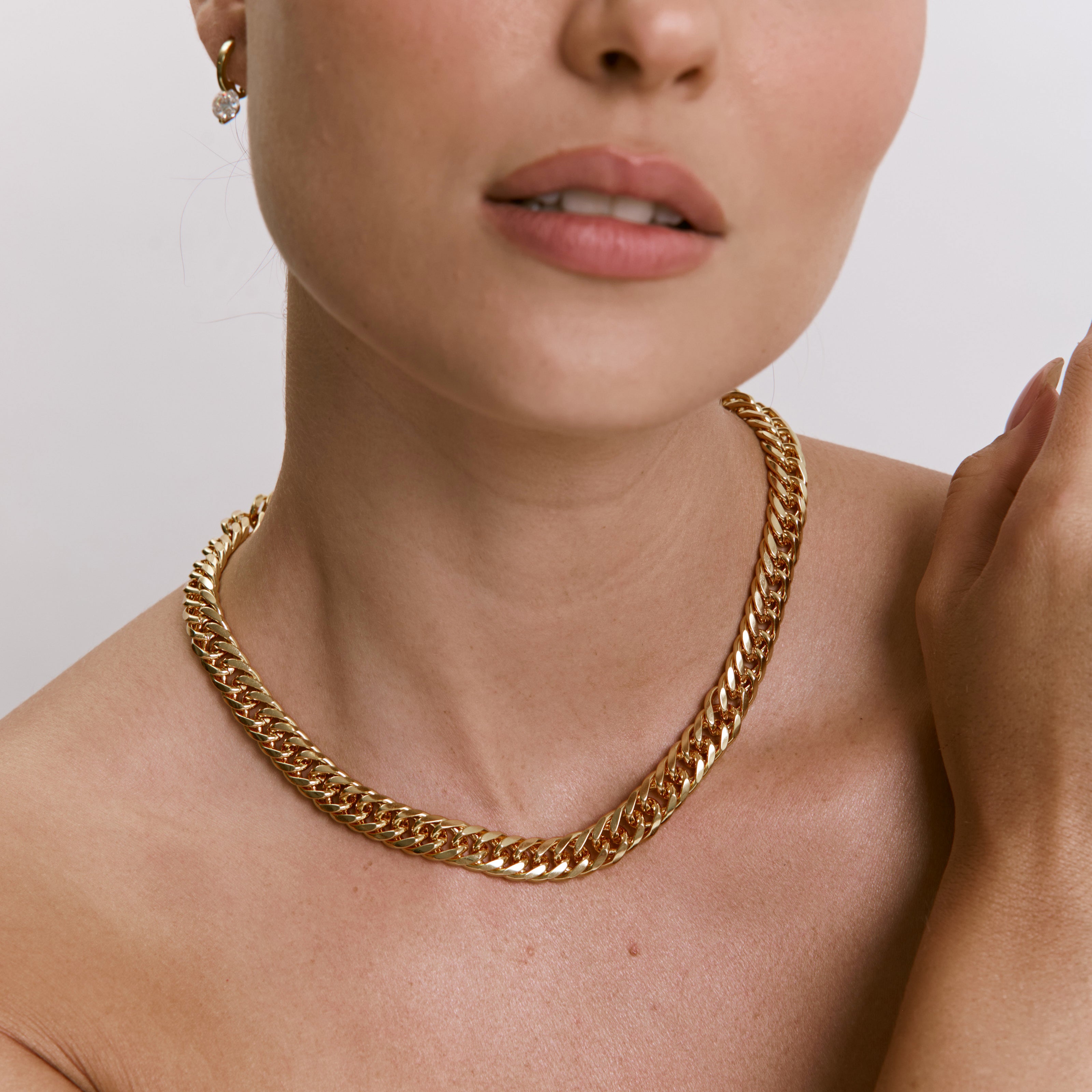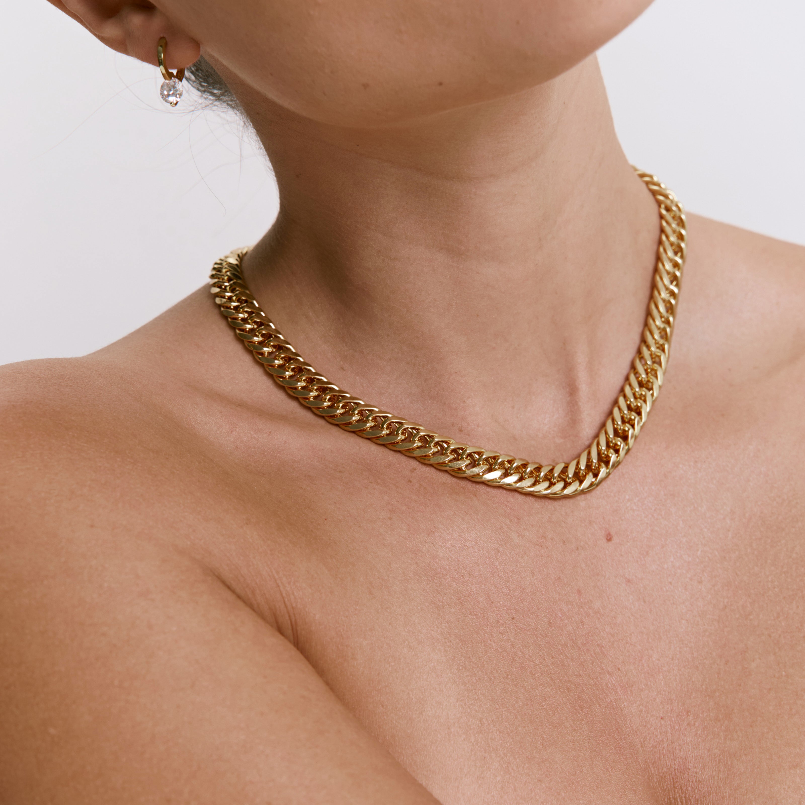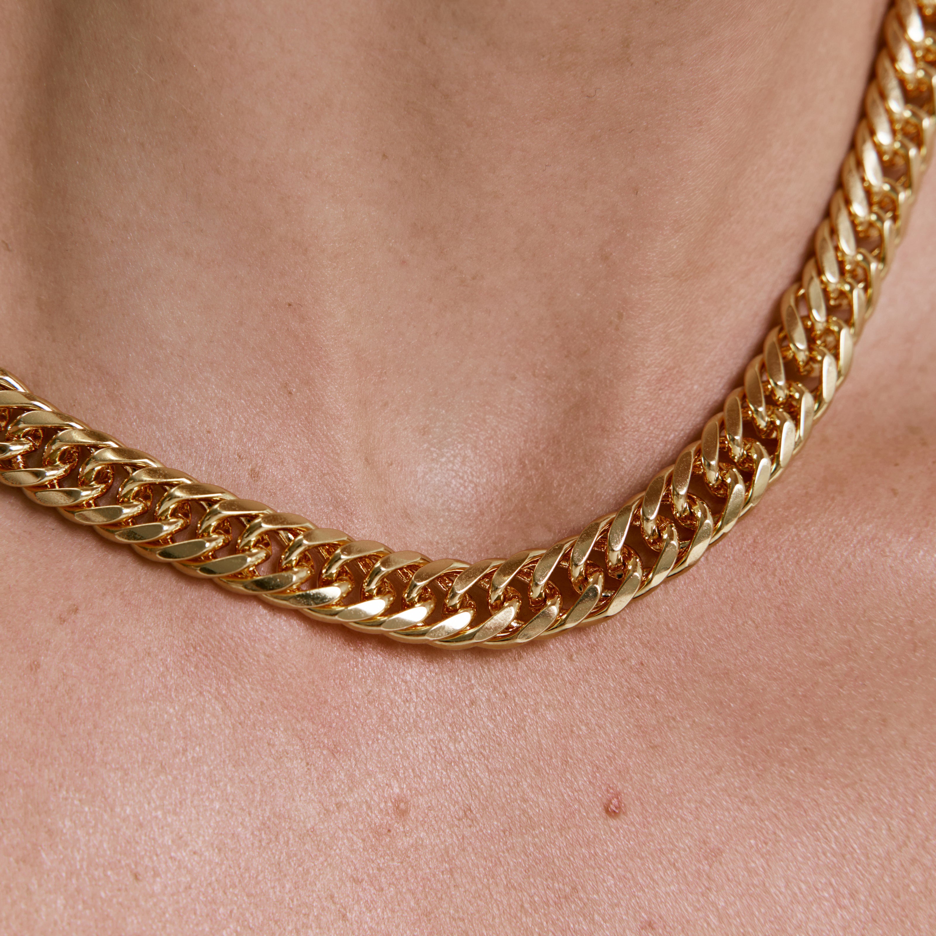 שרשרת גורמט קלאסית רחבה, ללוק טרנדי ומלא סטייל. השרשרת עשויה בעבודת יד ומצופה בזהב 14K.