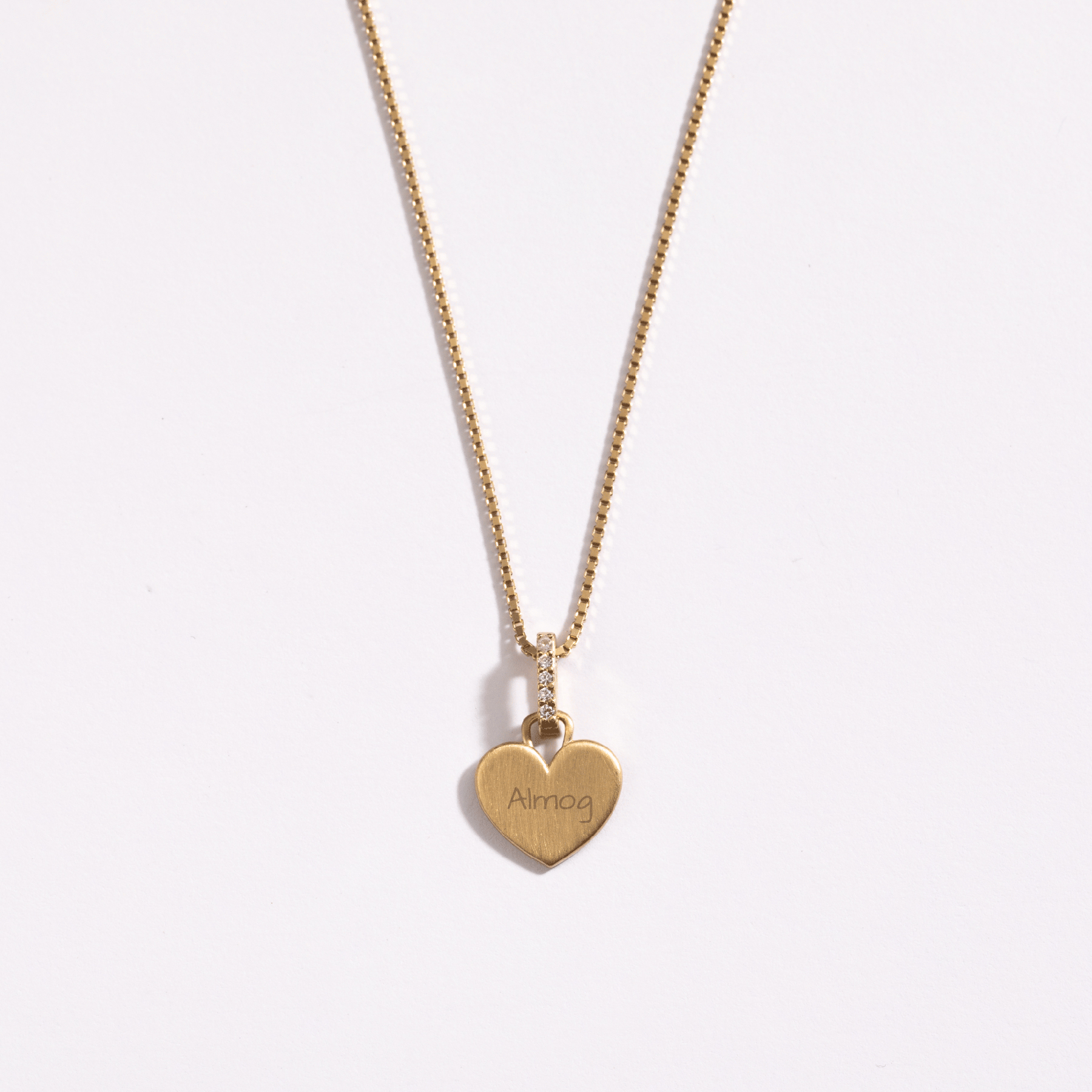 שרשרת לב עדינה ומלאת סטייל עם מתלה משובץ אבני זירקון יוקרתיות. השרשרת מיוצרת בעבודת יד ישראלית, עשויה מכסף טהור ומצופה בזהב 14k בגימור מאט מוברש. ניתן להוסיף חריטה פרסונלית לבחירתך ללא תוספת תשלום. קולקציית