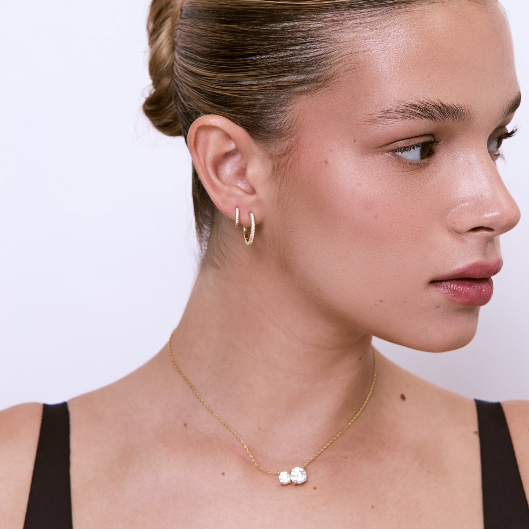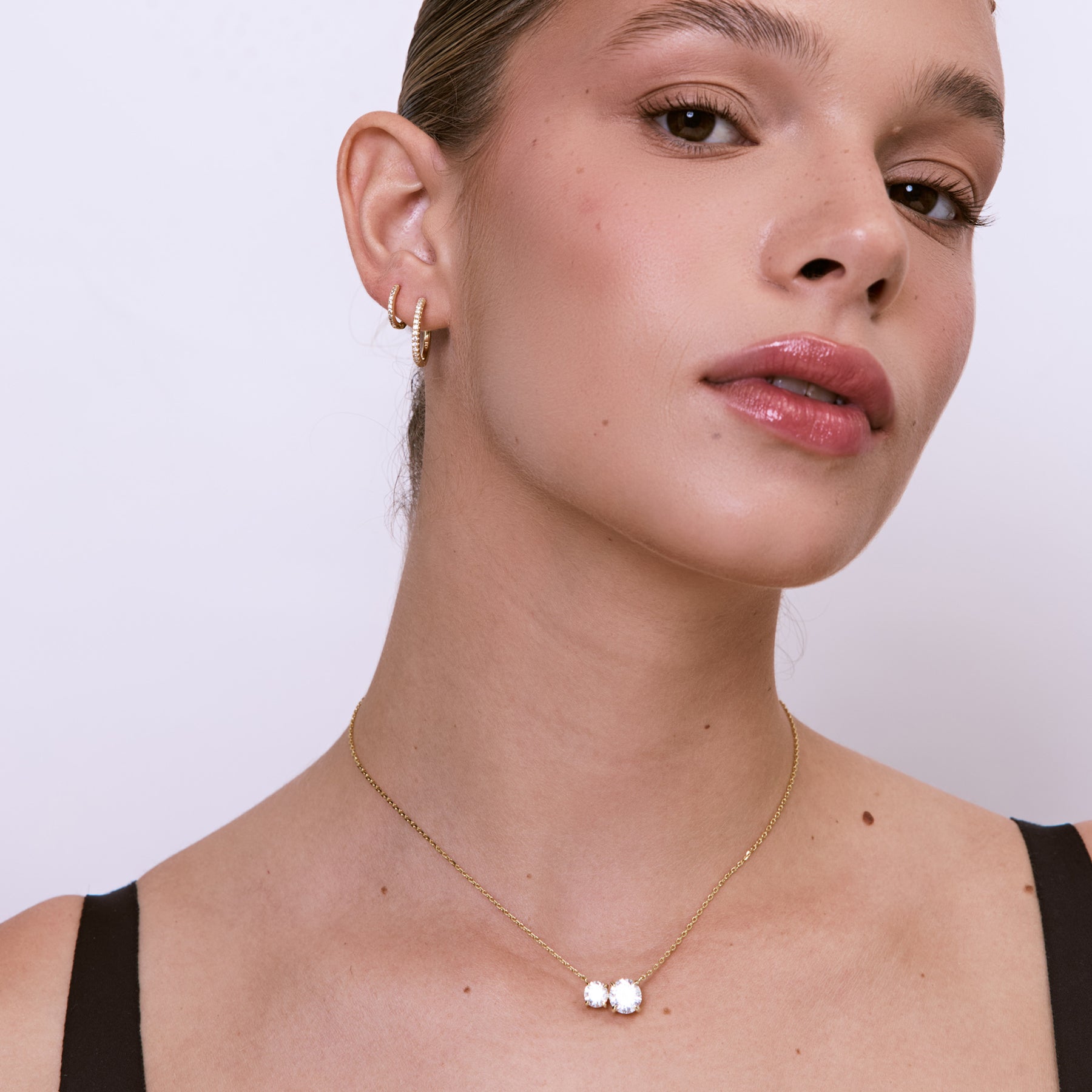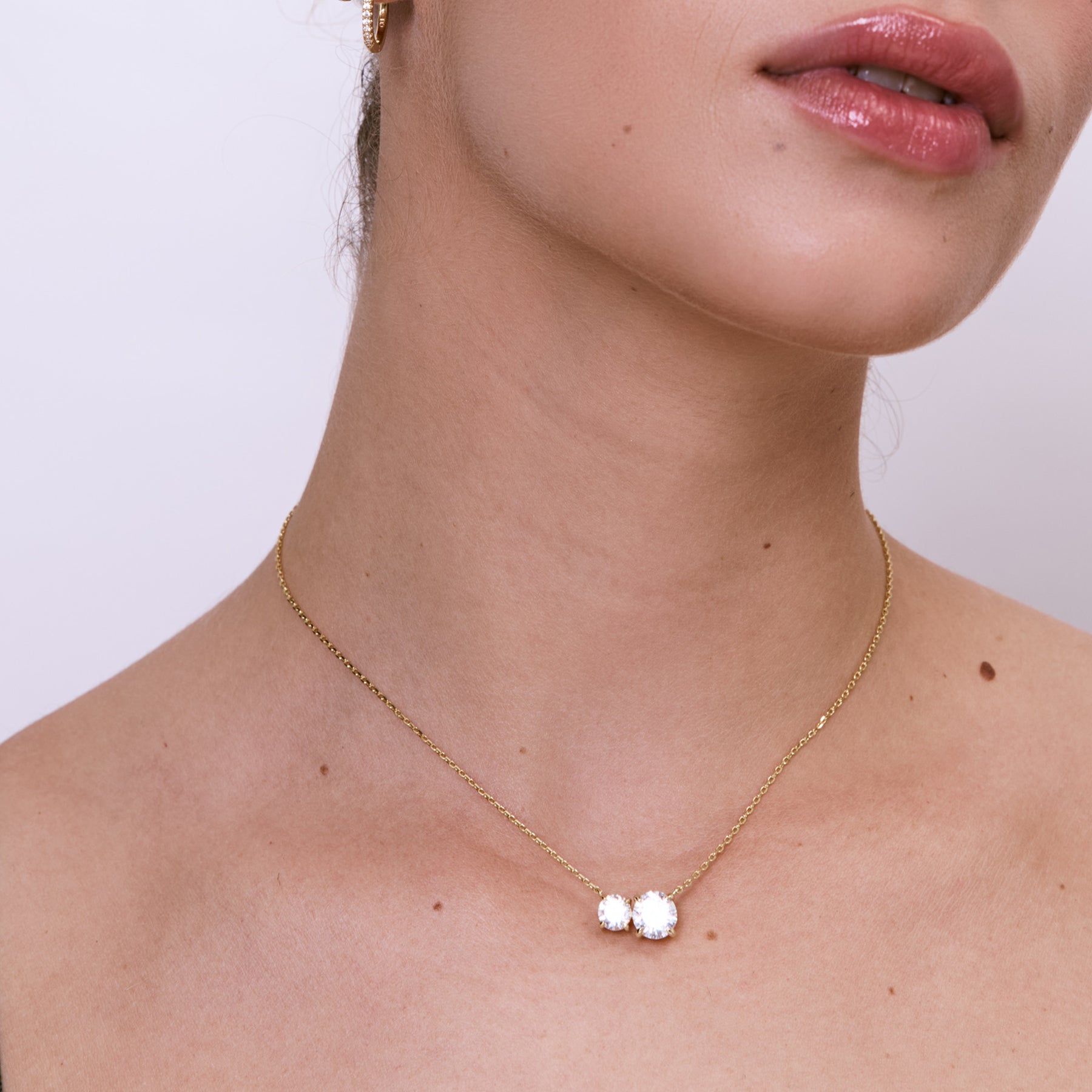 שרשרת משובצת בזוג זירקונים, בעיצוב מדויק, יוקרתי ואלגנטי. השרשרת עשויה בעבודת יד ומצופה בזהב 14K.