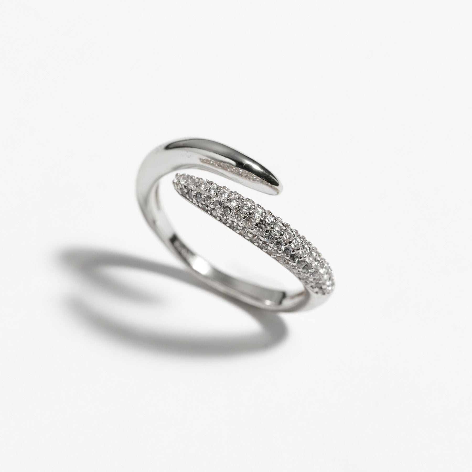 טבעת מתכווננת בעיצוב יוקרתי ואלגנטי, משובצת בזירקונים מנצנצים ללוק על-זמני ומדויק. הטבעת עשויה בעבודת יד ומצופה בכסף טהור.