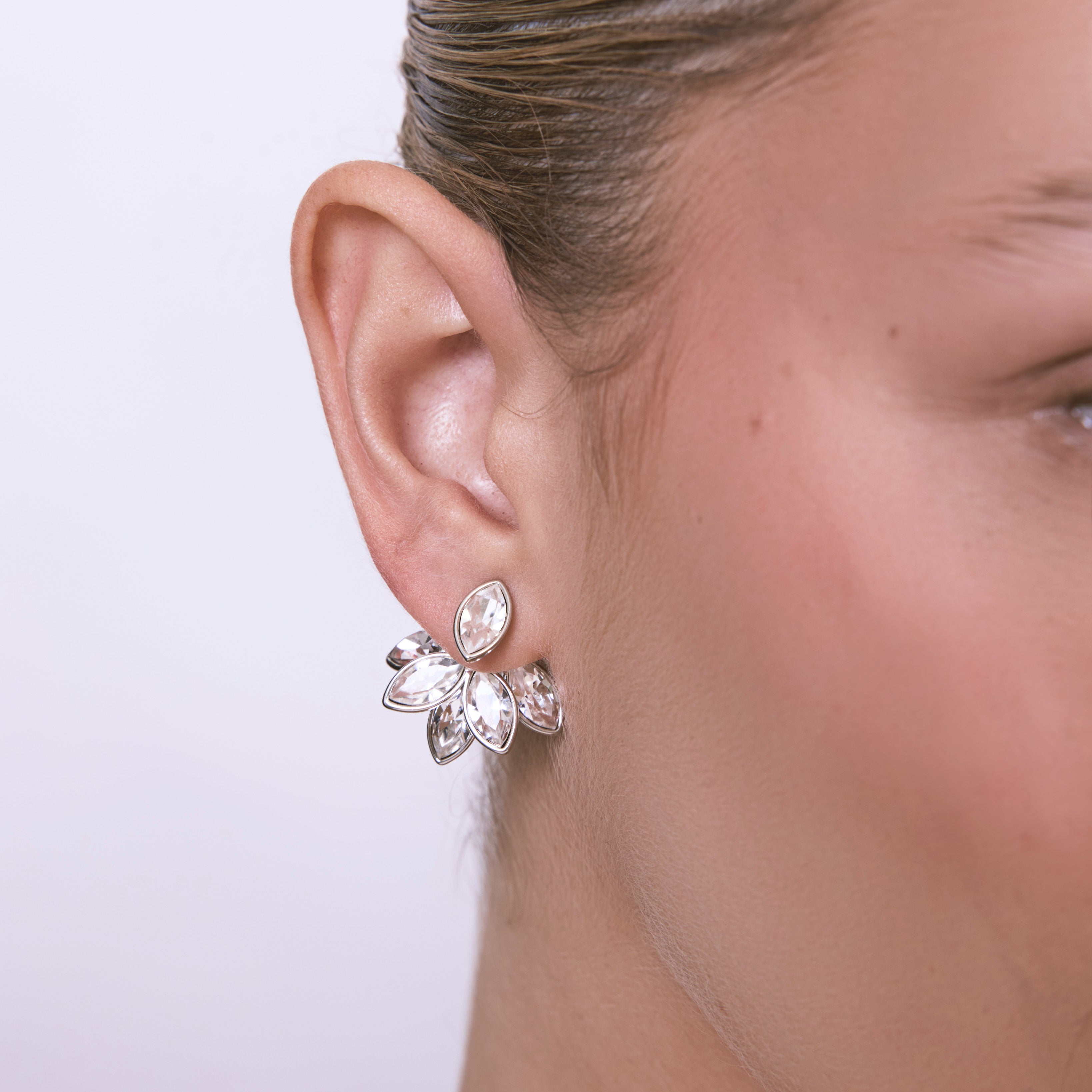 עגילי ג'אקט יפהפיים משובצים קריסטלים, ללוק מעוצב, יוקרתי ובלתי נשכח. העגילים עשויים בעבודת יד ומצופים ברודיום.