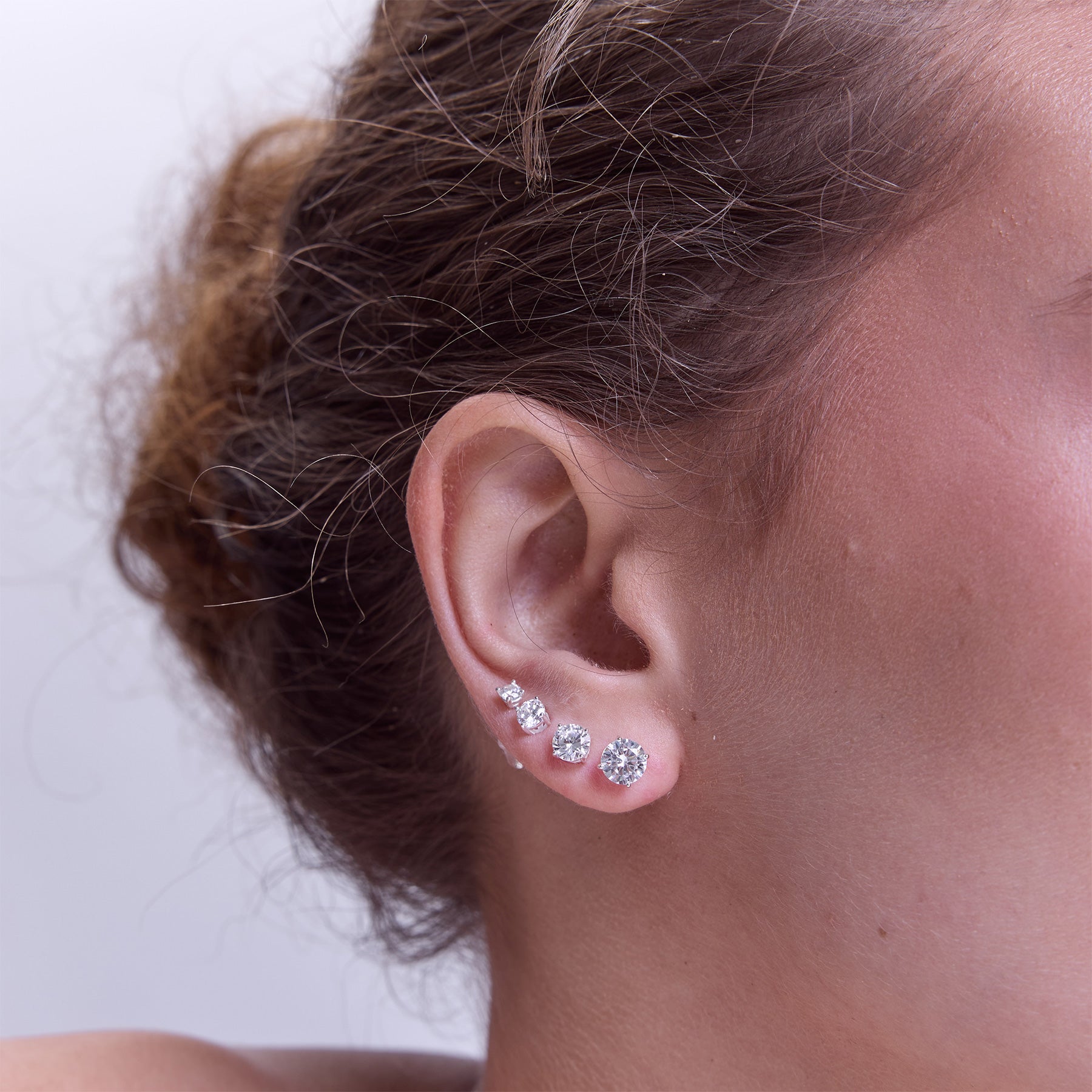 עגילי נקודה קלאסיים משובצים בזירקון 6ממ, בעיצוב נקי על-זמני. העגילים עשויים בעבודת יד מכסף סטרלינג 925 ומצופים בכסף טהור.