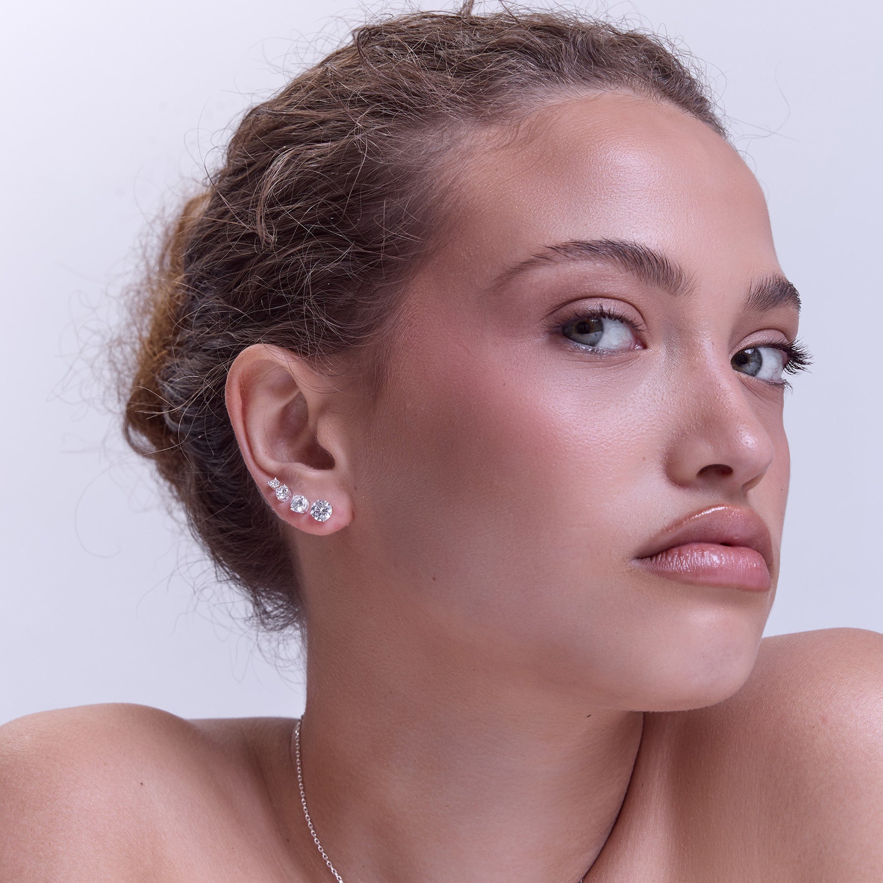 עגילים קלאסיים משובצים בזירקון 3ממ, בעיצוב נקי על-זמני.העגילים עשויים בעבודת יד מכסף סטרלינג 925 ומצופים בכסף טהור.