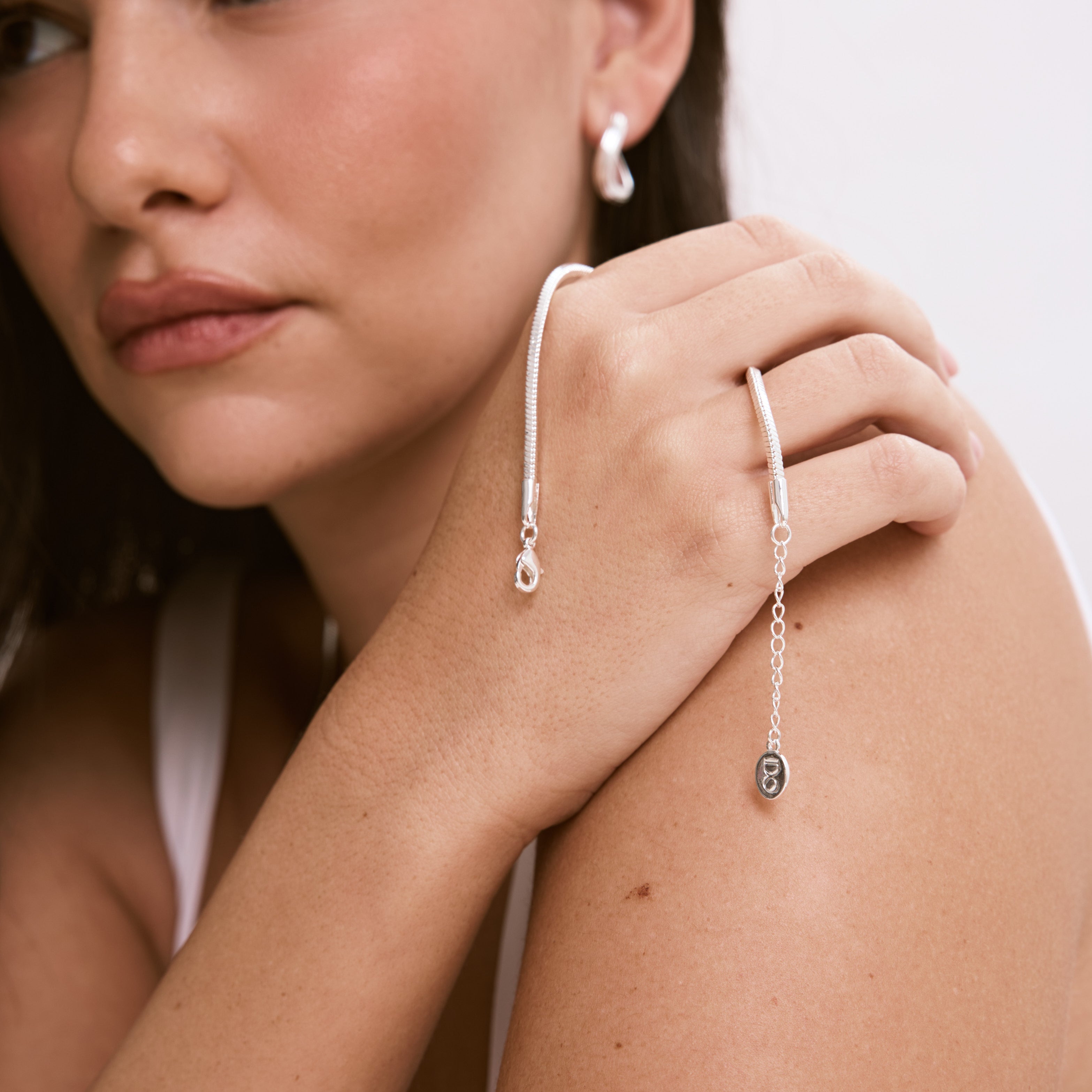צמיד משרשרת נחש מרובעת בעיצוב נקי ומדויק, מושלם כבודד או משולב עם צמידים נוספים. הצמיד עשוי בעבודת יד ומצופה בכסף טהור.