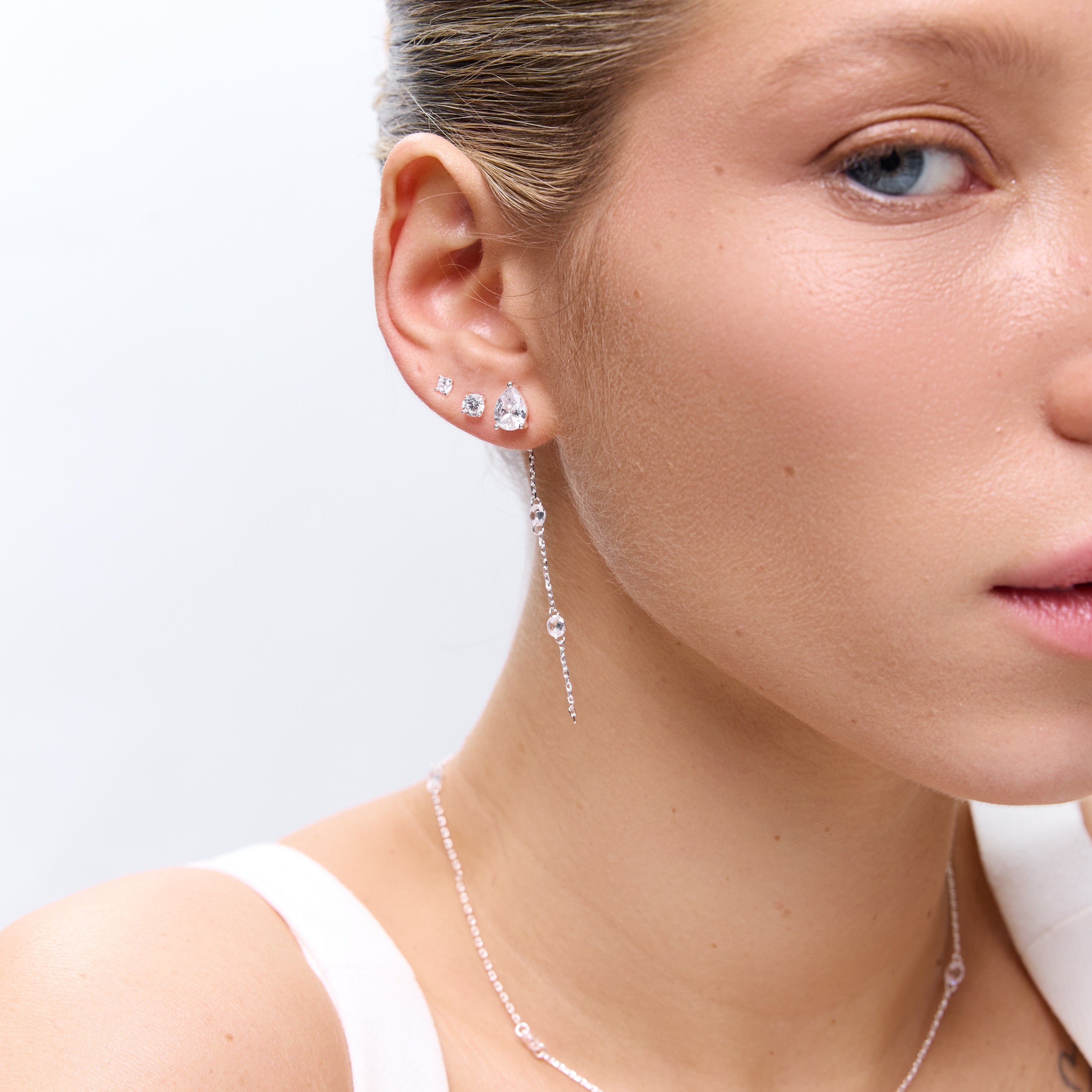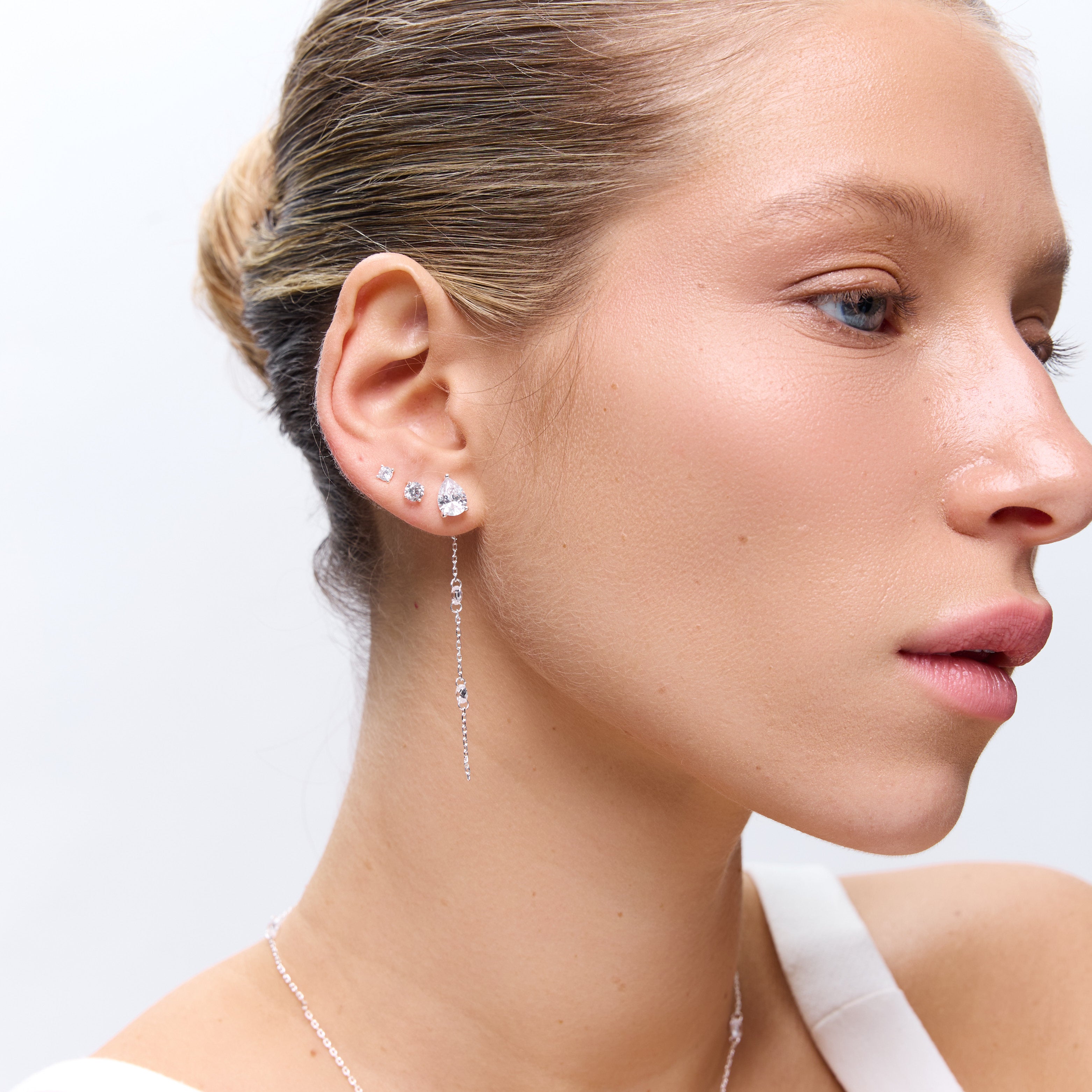 עגילים צמודים עם זירקונים בצורת טיפה, בתוספת שרשרת עדינה וארוכה עם זירקונים עגולים קטנים, ללוק ייחודי ומחמיא. העגילים עשויים בעבודת יד ומצופים בכסף טהור.