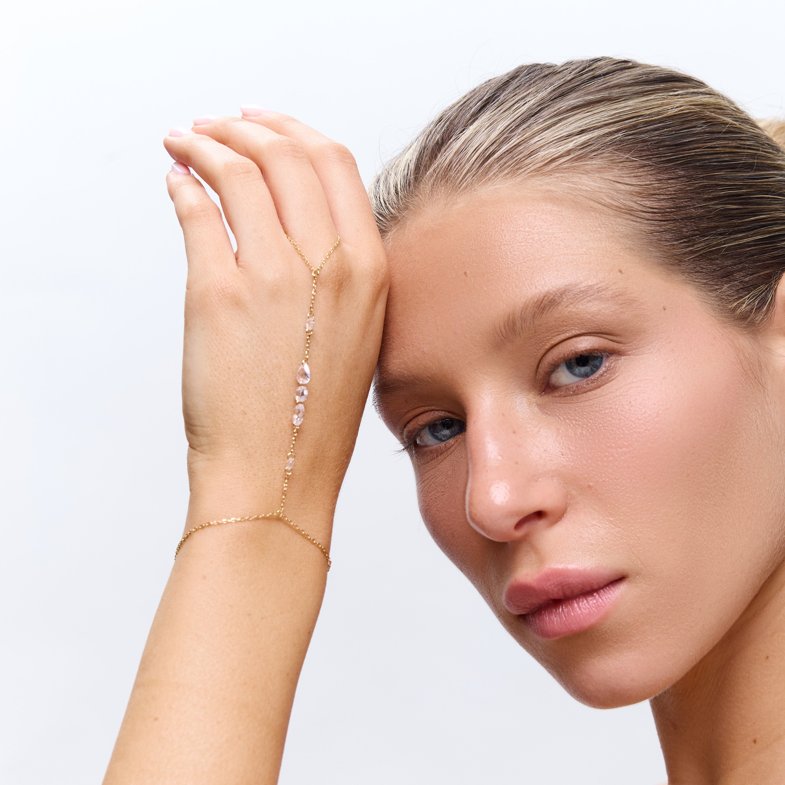 צמיד טבעת עם אבני זירקון בצורת טיפה ועגולות, ללוק טרנדי, מלא נוכחות וסטייל. הצמיד עשוי בעבודת יד ומצופה בזהב 14K.