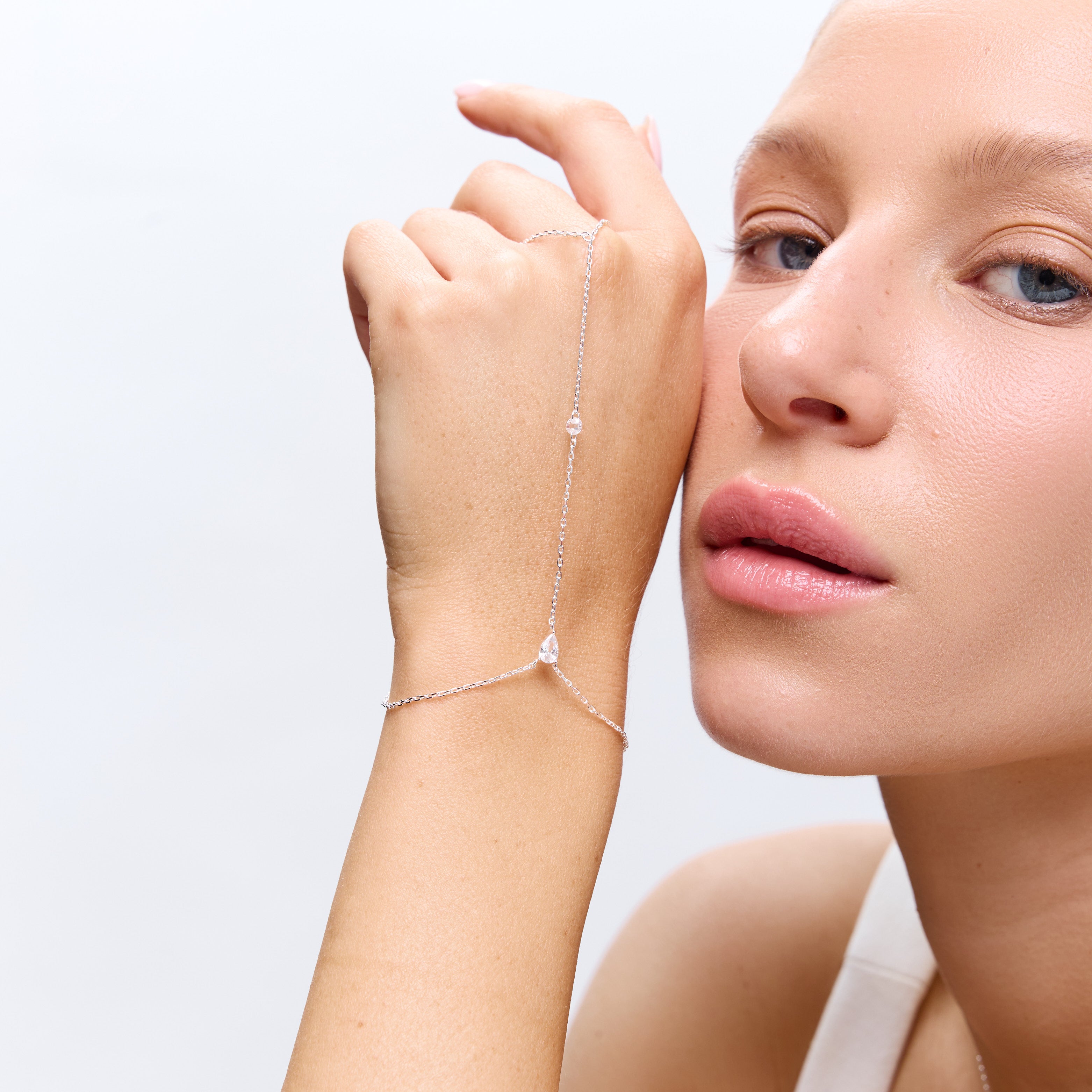 צמיד טבעת עם אבני זירקון בצורת טיפה ועיגול בשילוב גולות מתכת עדינות, ללוק מעודכן ומלא סטייל. הצמיד עשוי בעבודת יד ומצופה בכסף טהור.