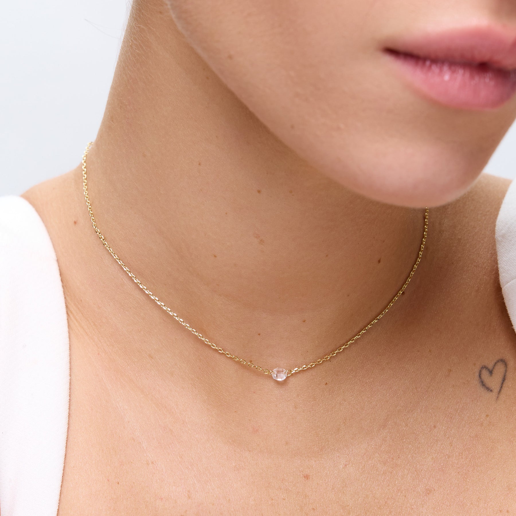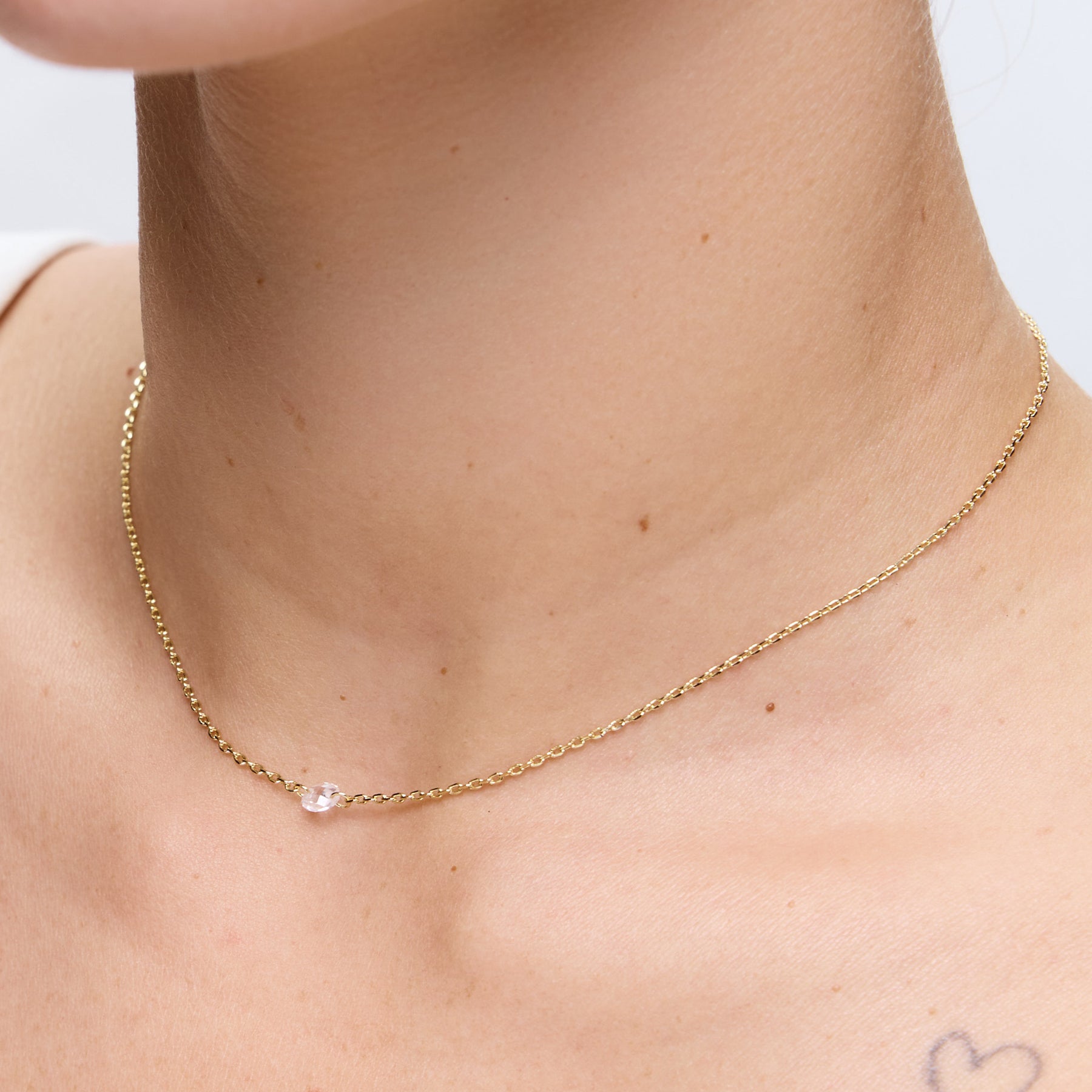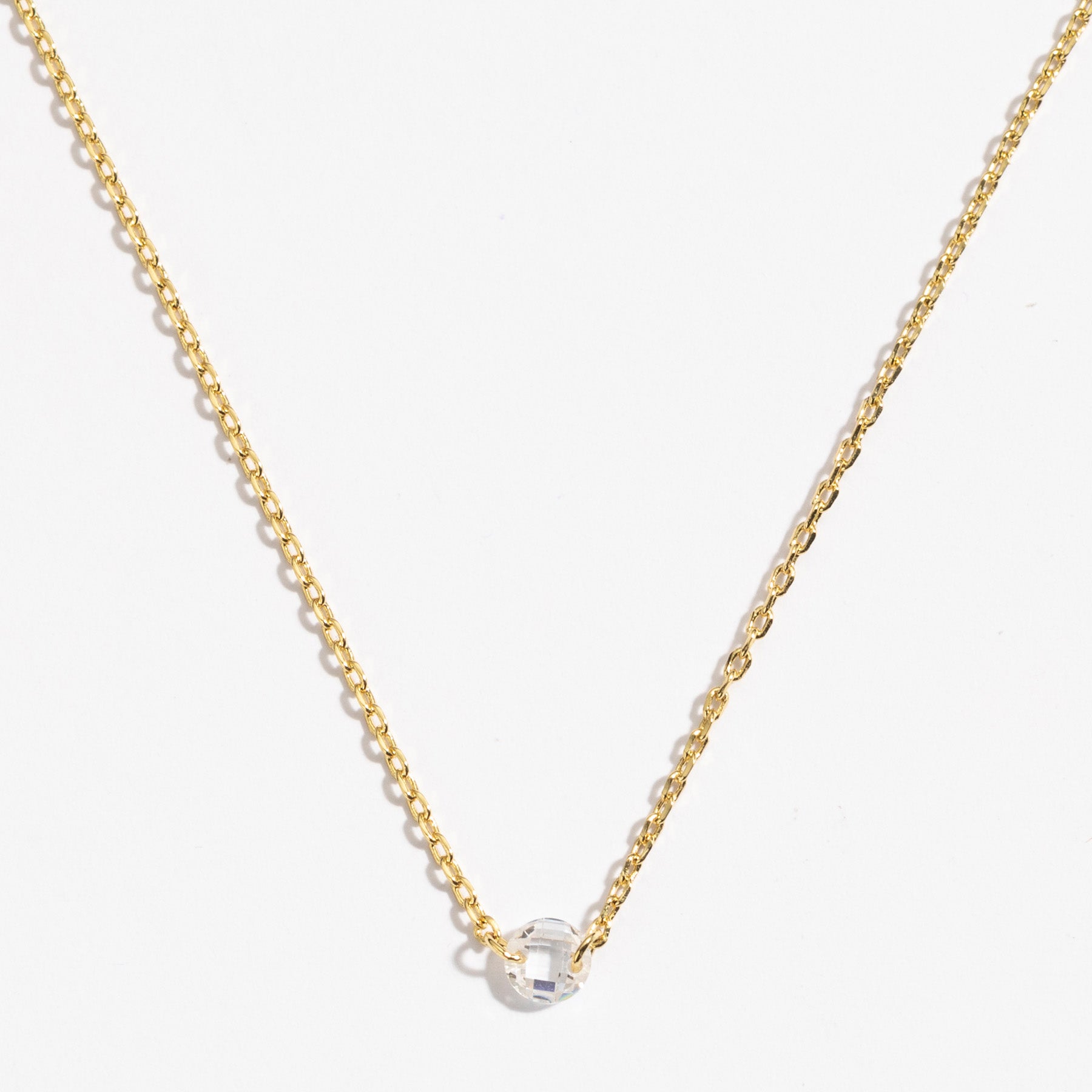 שרשרת עדינה עם נקודת זירקון בודדת במרכז, ללוק מדויק שמשתלב עם הכל. השרשרת עשויה בעבודת יד ומצופה בזהב 14K.