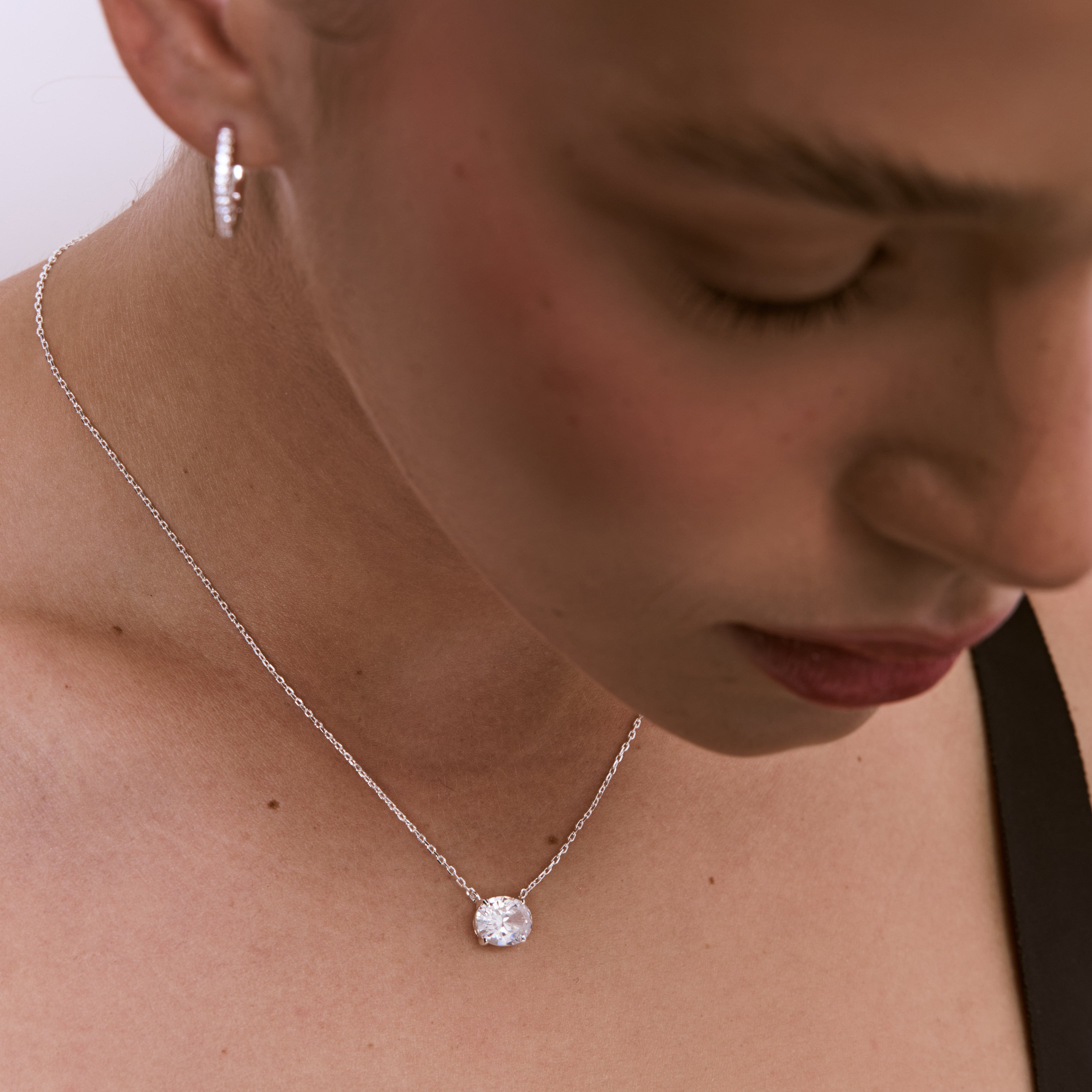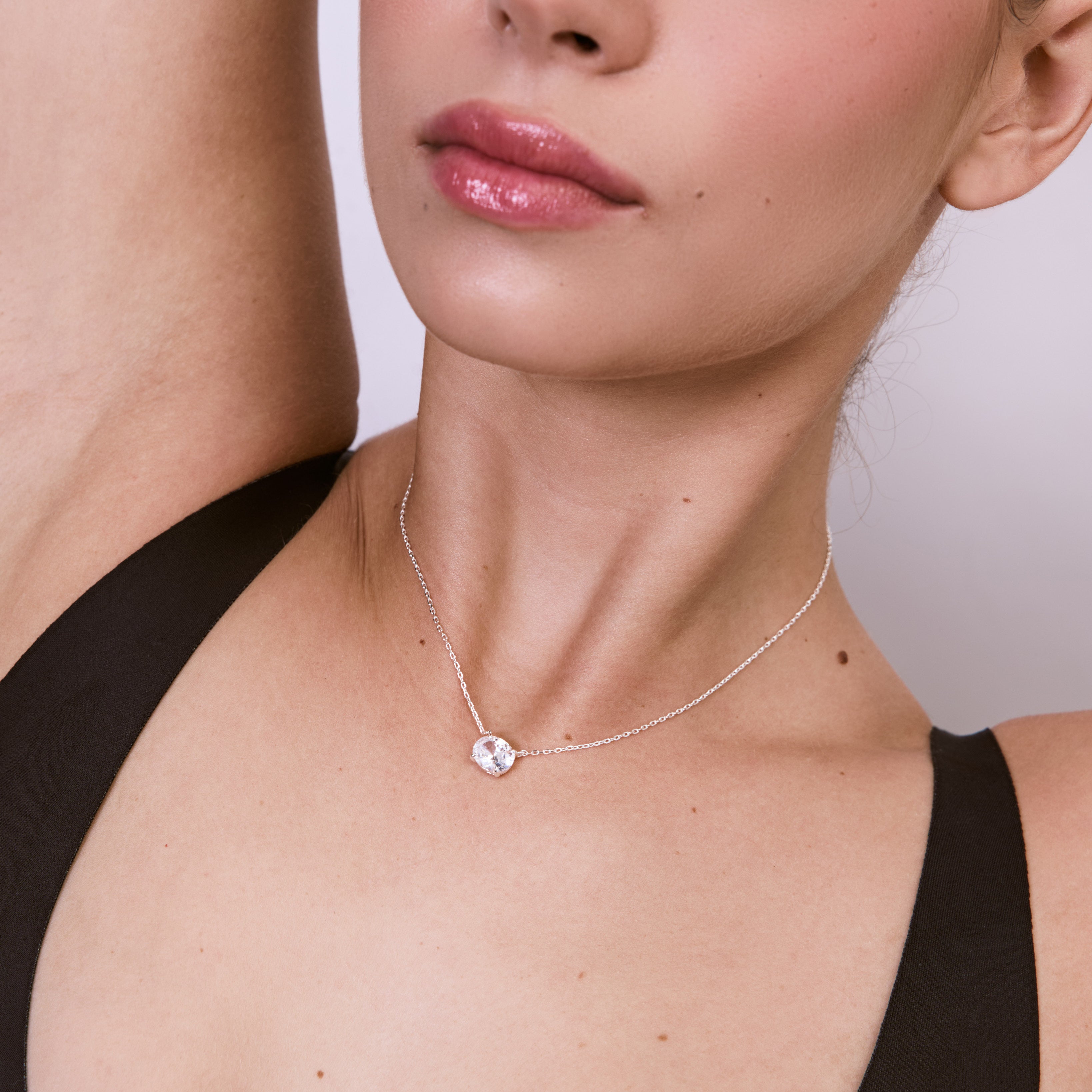 שרשרת משובצת בזירקון אובלי ומרשים, בעיצוב קלאסי, מדויק ויוקרתי. השרשרת עשויה בעבודת יד ומצופה בכסף טהור.