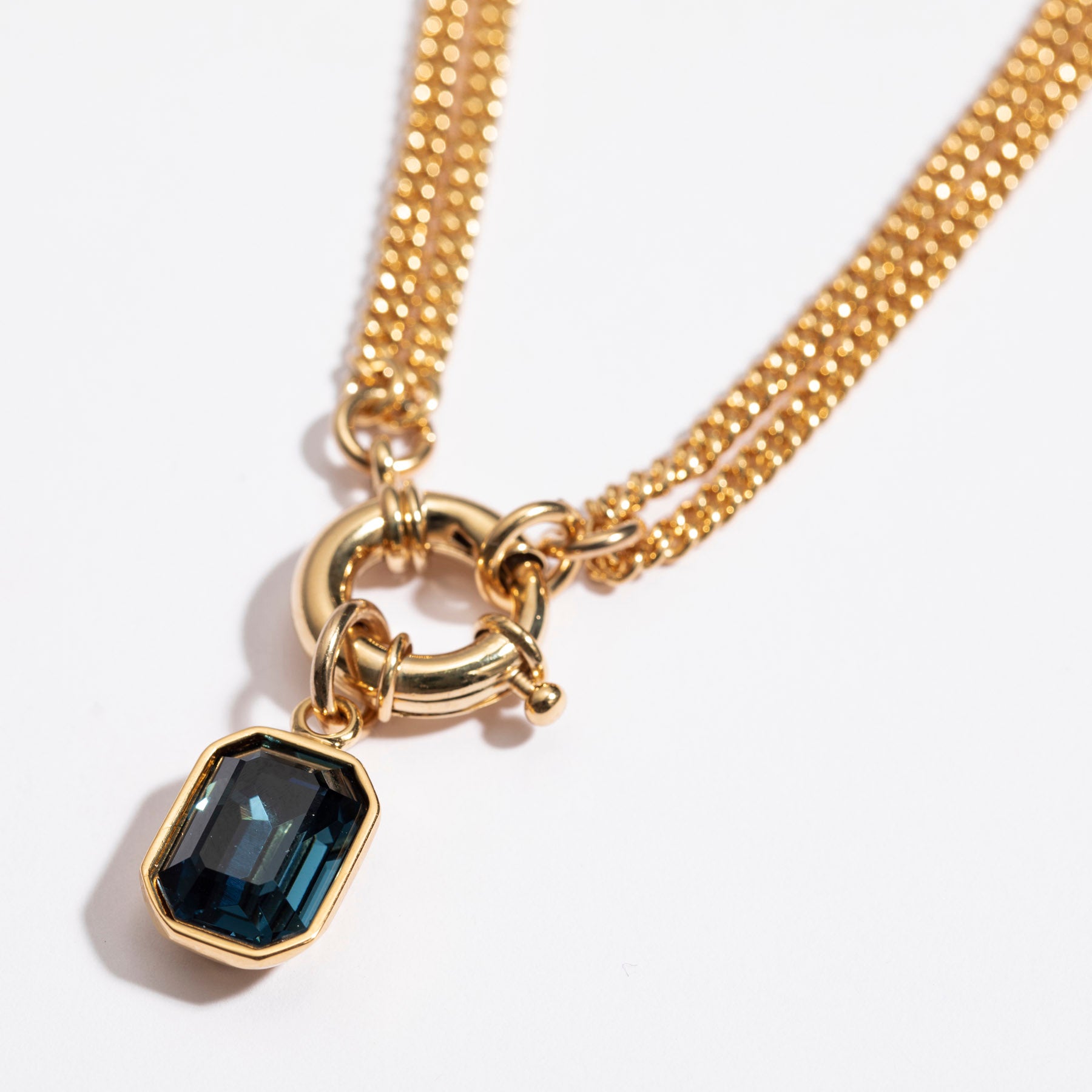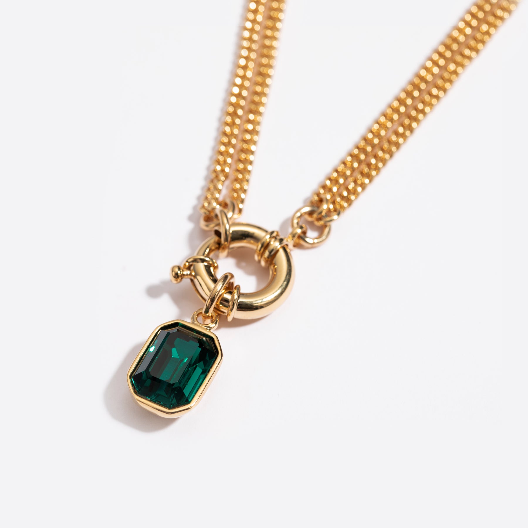 שרשרת כפולה קלאסית, מעוצבת בקווים נקיים והרמוניים, שבמרכזה תליון מלבני משובץ קריסטל יוקרתי.