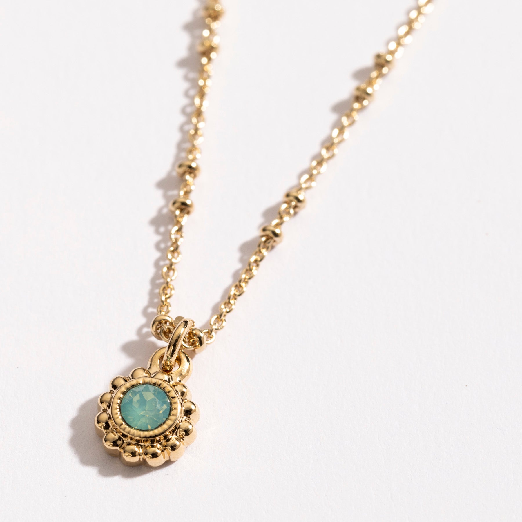 שרשרת עדינה משובצת בקריסטל בגוון פסיפיק אופל מנצנץ מוקף גולות מבריקות, בעיצוב וינטאג' מושקע ומלא פרטים. השרשרת מצופה בזהב 24K ותחמיא לכל לוק. השרשרת היא חלק מקולקציית Nostalgia שמבוססת על דגמים ישנים ואהובים, שעוצבו אצלנו בעבודת יד בשנות ה-70, ה- 80 וה-90, מעניקה להם חיים חדשים ומחזירה אותם לקדמת הבמה.