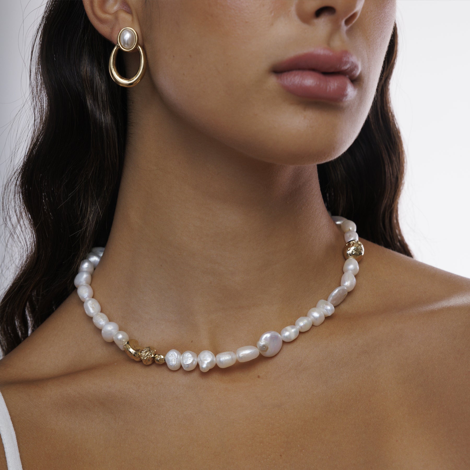 שרשרת פנינים אמיתיות בשילוב אלמנטים במראה צ'אנקי ומחוספס, שתיתן לך לוק מדויק וטרנדי. השרשרת עשוייה בעבודת יד ומצופה זהב 24K. השרשרת היא חלק מקולקציית Nostalgia שמבוססת על דגמים ישנים ואהובים, שעוצבו אצלנו בעבודת יד בשנות ה-70, ה- 80 וה-90, מעניקה להם חיים חדשים ומחזירה אותם לקדמת הבמה.