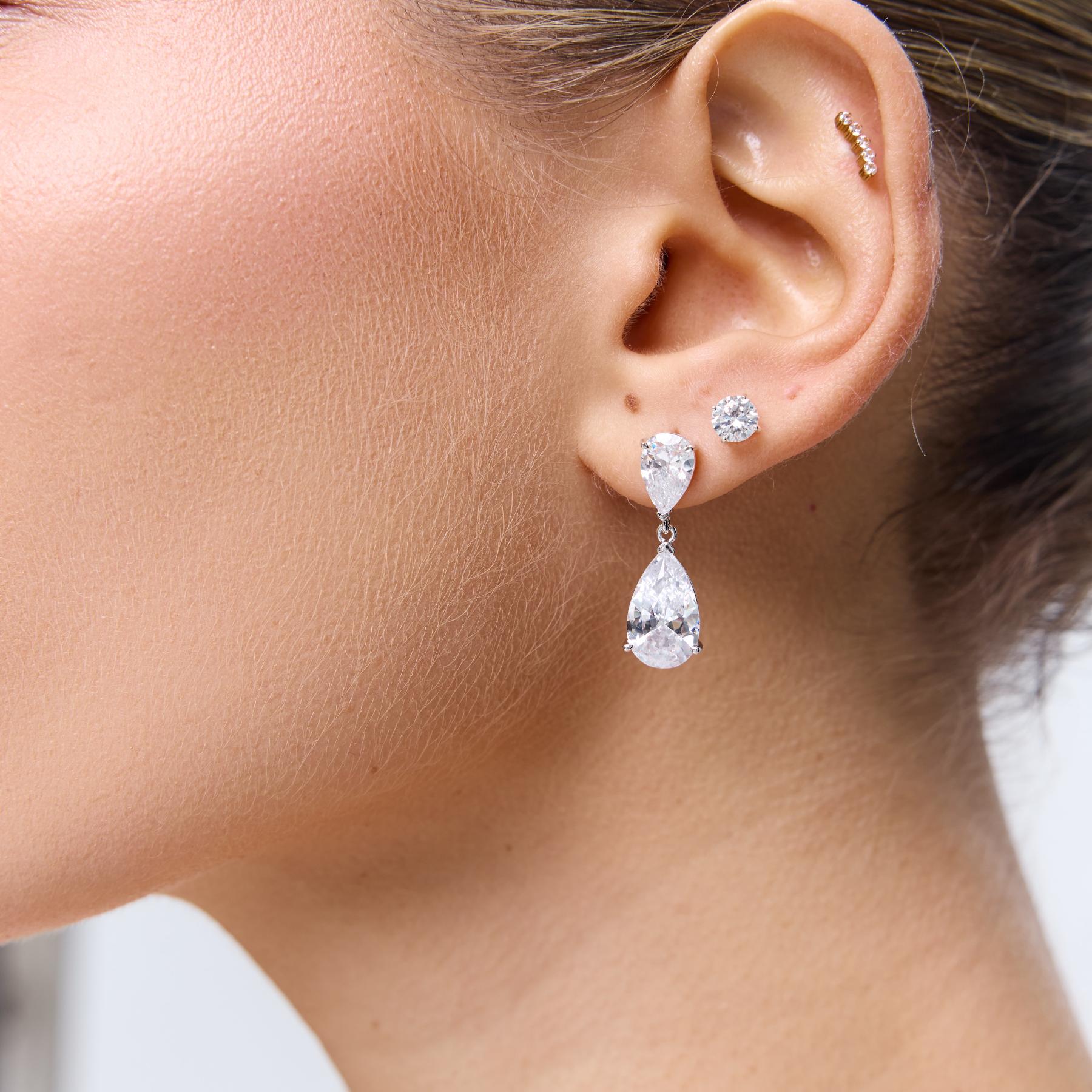 עגילים יוקרתיים עם זירקונים בצורת טיפה, ללוק אלגנטי ומלא נוכחות. העגילים עשויים בעבודת יד ומצופים בכסף טוהר.