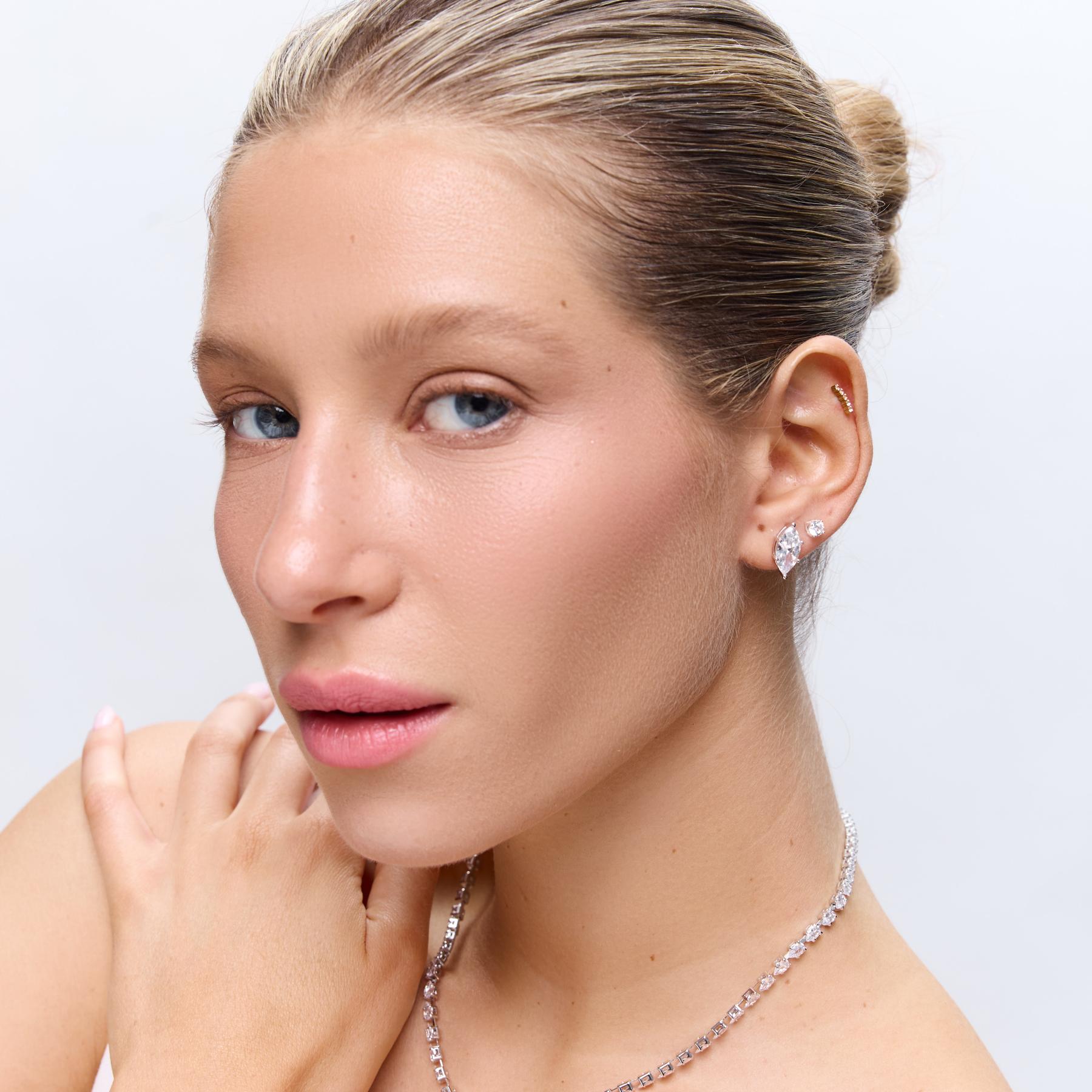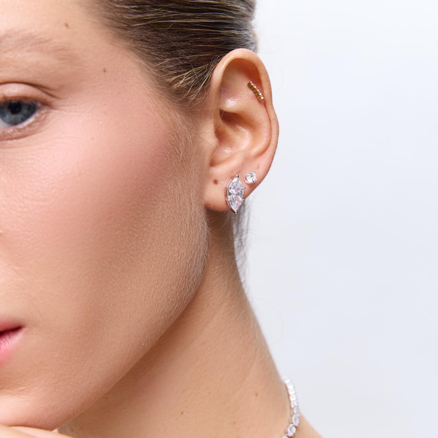 עגילי נקודה צמודים עם זירקונים בצורת מרקיזה, ללוק נקי, נוצץ ומדויק. העגילים עשויים בעבודת יד ומצופים בכסף טהור.