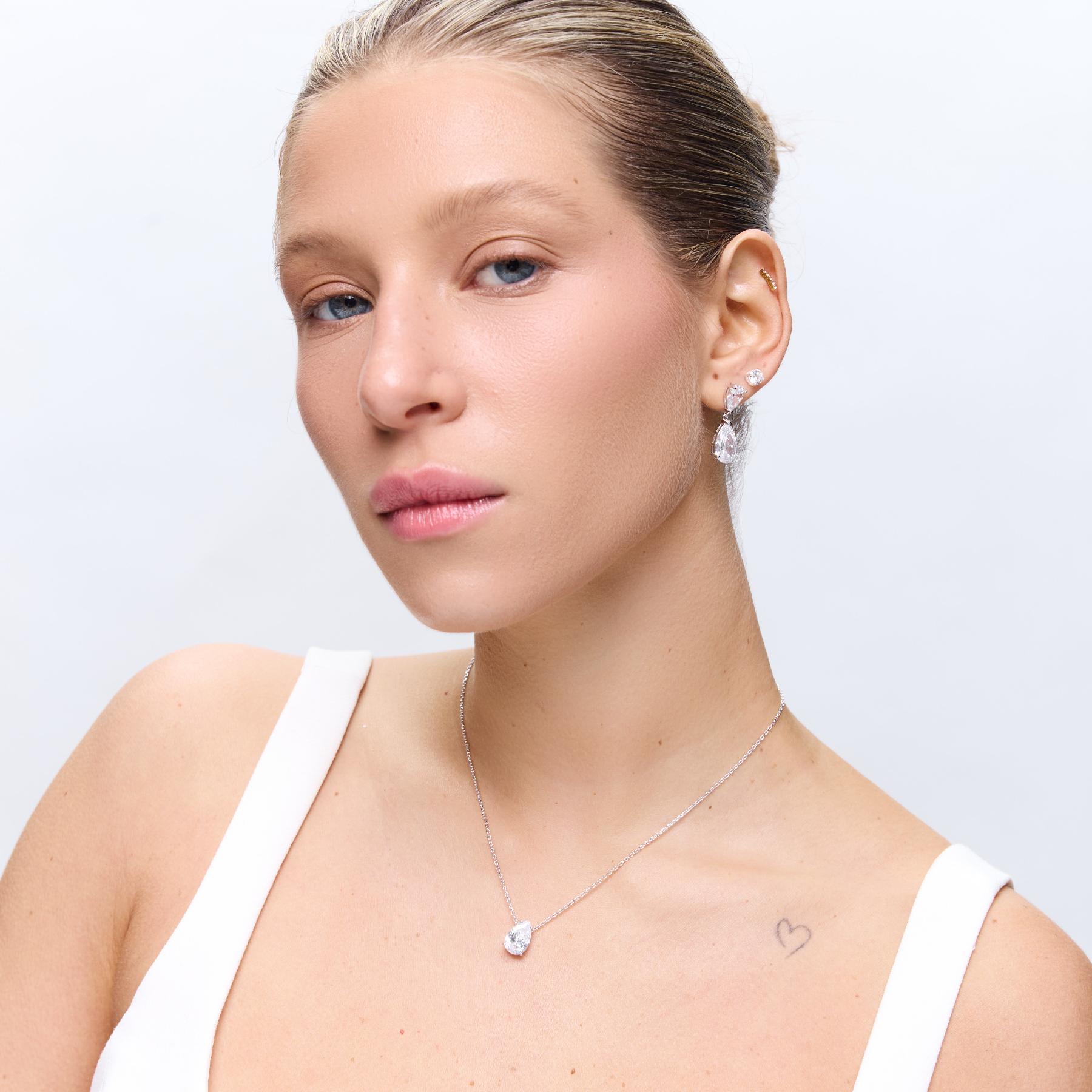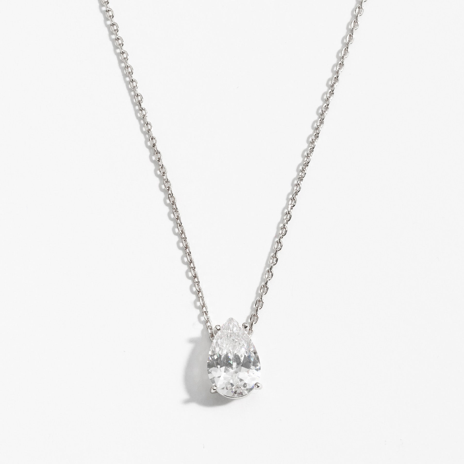 שרשרת עדינה עם תליון זירקון בצורת טיפה, ללוק קלאסי ומדויק. השרשרת עשויה בעבודת יד ומצופה בכסף טהור.
