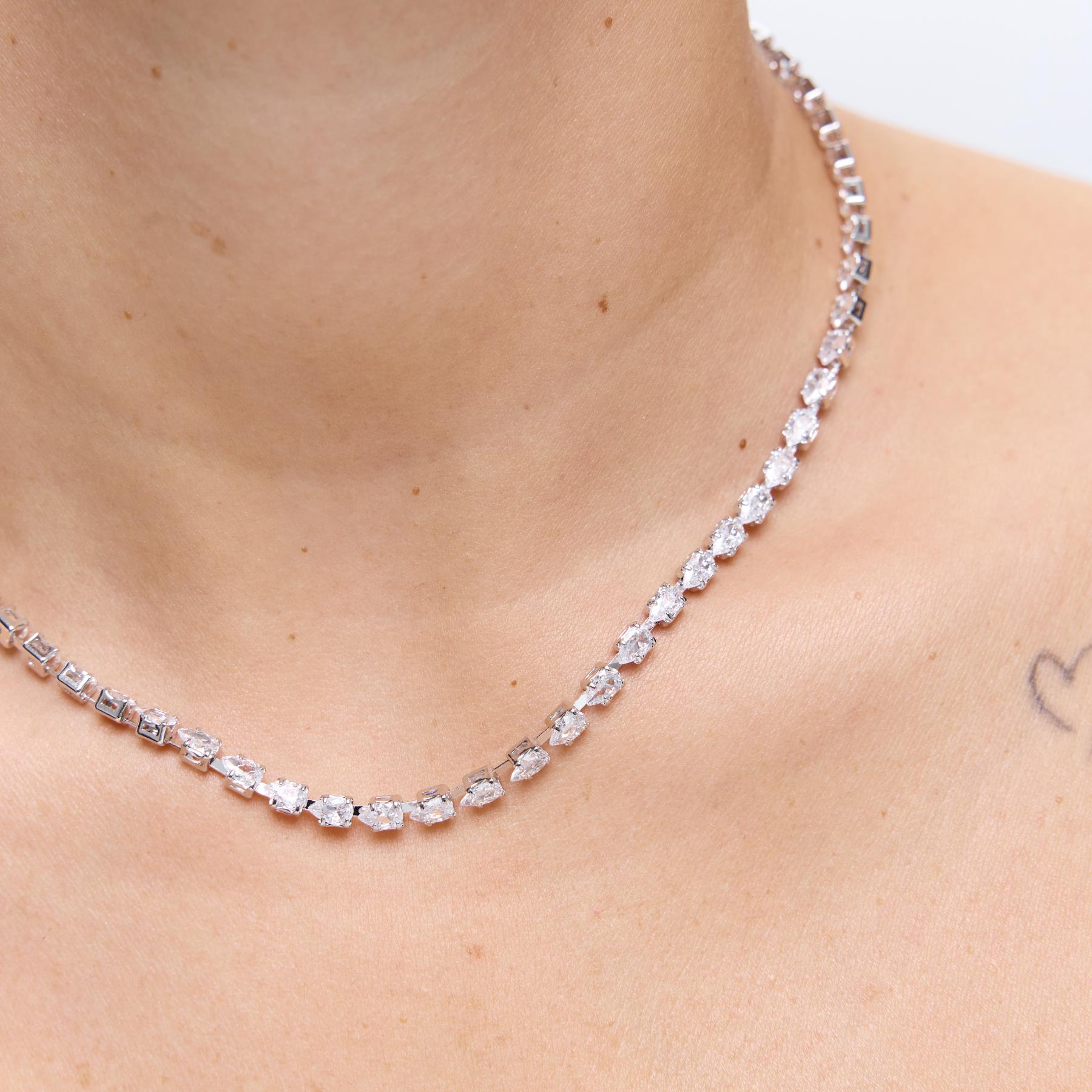 שרשרת טניס יוקרתית עם זירקונים בצורת טיפה, ללוק אלגנטי ומלא סטייל. השרשרת עשויה בעבודת יד ומצופה בכסף טהור.