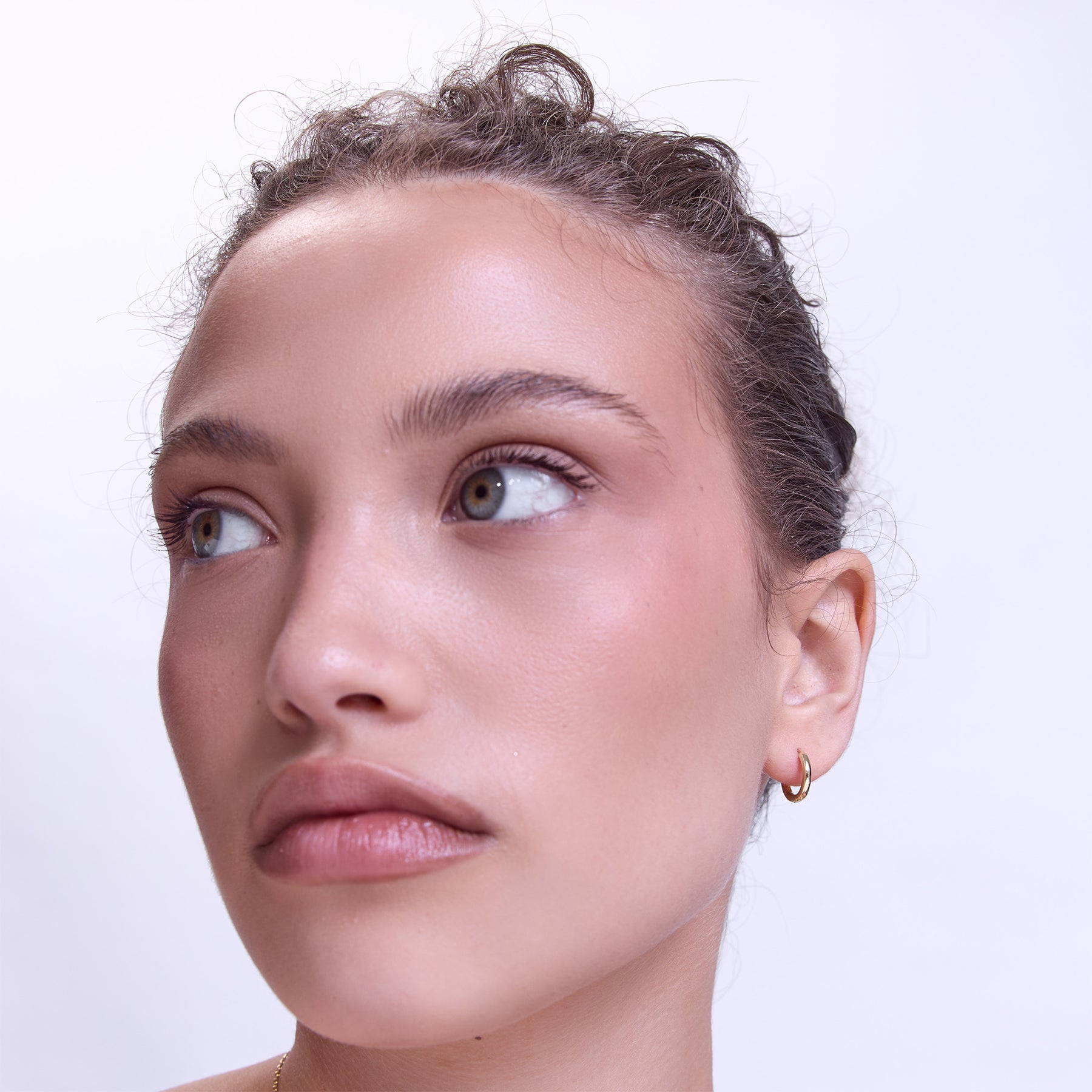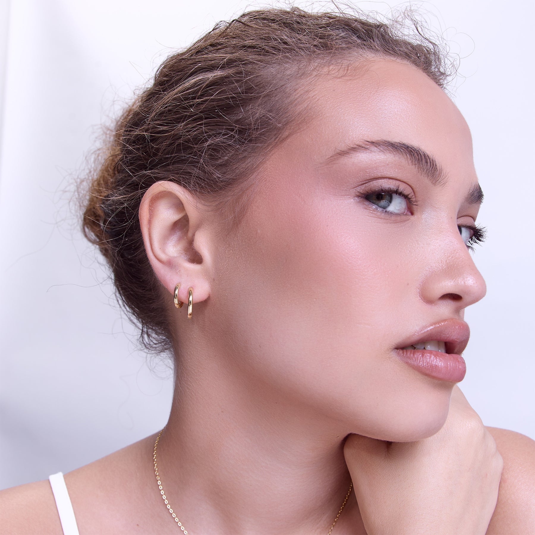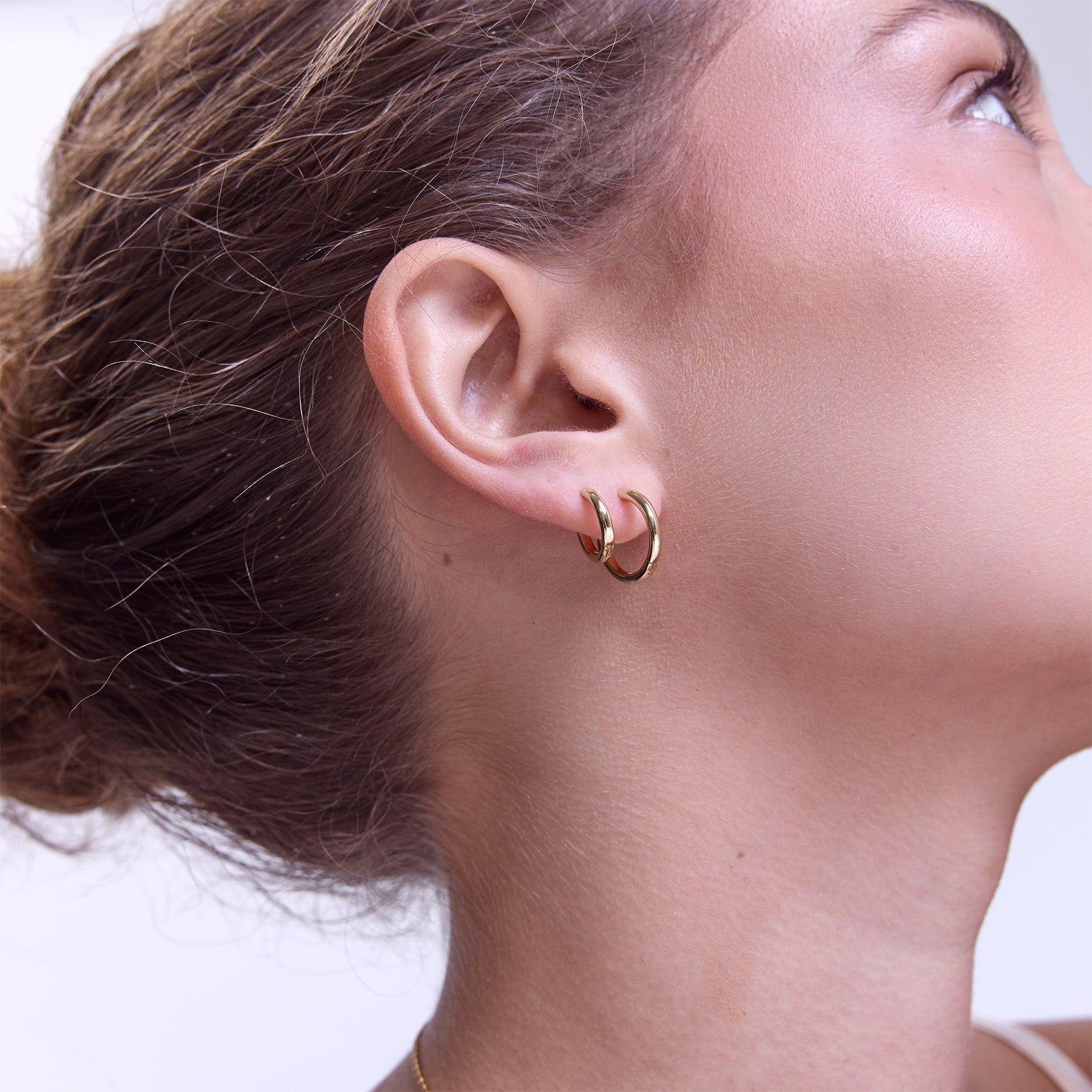 עגילי חישוק קלאסיים בקוטר 12ממ, בעיצוב נקי ומינימליסטי, שניתן לענוד לבד או כחלק מעיצוב האוזן. העגילים עשויים בעבודת יד מכסף סטרלינג 925 ומצופים בזהב 14K.